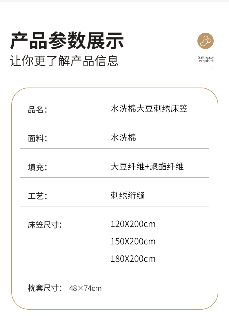 (总)吉祥 2023新款水洗棉大豆刺绣床笠,纯白,粉玉,咖啡,深灰,水蓝