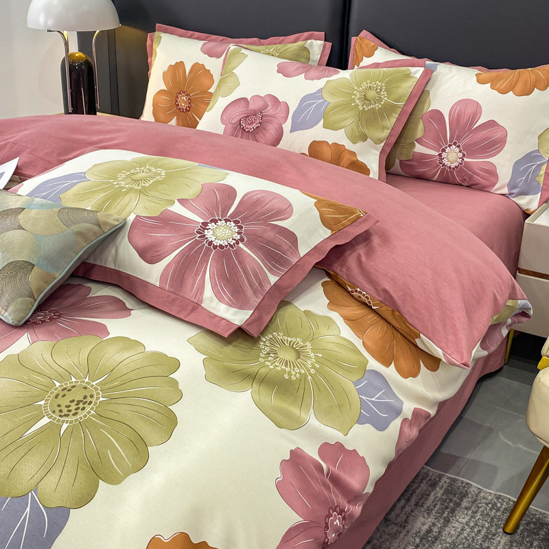 仟网汇 2023新款纯棉磨毛加厚喷气印花拼角四件套 半月时光