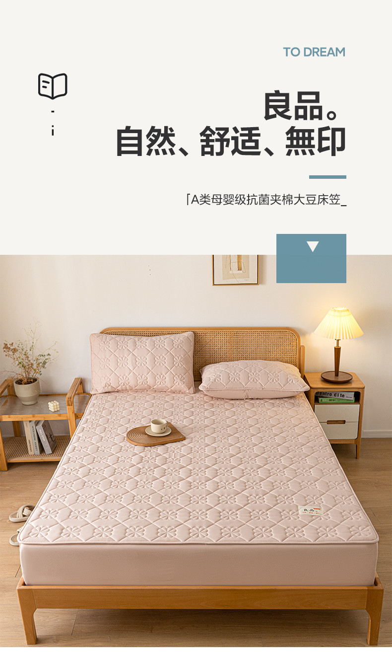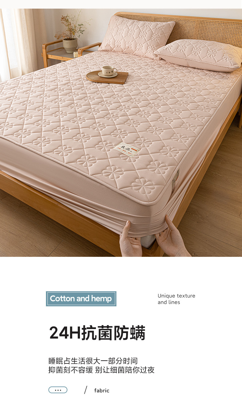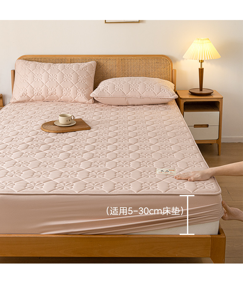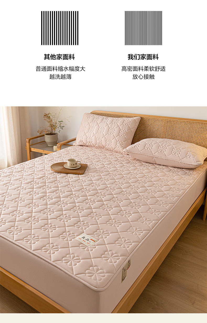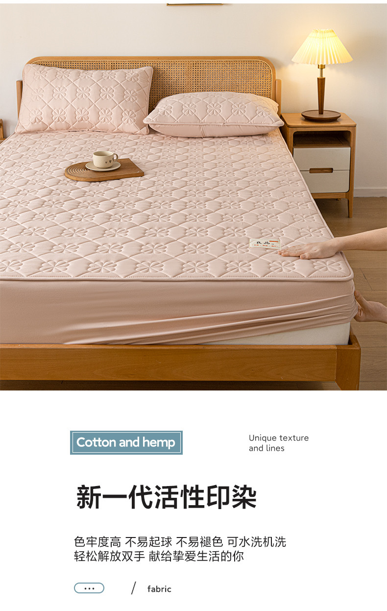 • 91家纺网 家纺一手货源 找家纺 芬晴 2023新款A类母婴级无印风夹棉床笠 桃花-豆沙粉
