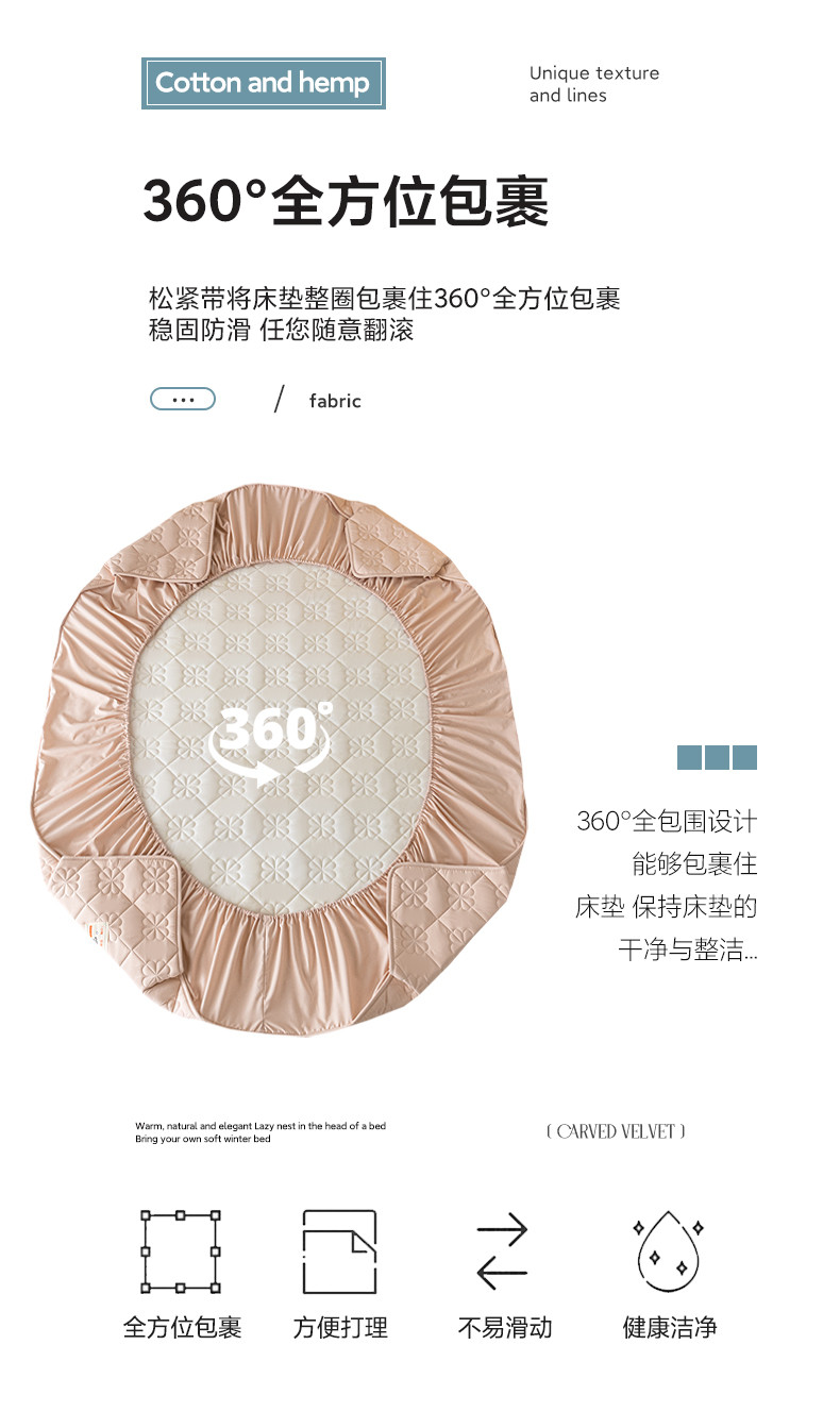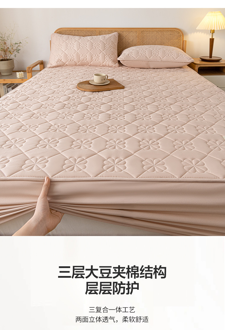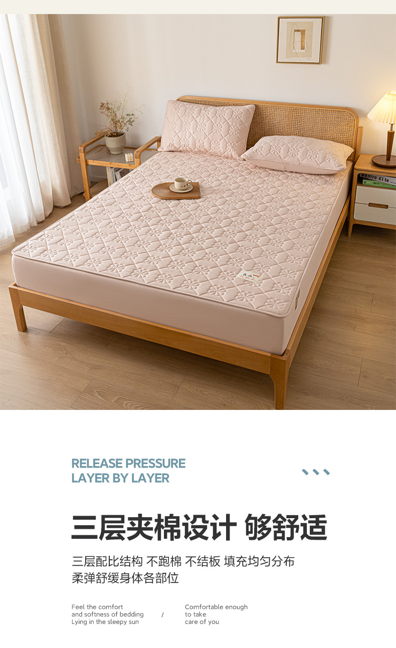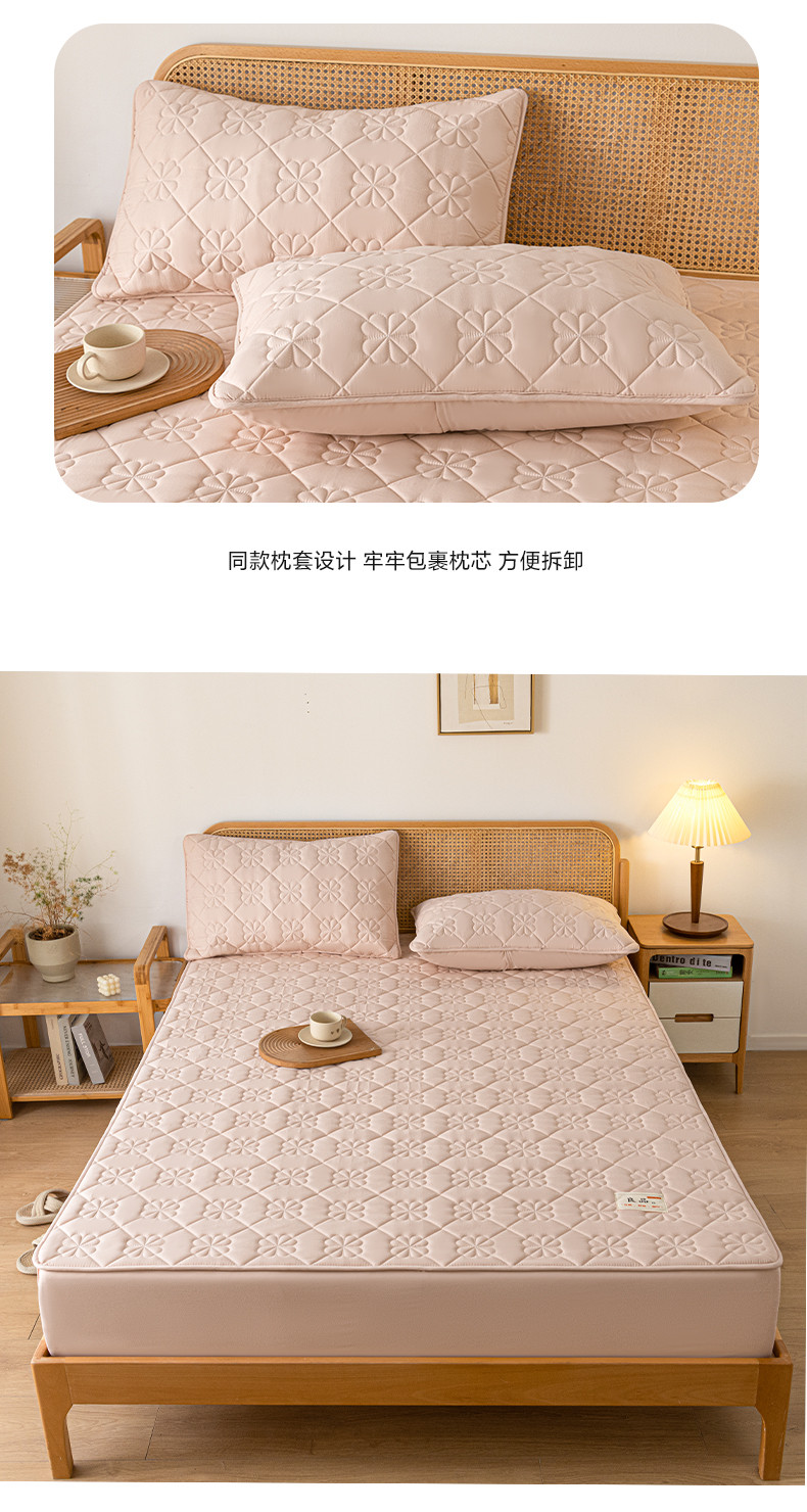 • 91家纺网 家纺一手货源 找家纺 芬晴 2023新款A类母婴级无印风夹棉床笠 桃花-豆沙粉