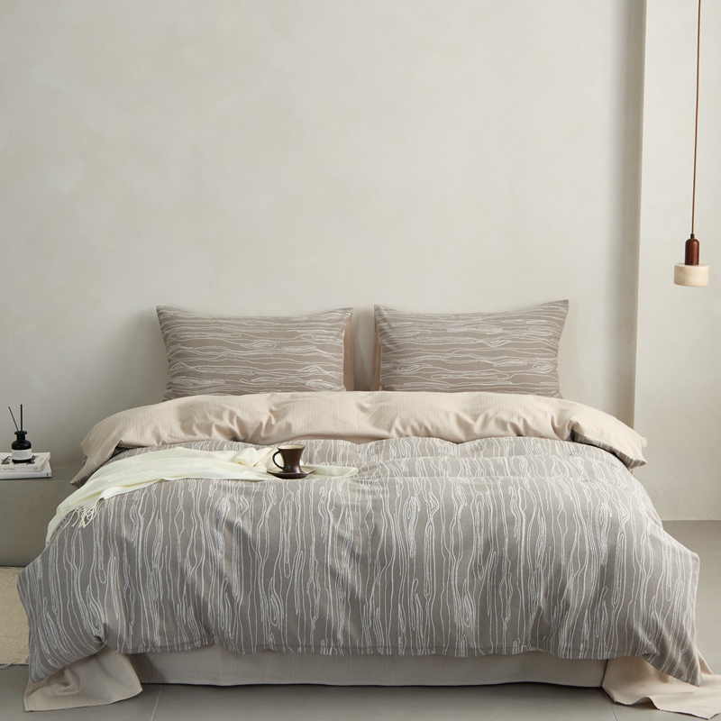 当前位置: 91家纺网 > 商品网购 > 床品套件 > 四件套 > 全棉普通四件套 > 原研家居 2024新款全棉色织提花人字纹系列四件套 畅享曲奇-亚麻