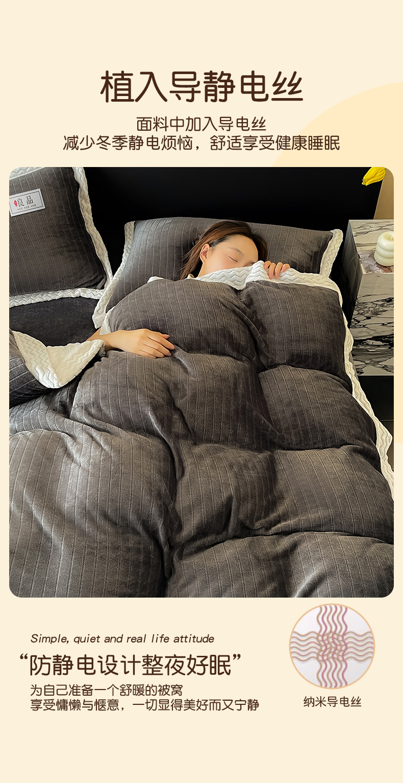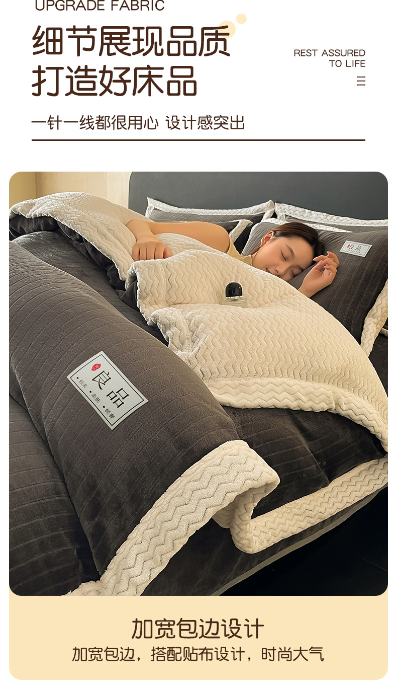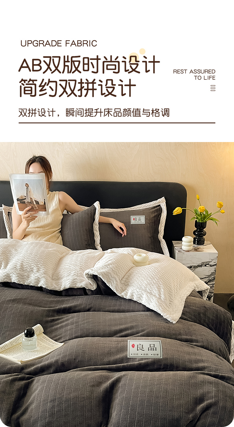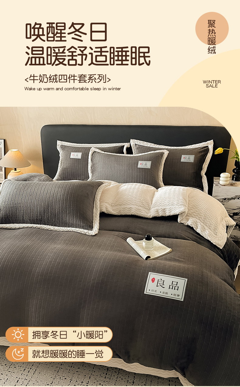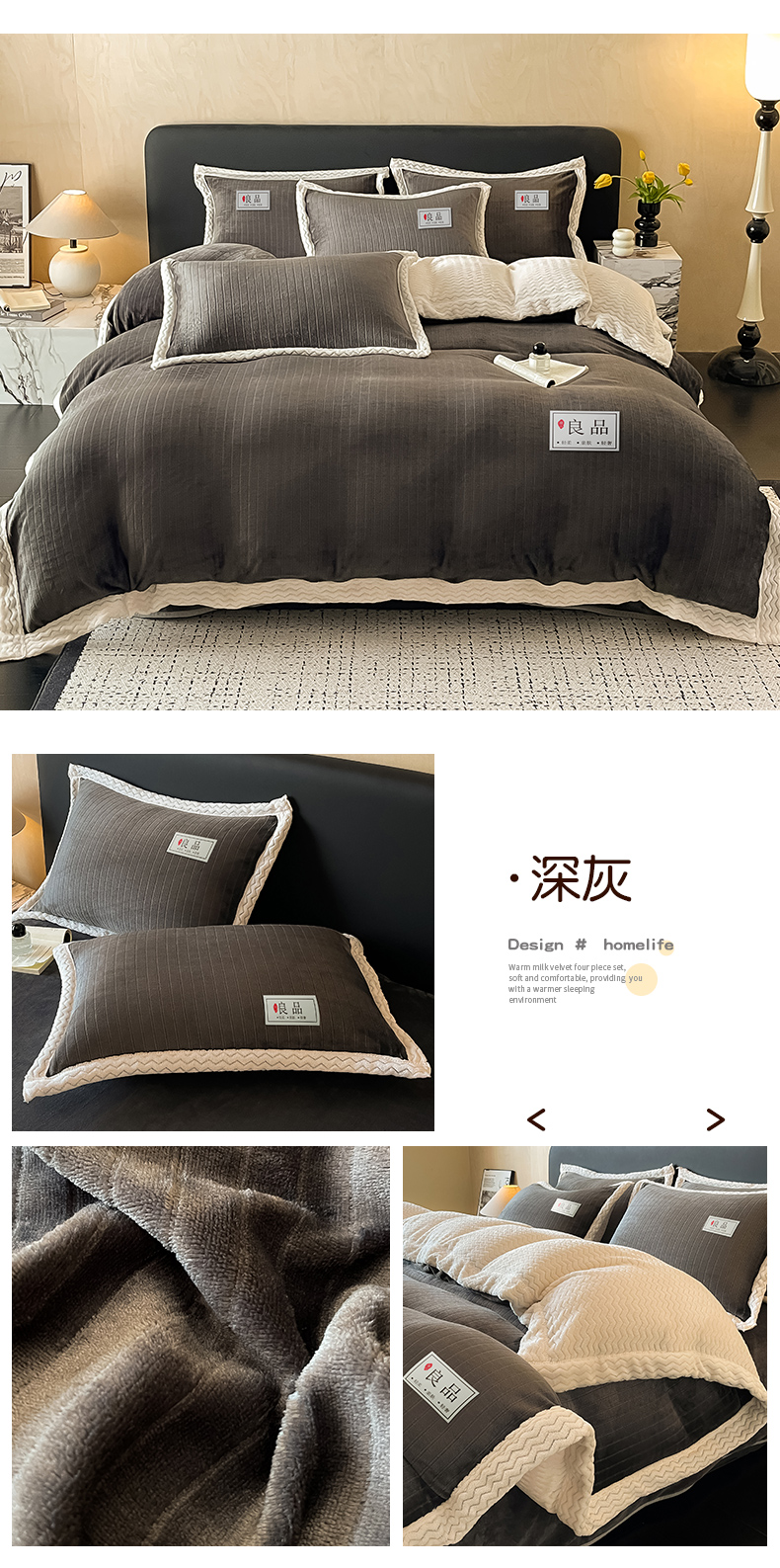 当前位置: 91家纺网 > 商品网购 > 床品套件 > 四件套 > 牛奶绒四件套 > 全季家居 2024新款A类纯色印花波浪大包边牛奶绒贝贝绒加厚保暖四件套 深灰