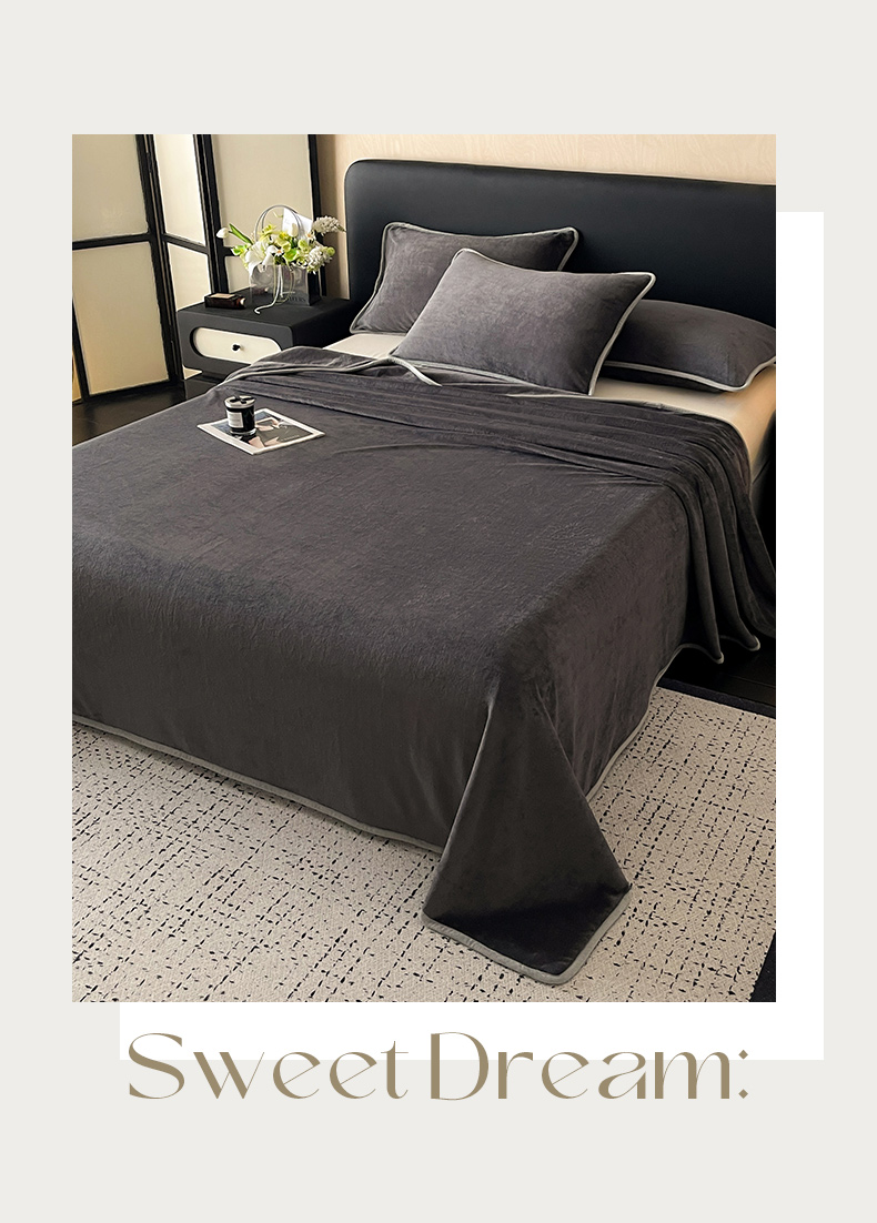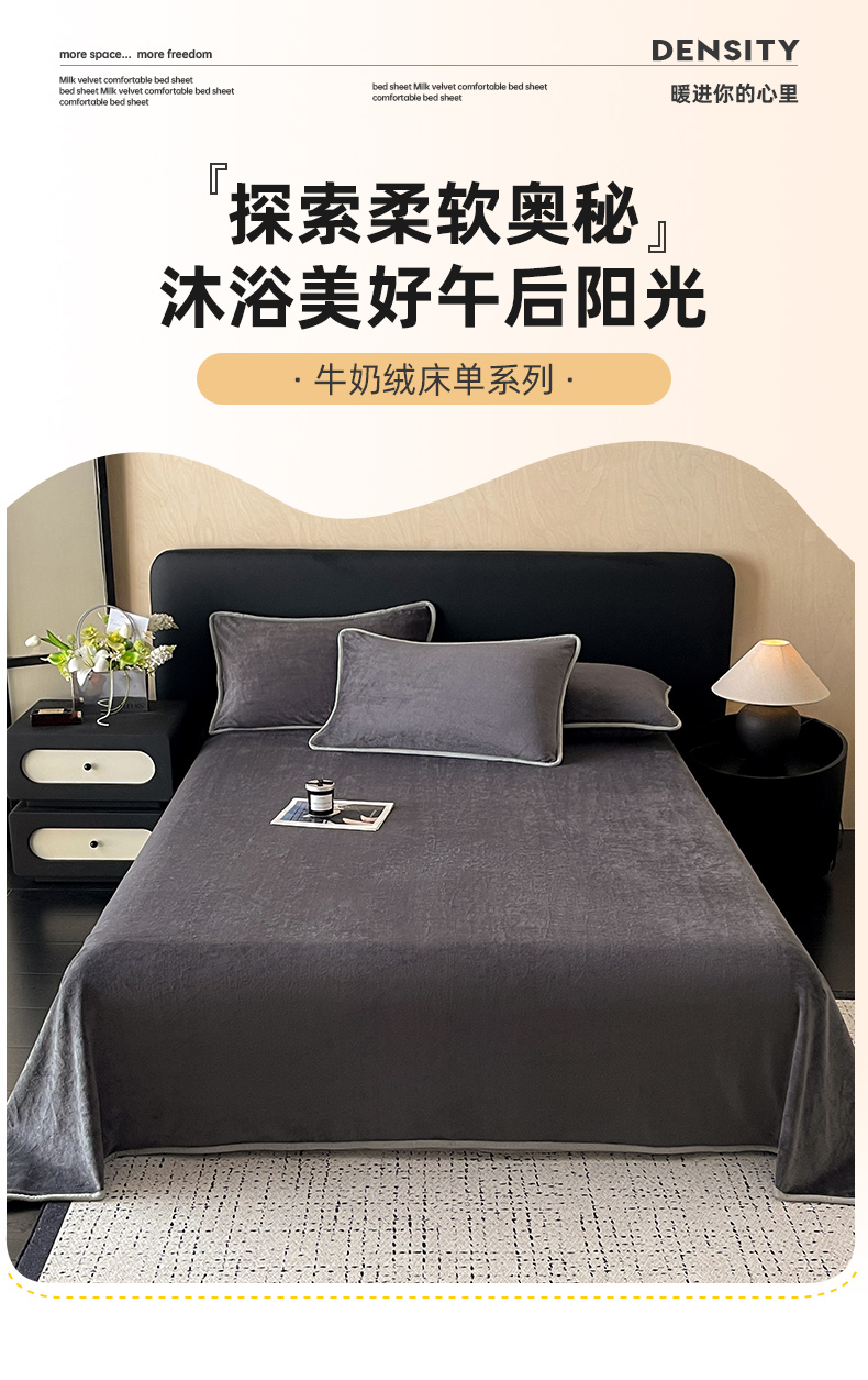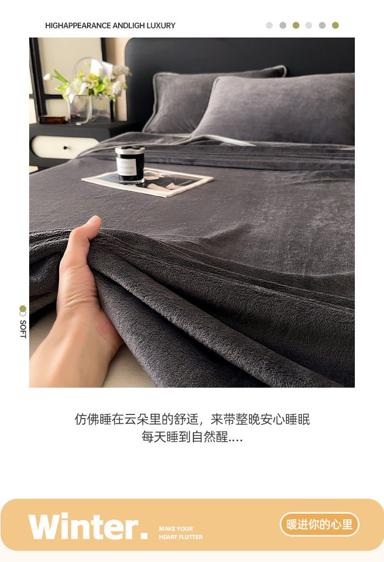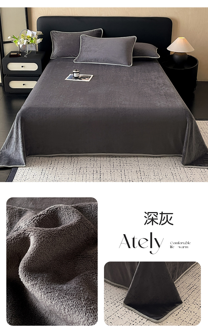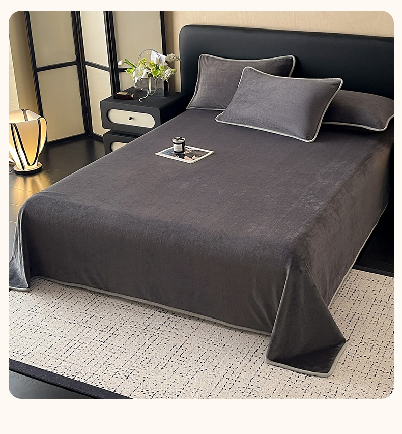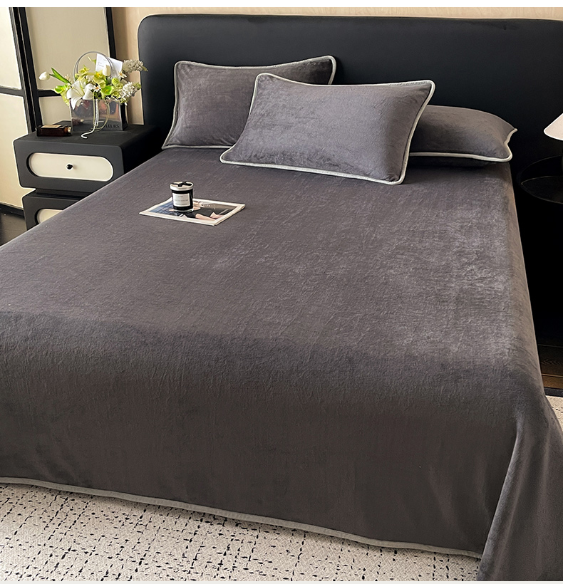 商品名称:全季家居 2024新款A类纯色印花高克重加厚保暖包边牛奶绒床单单件 深灰