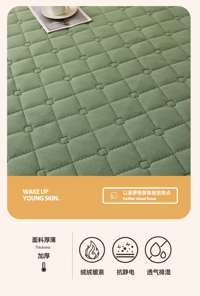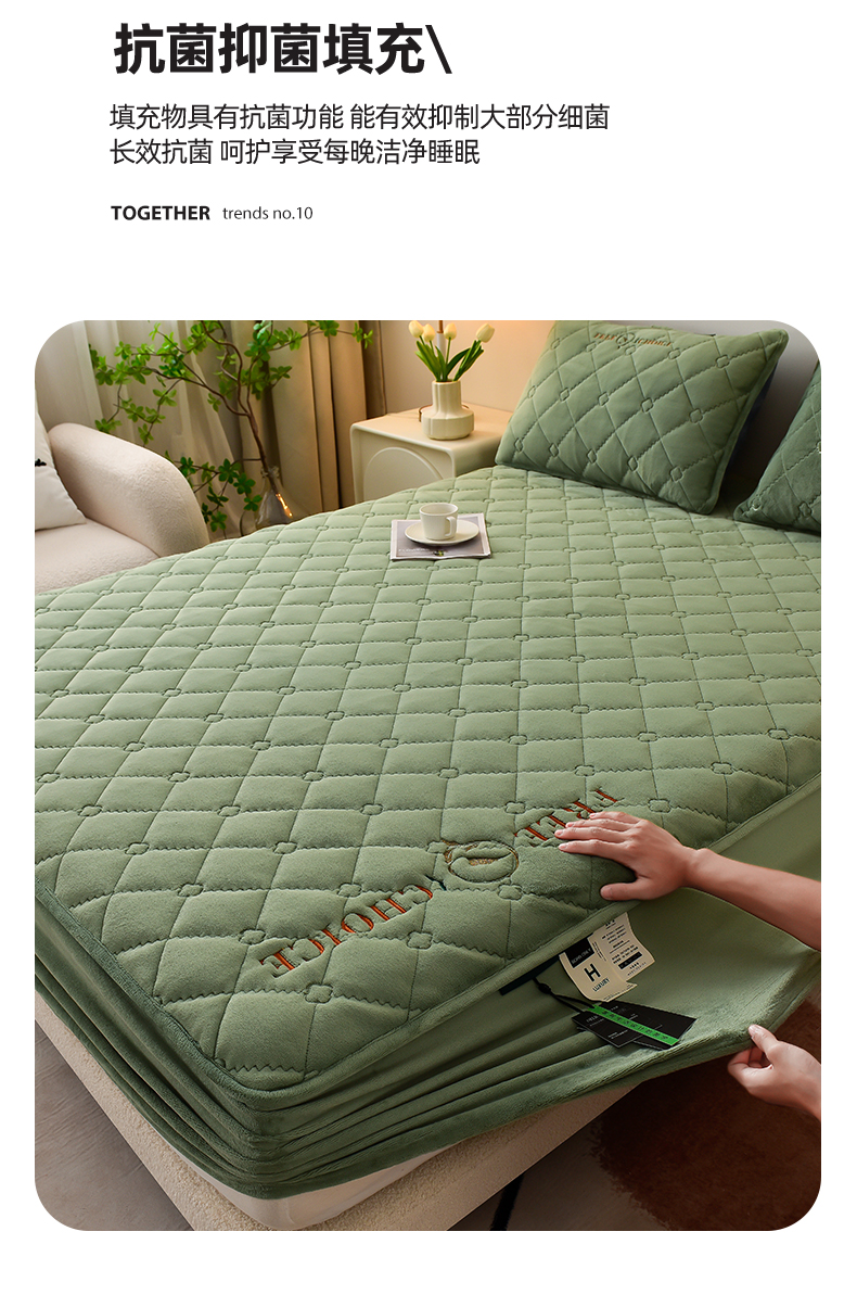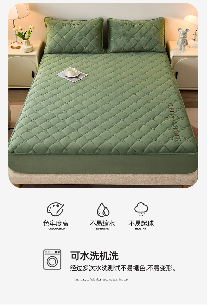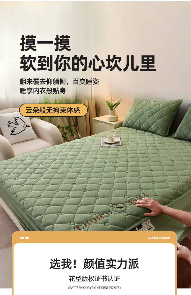 • 91家纺网 家纺一手货源 找家纺 好眠好梦家纺 2024新款A类宝宝绒床笠-凯特琳 薄荷绿