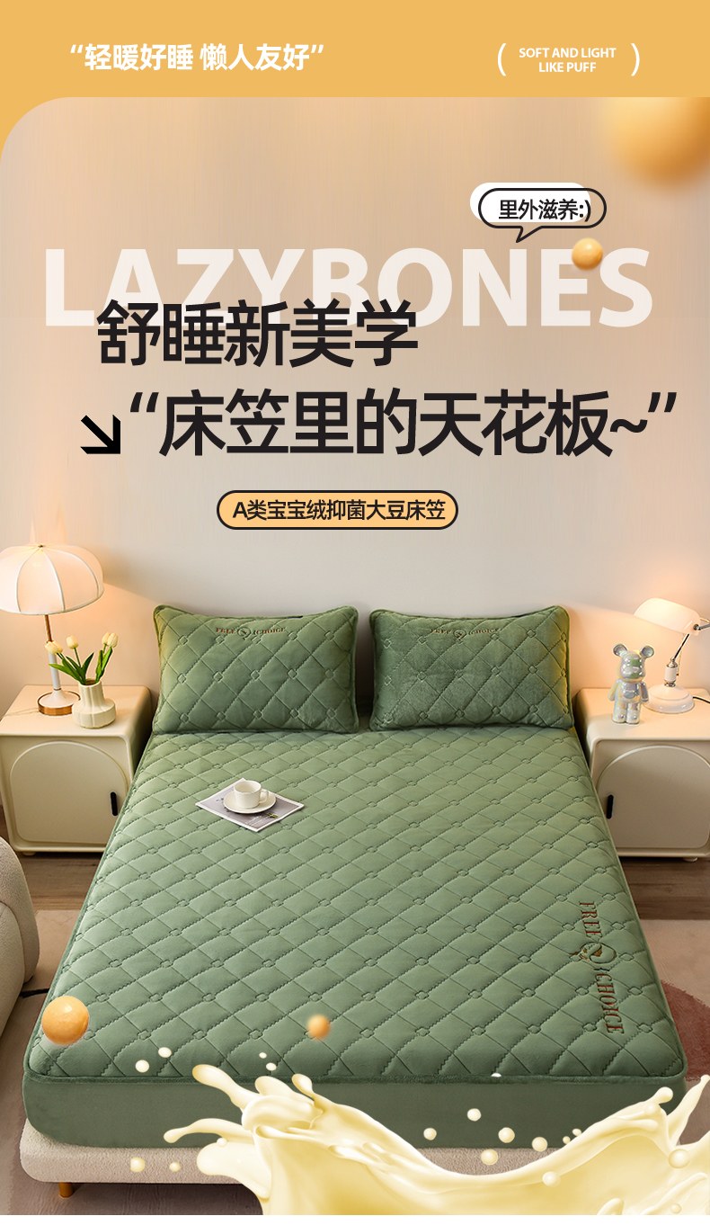 好眠好梦家纺 2024新款A类宝宝绒床笠-凯特琳 薄荷绿