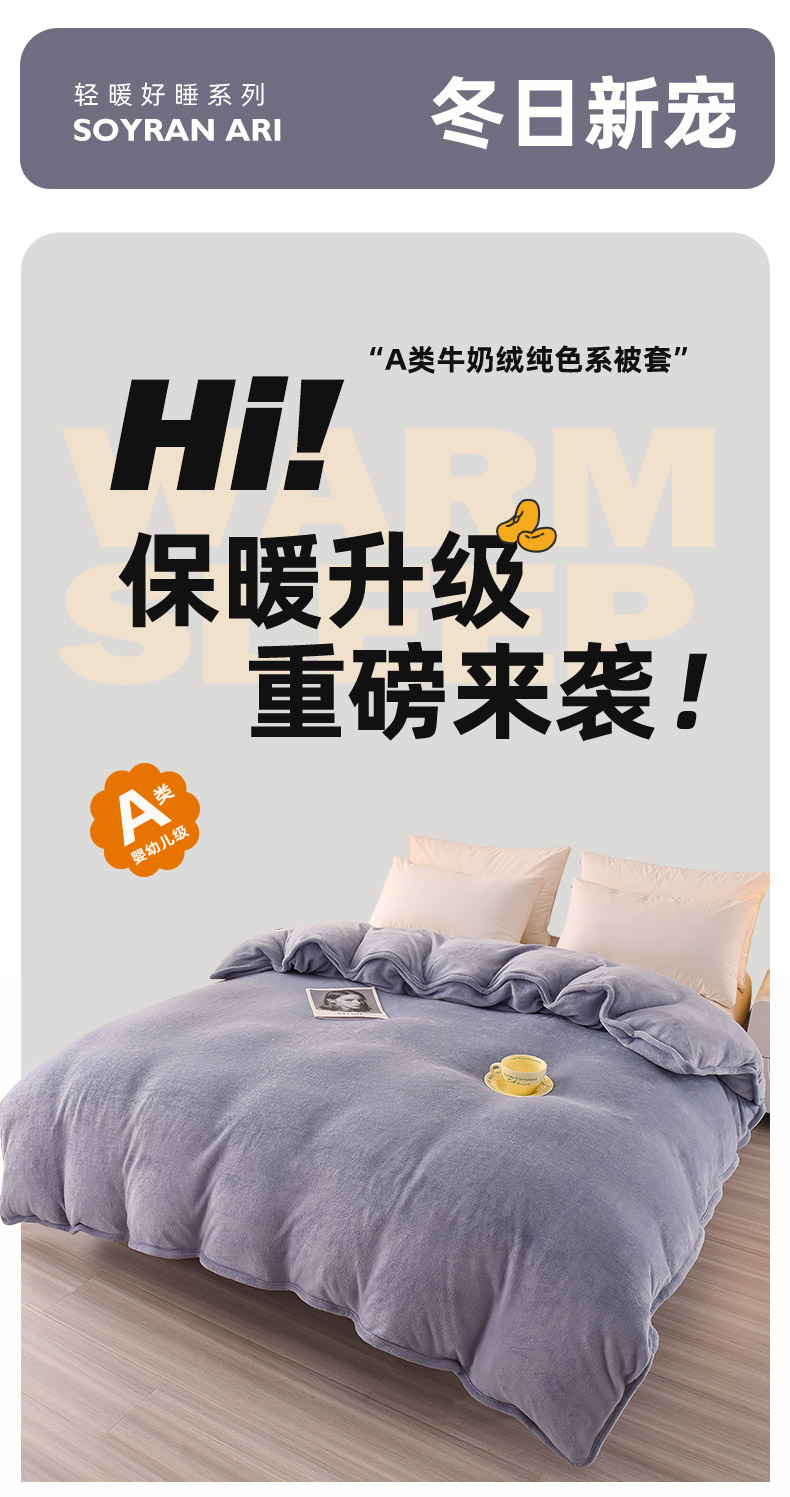 商品名称:好眠好梦家纺 2024新款牛奶绒纯色单被套 高级灰