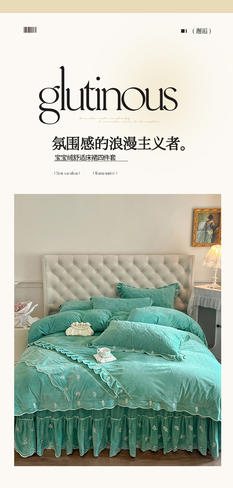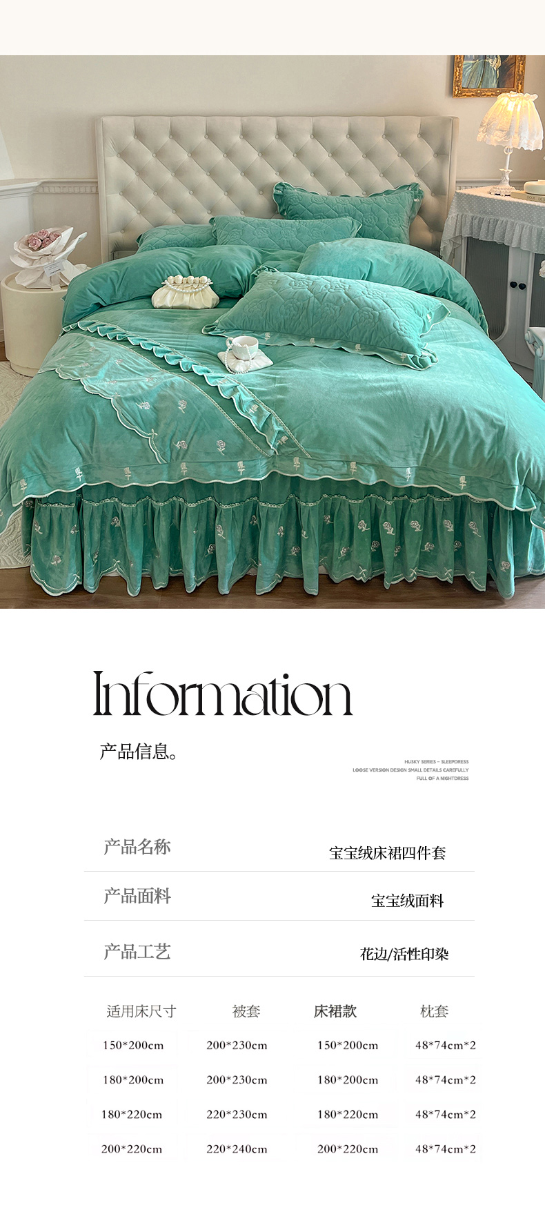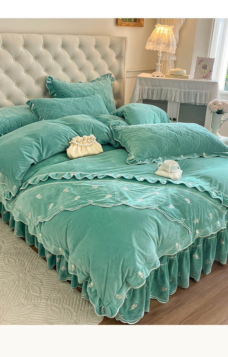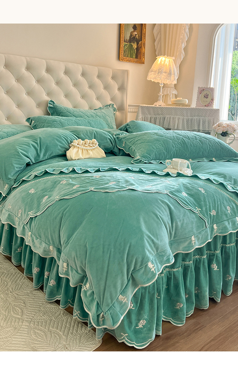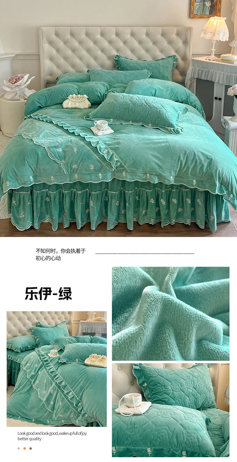 当前位置: 91家纺网 > 商品网购 > 床品套件 > 四件套 > 宝宝绒四件套 > 麒豆豆 2024新款宝宝绒床裙四件套-乐伊 乐伊-绿