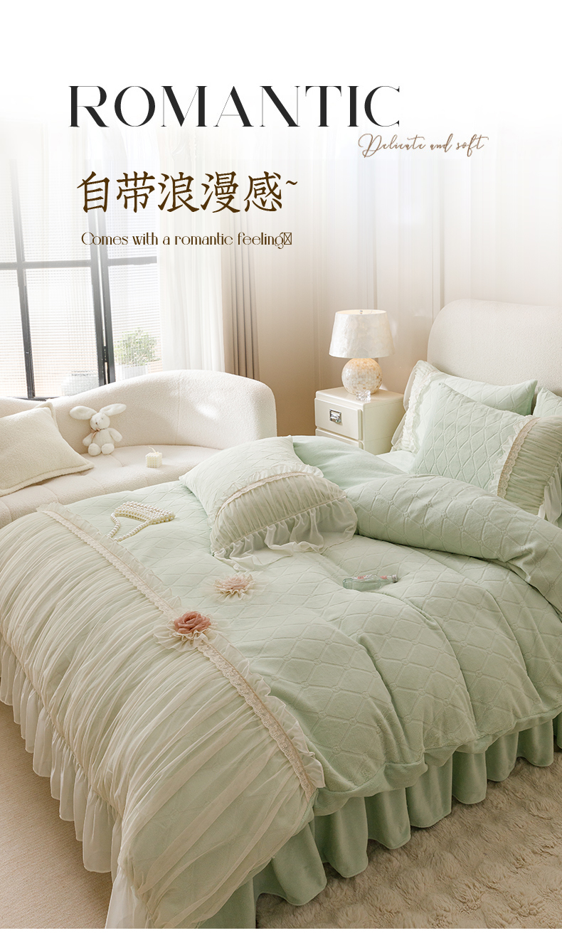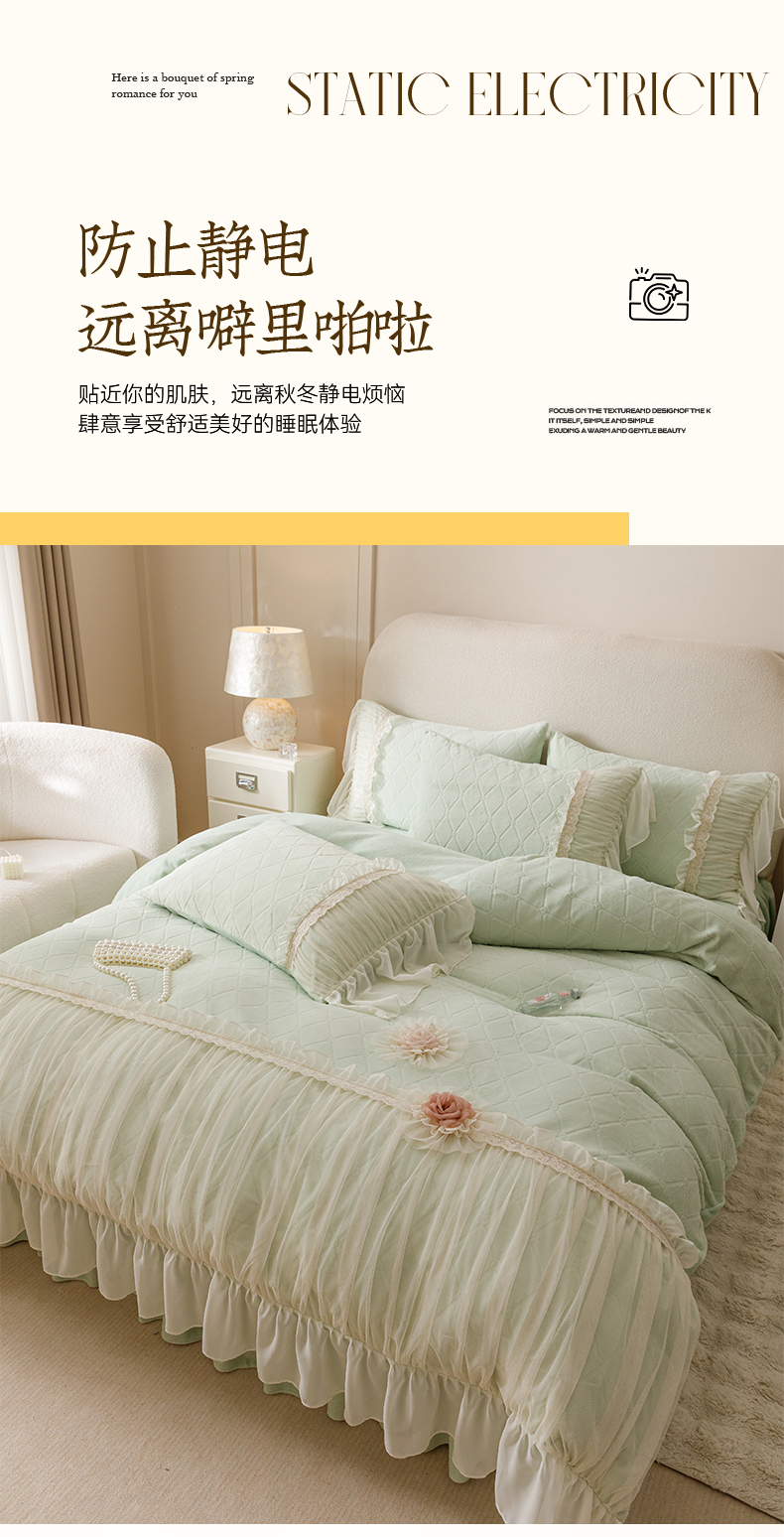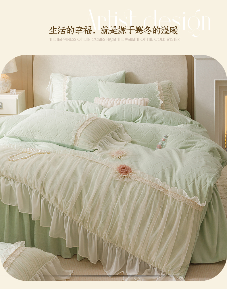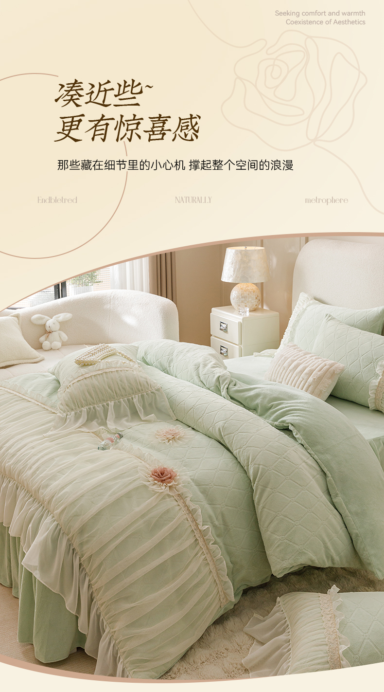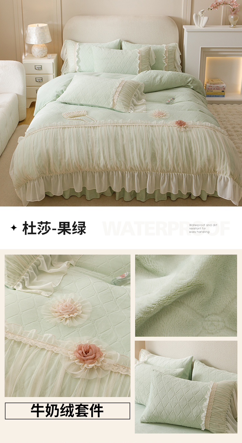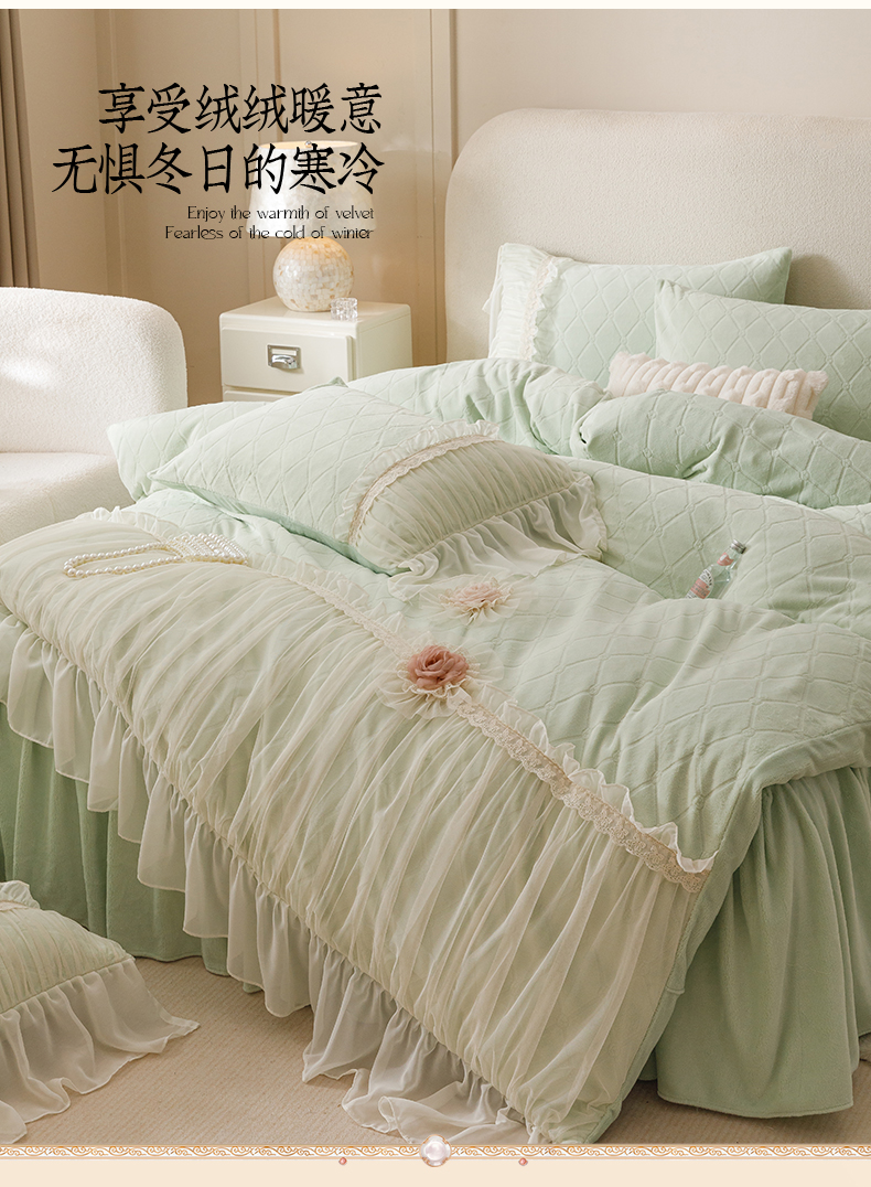 (总)好儿喜 2024新款莫妮卡牛奶绒四件套,果绿,米色,浅粉