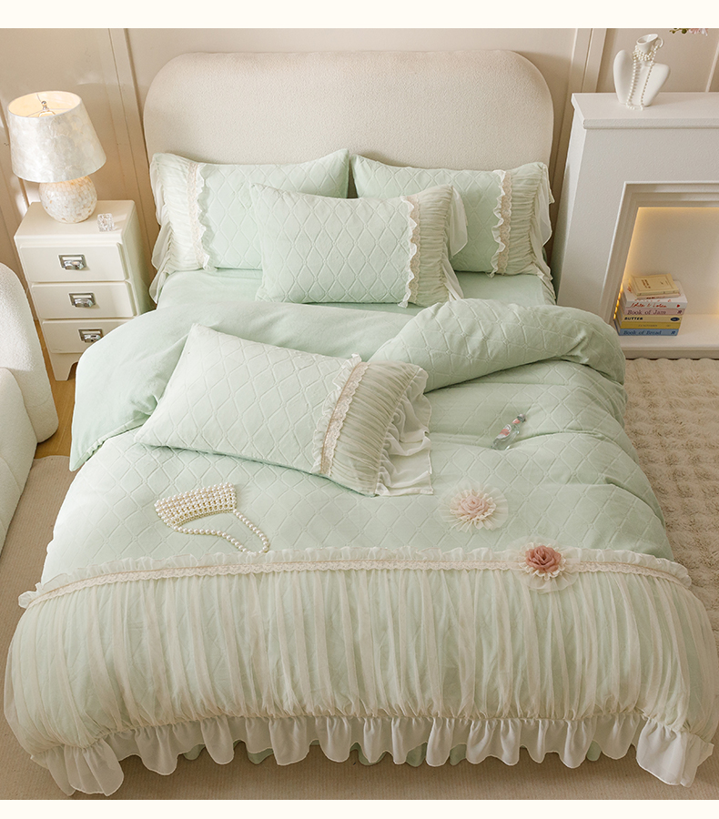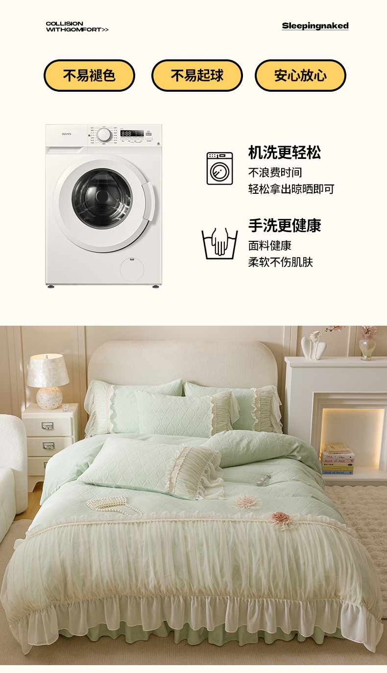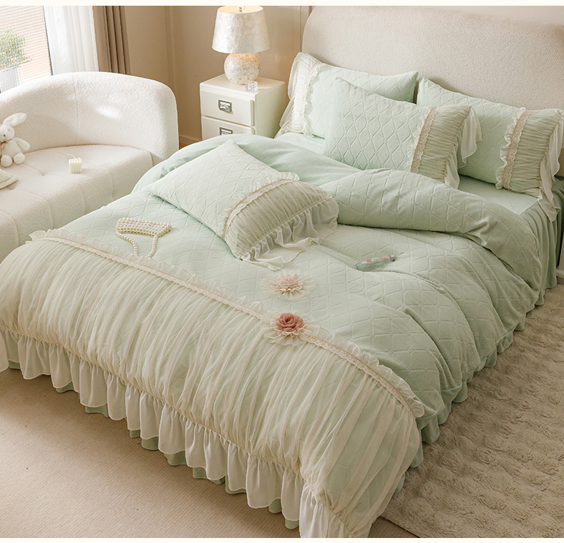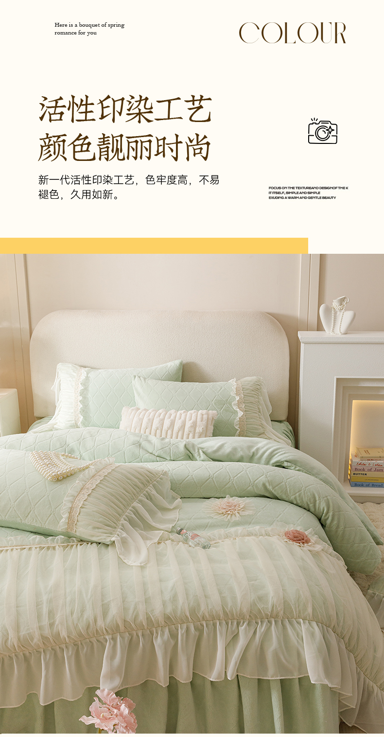 (总)好儿喜家纺 2024新款伊芙琳夏被凉席床裙四件套,浅绿,橄榄绿,奶白,浅粉,浅蓝