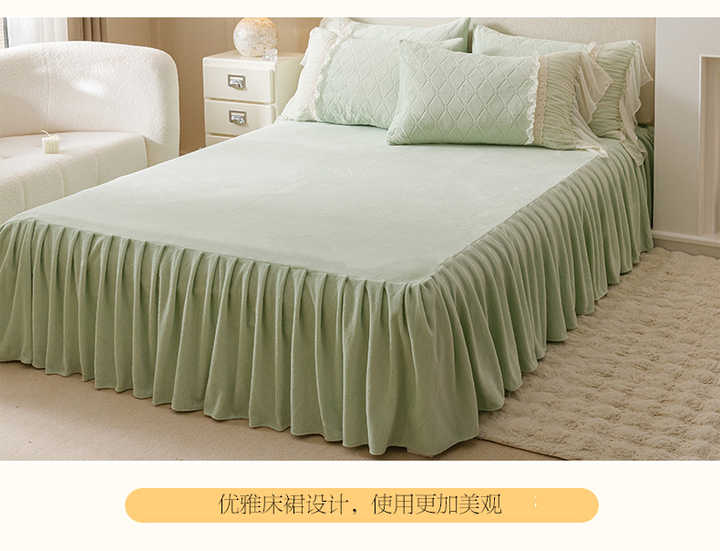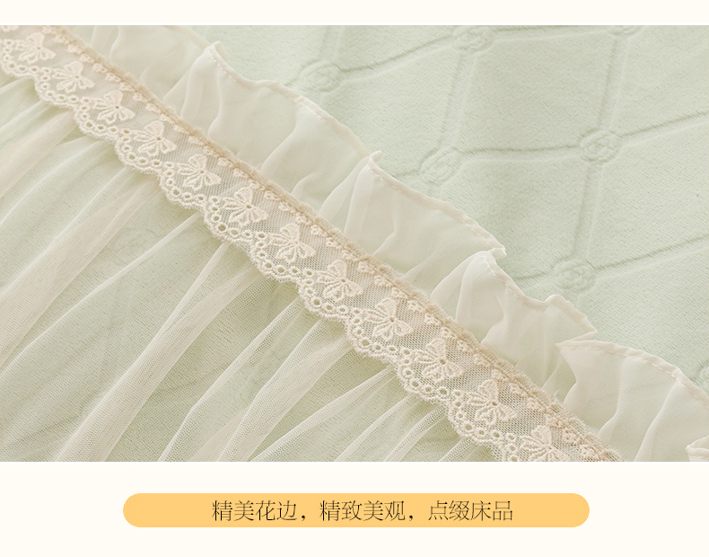 (总)好儿喜家纺 2024新款伊芙琳凉席床裙三件套,浅绿,橄榄绿,奶白,浅粉,浅蓝