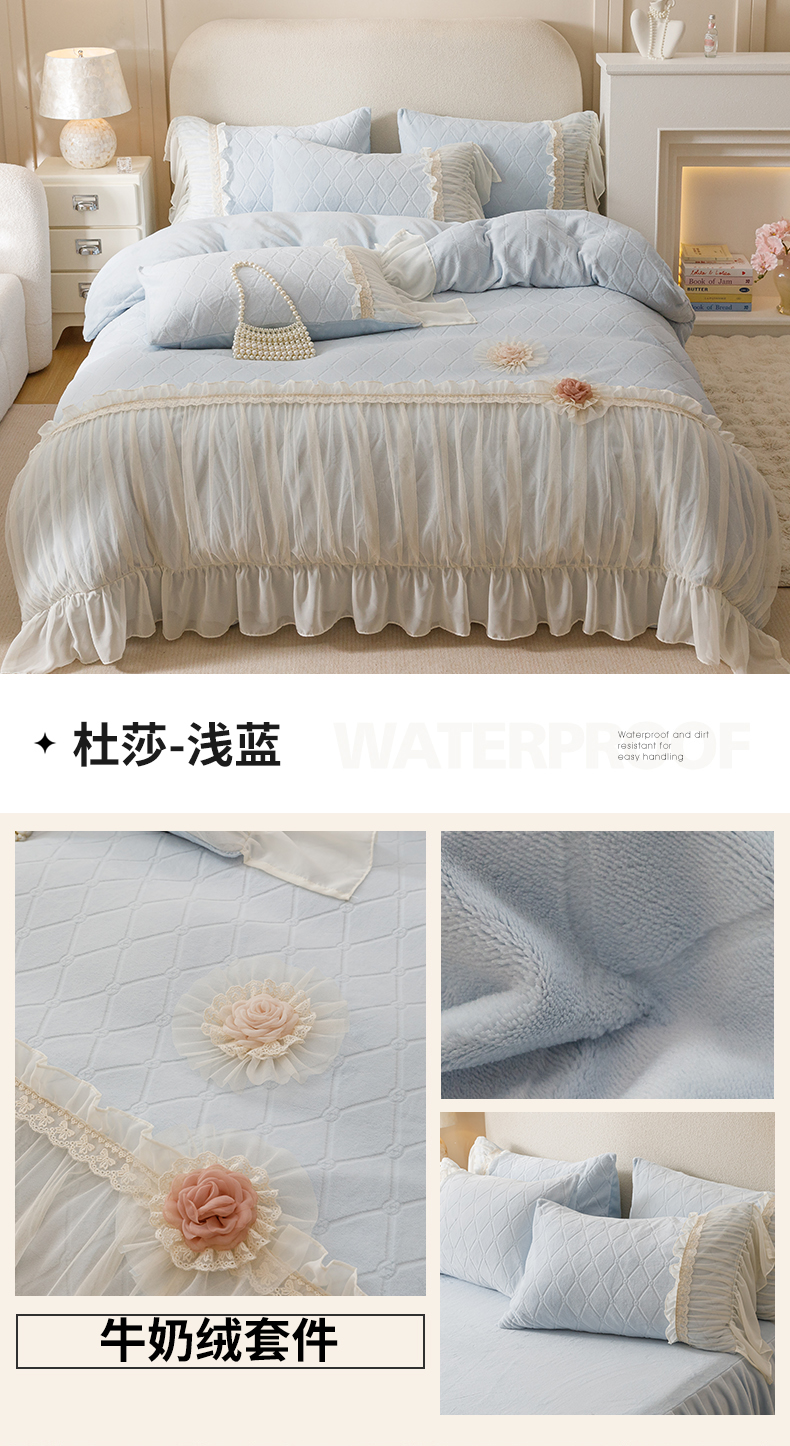 商品名称:(总)好儿喜家纺 2025新款牛奶绒四件套冬季雕花绒保暖舒适被套加厚牛奶绒床上用品-杜莎