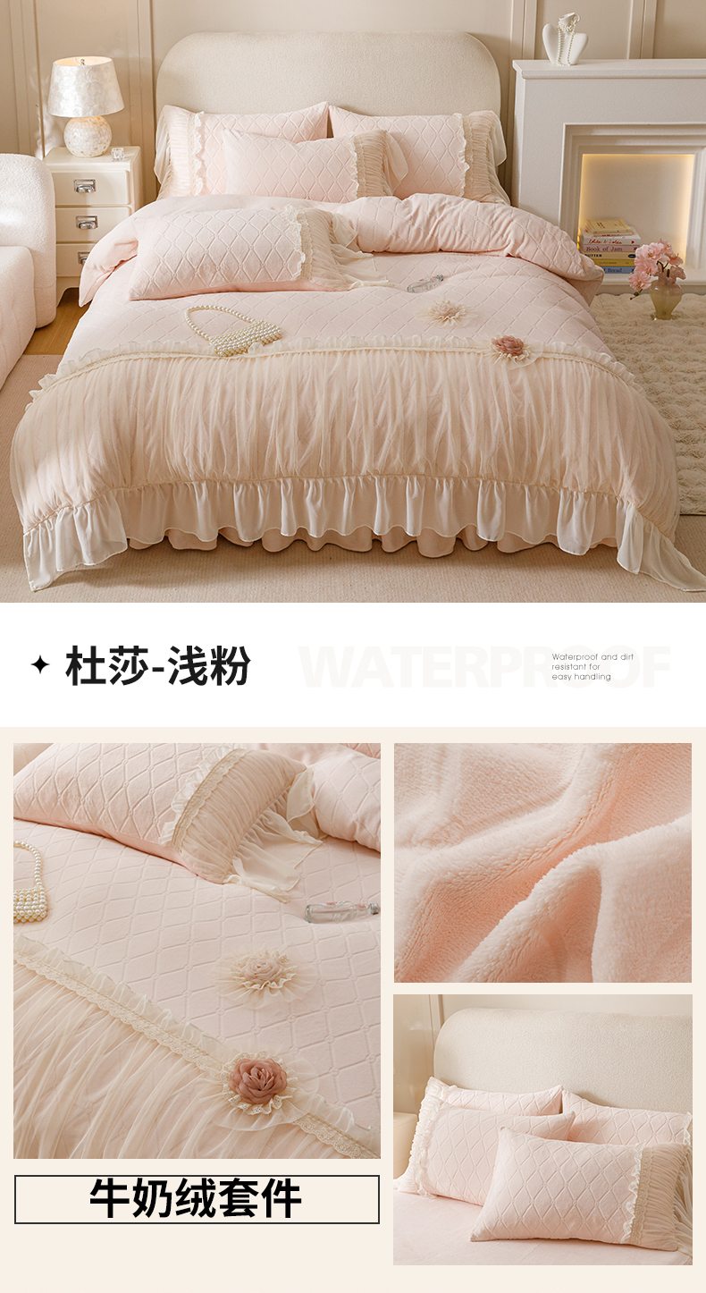 (总)好儿喜家纺 2025新款牛奶绒四件套冬季雕花绒保暖舒适被套加厚牛奶绒床上用品-杜莎