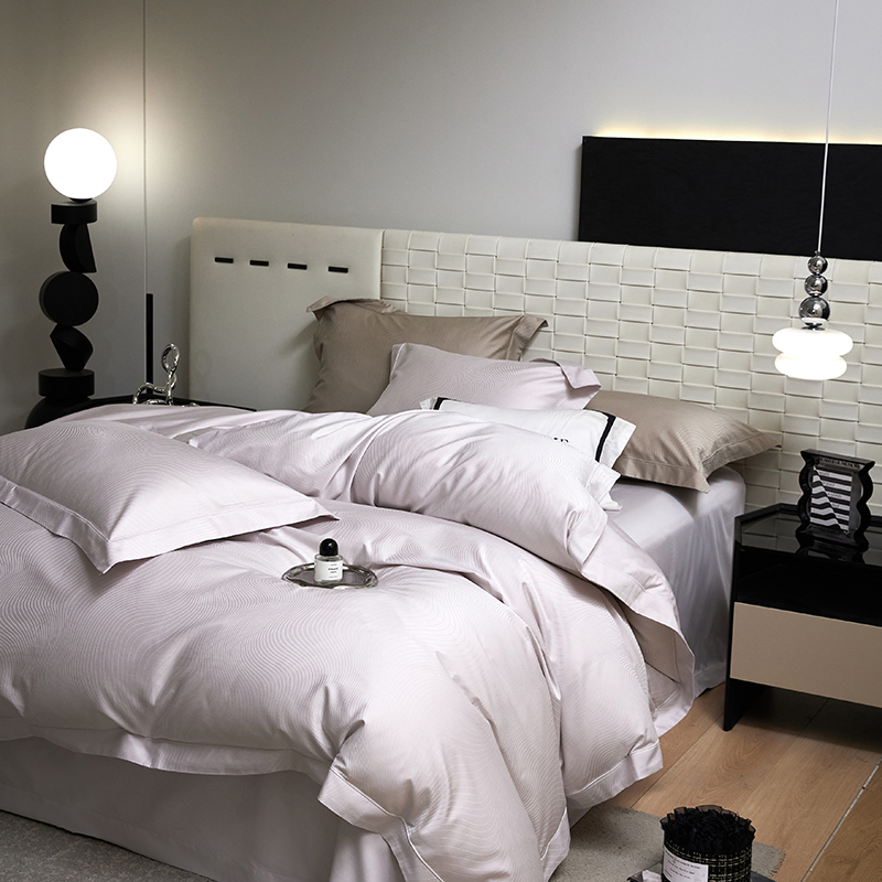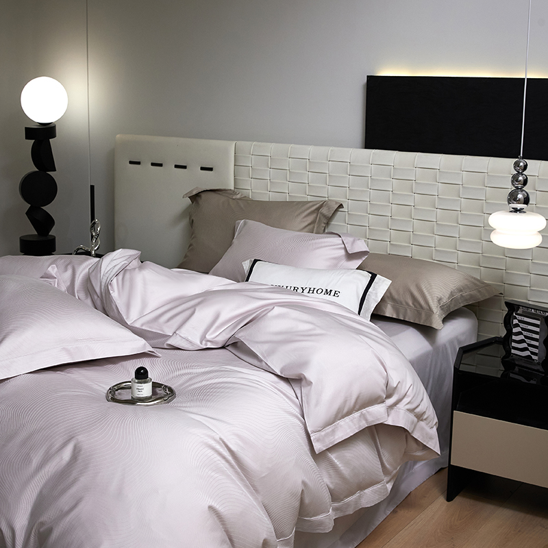 (总)榻尚家居 2023新款纯棉贡缎提花四件套(会员-10),缤兰,烟粉