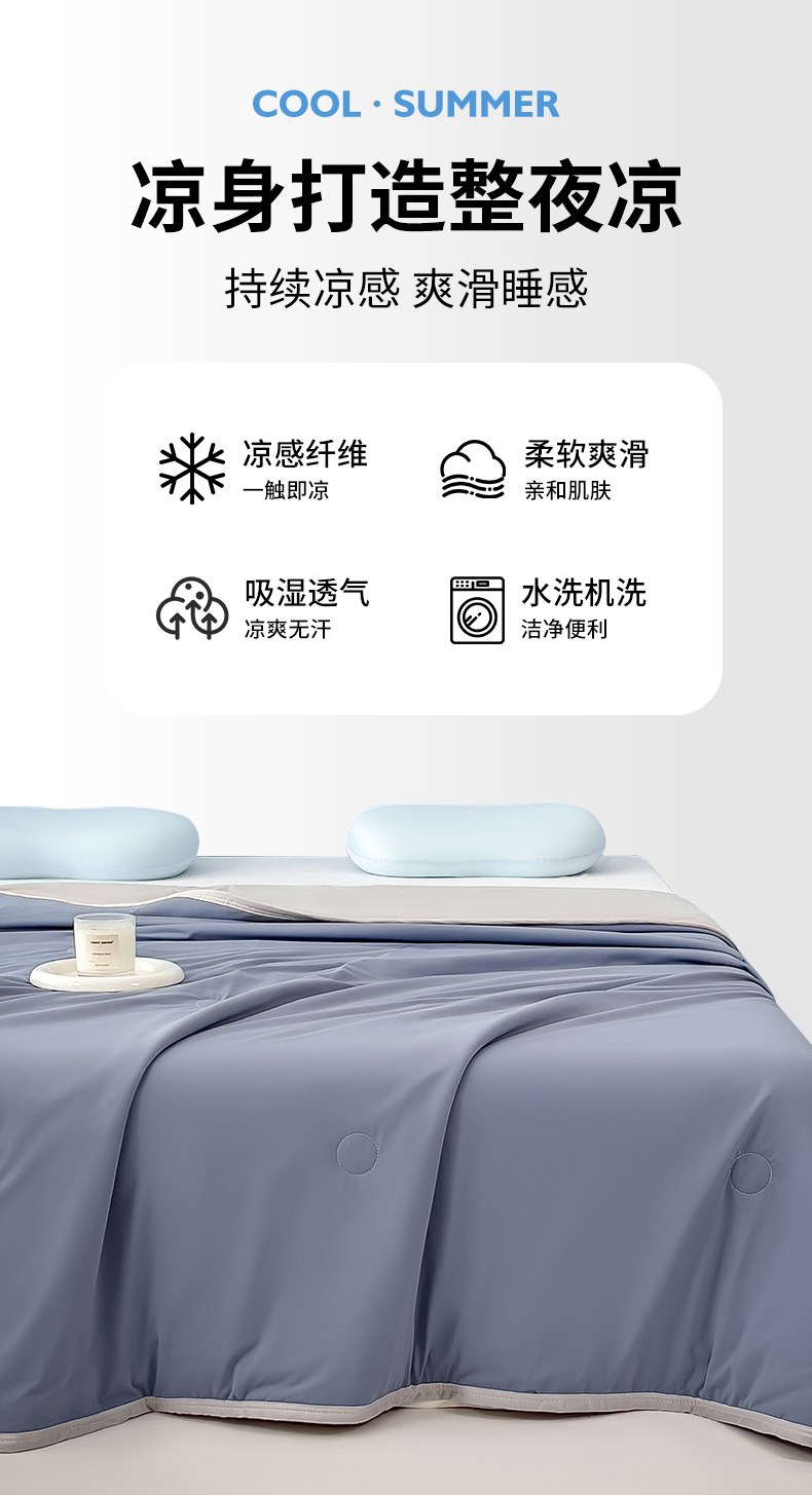 商品名称:世纪绒品 2025新款A类日本凉感科技冰淇淋云母凉感丝夏被 星空蓝灰