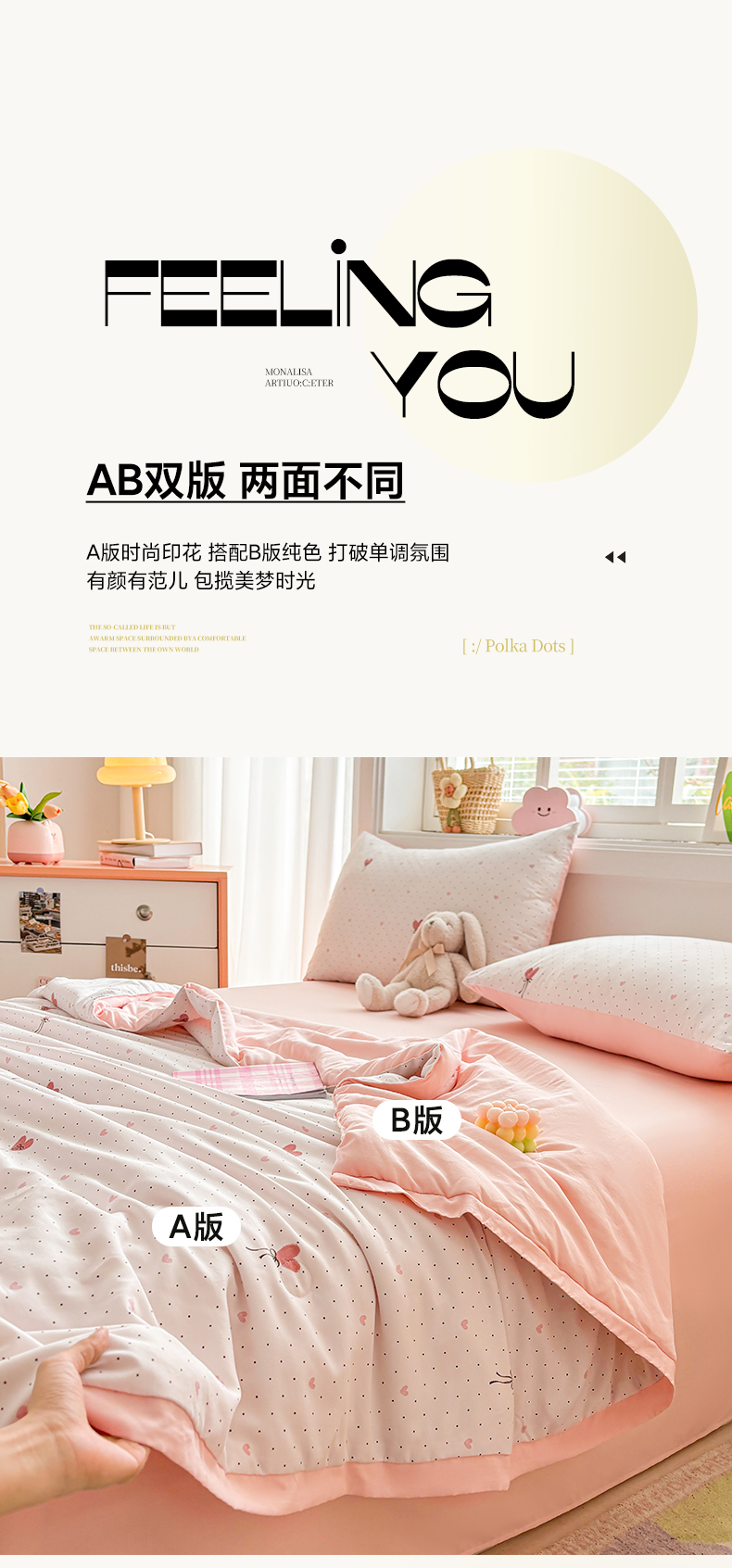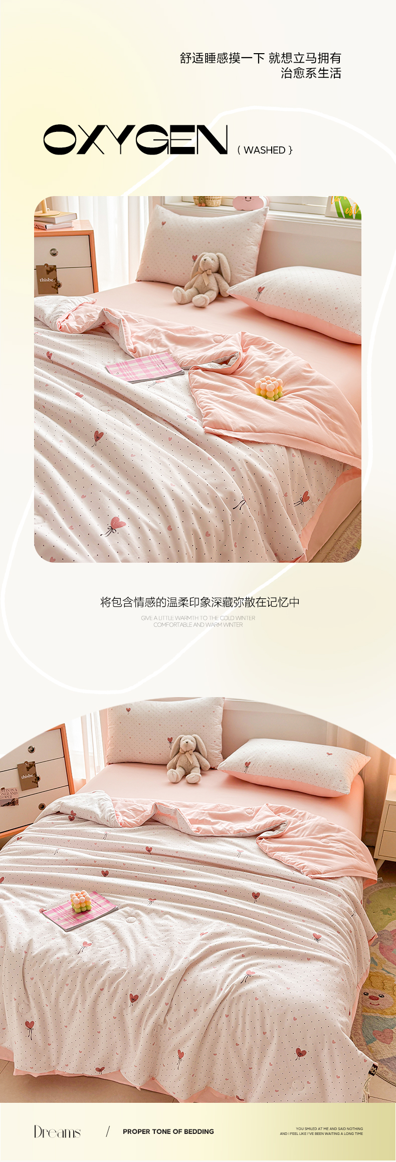 当前位置: 91家纺网 > 商品网购 > 床品套件 > 四件套 > 夏被四件套 > 金喜 2025新款小清新风格有氧针织双层纱大豆被夏被四件套 爱心气球
