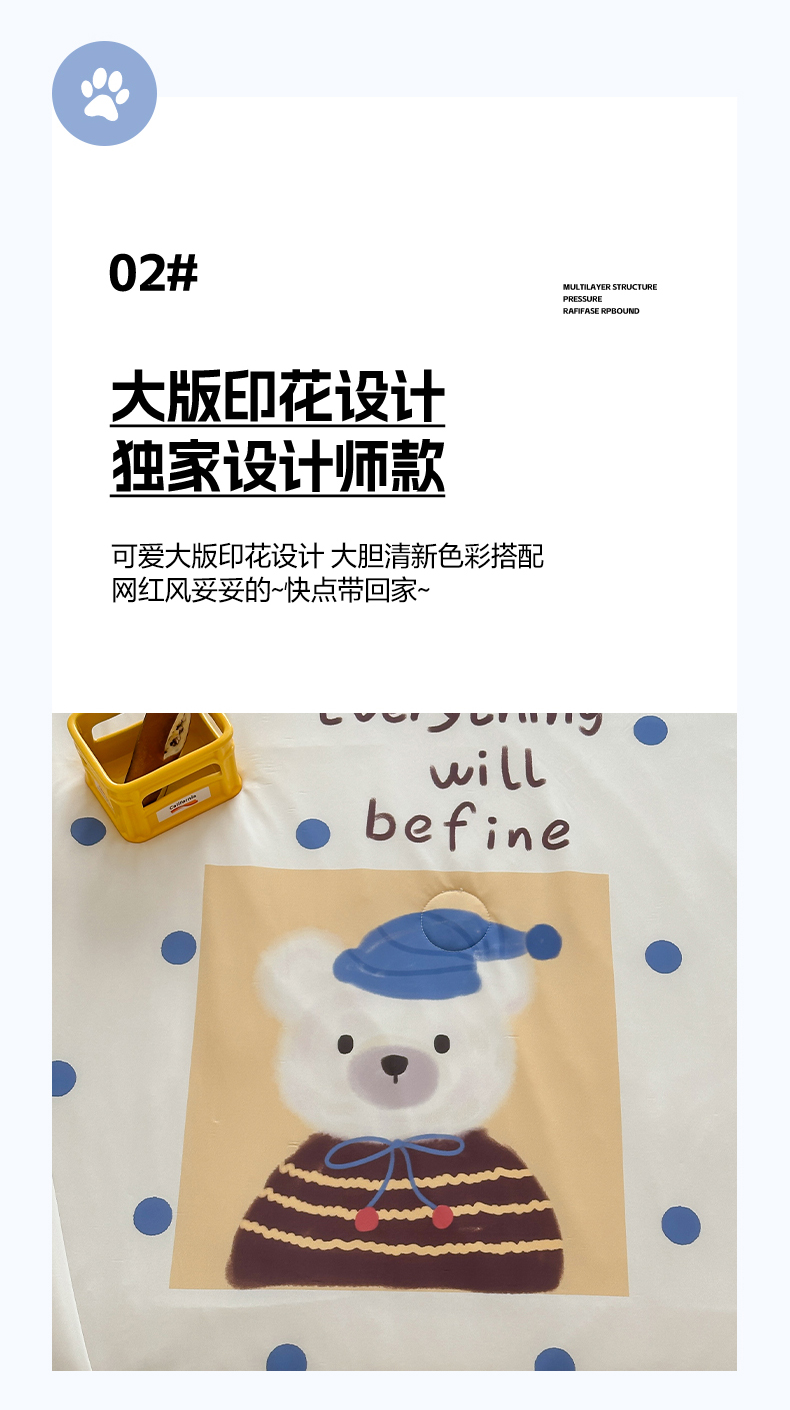 (总)RYB红黄兰 2025新款设计师原创A版抽条兔兔绒B版牛奶绒印花四件套,咖色潦草狗,波点黑猫,包装展示图,星星蝴蝶结,蓝色兔兔,奶油西高地