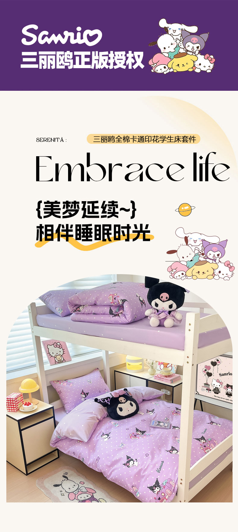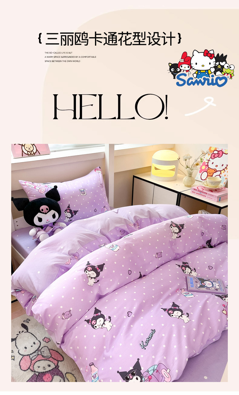 当前位置: 91家纺网 > 商品网购 > 床品套件 > 四件套 > 全棉普通四件套 > 暮思家居 2025新款三丽鸥授权全棉少女印花系列学生宿舍三件套四件套 汽车库洛米