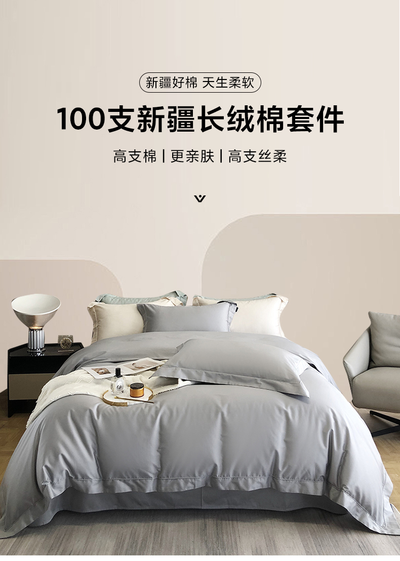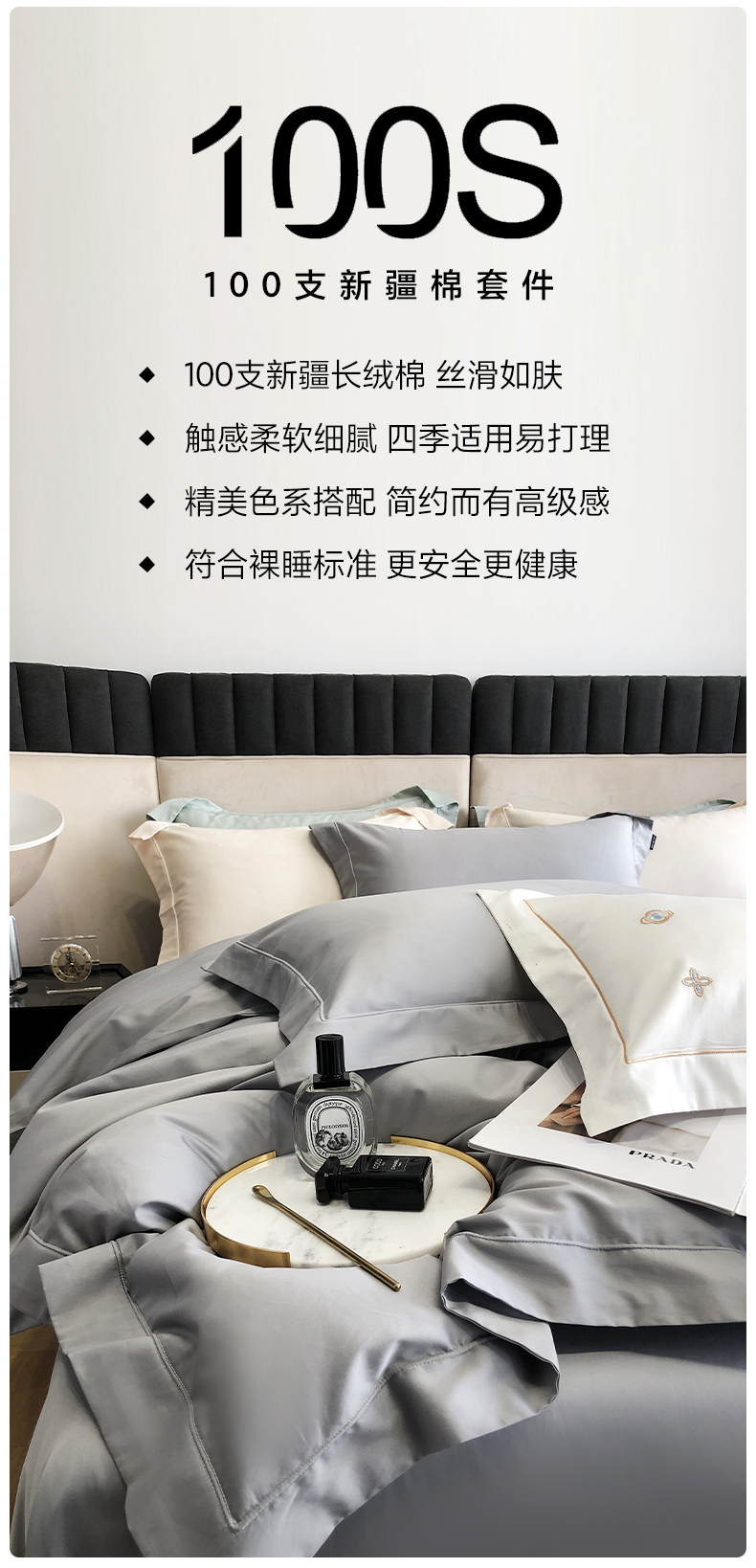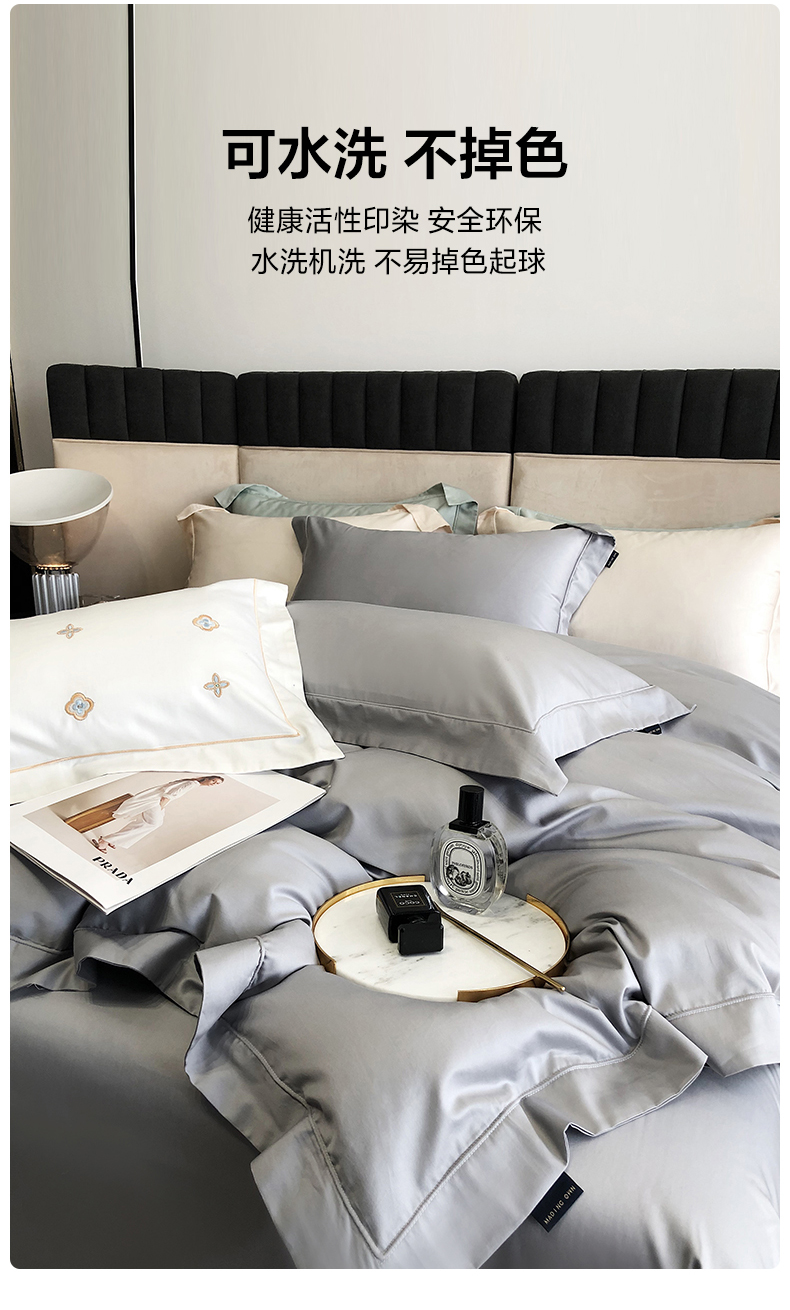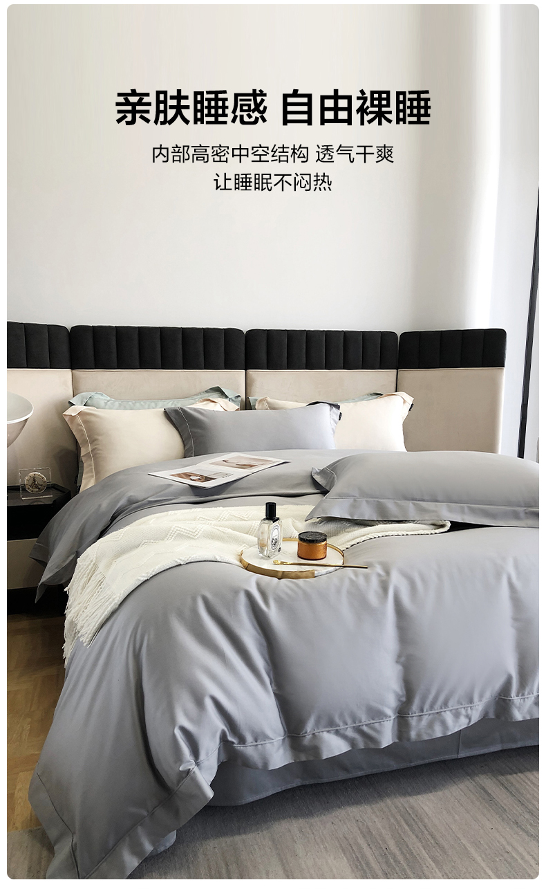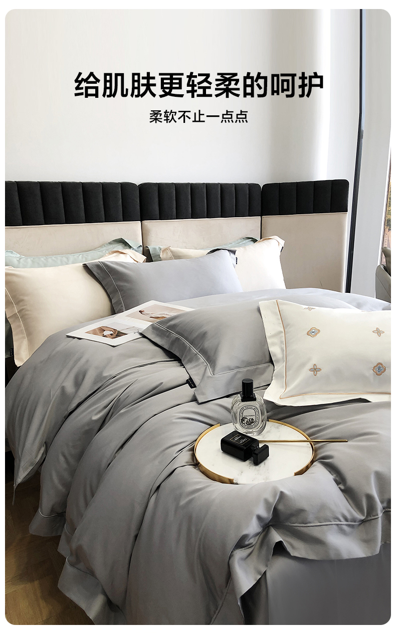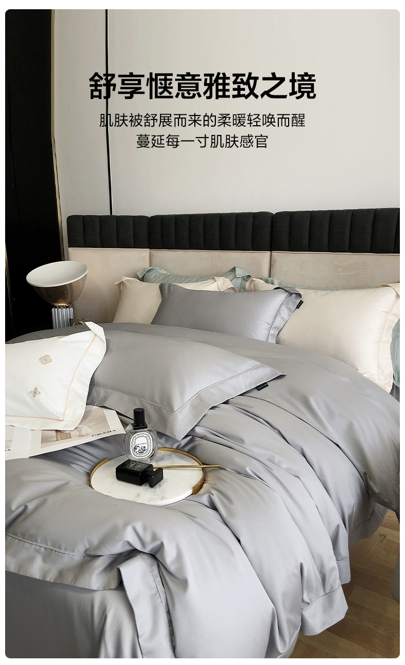 乐美家纺 2025新款A类100支—简爱系列埋线工艺四件套 经典灰
