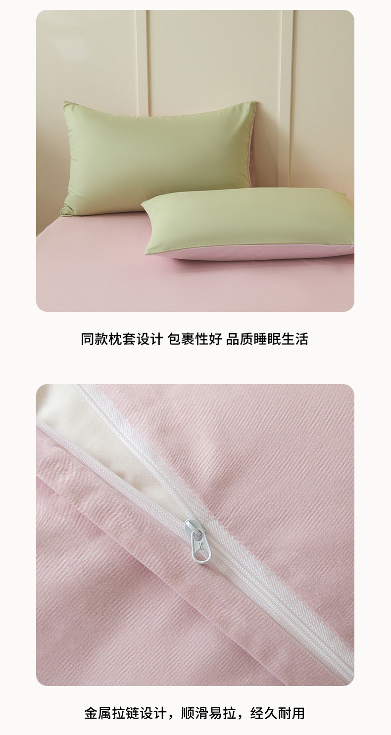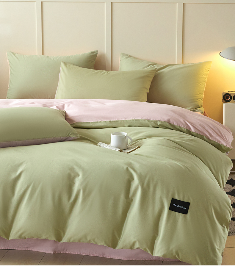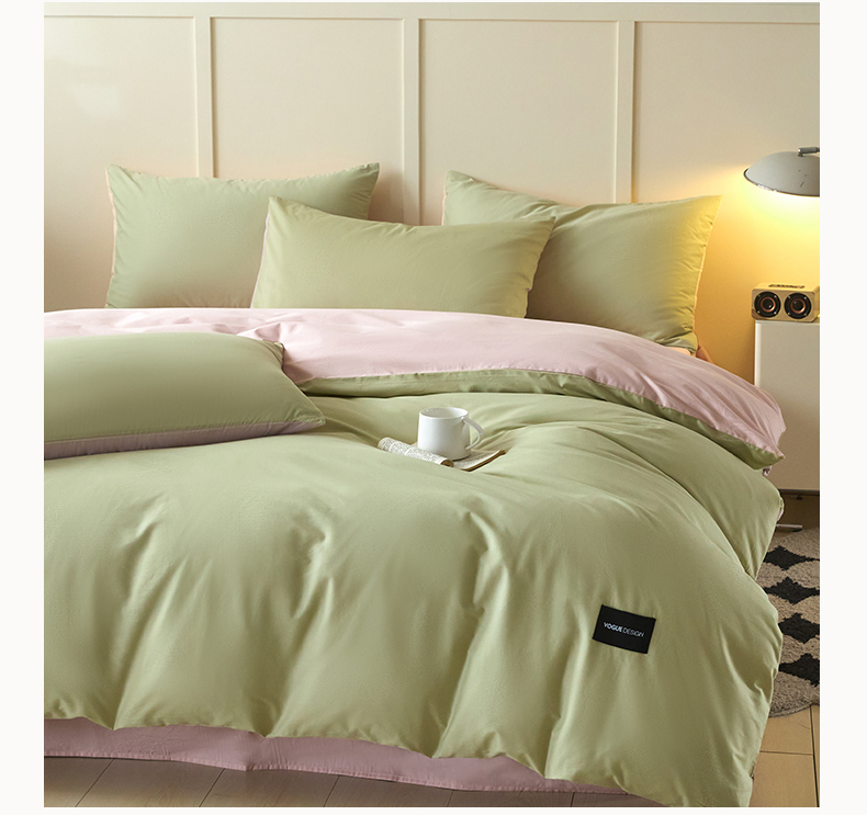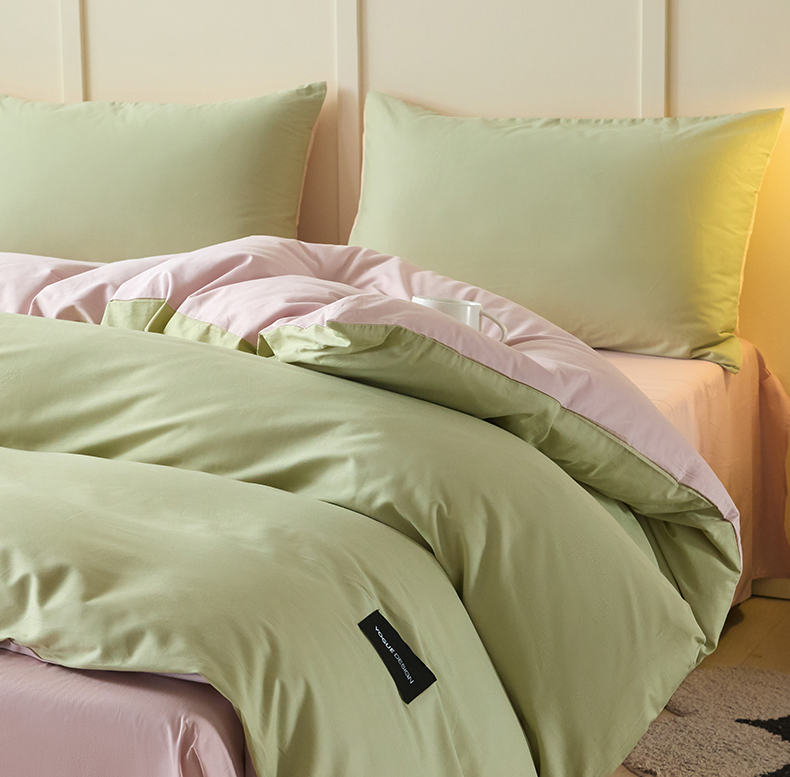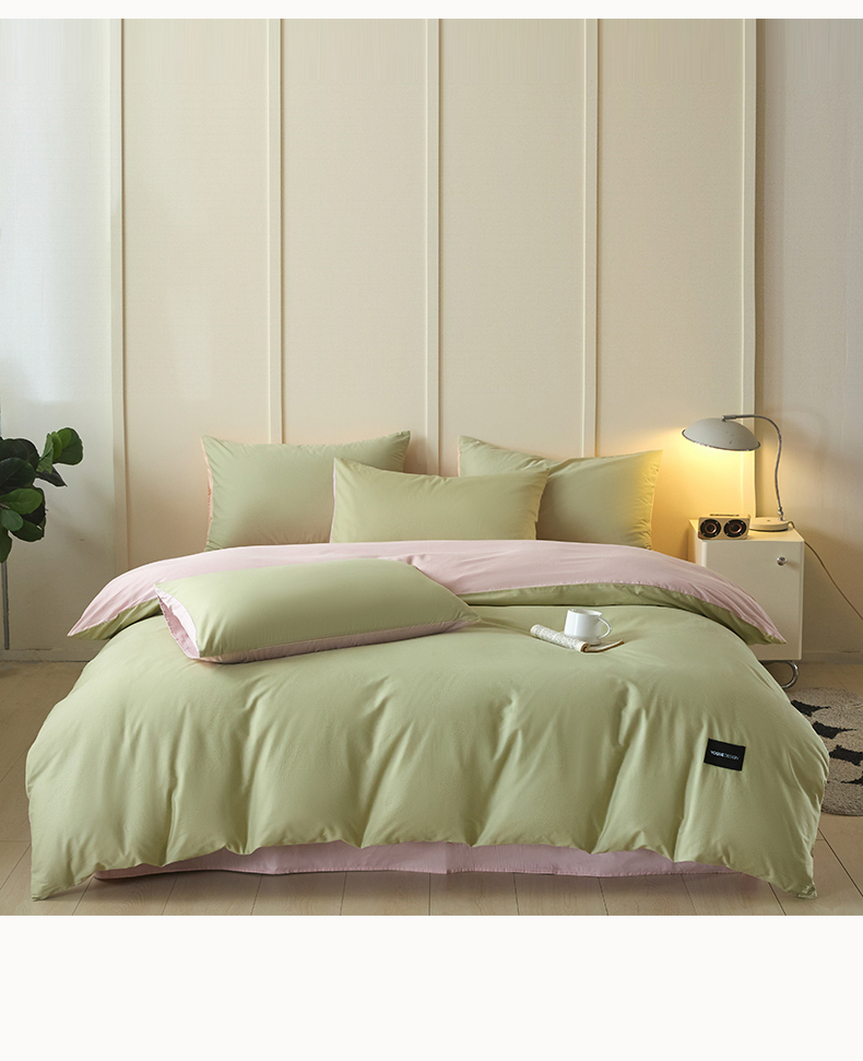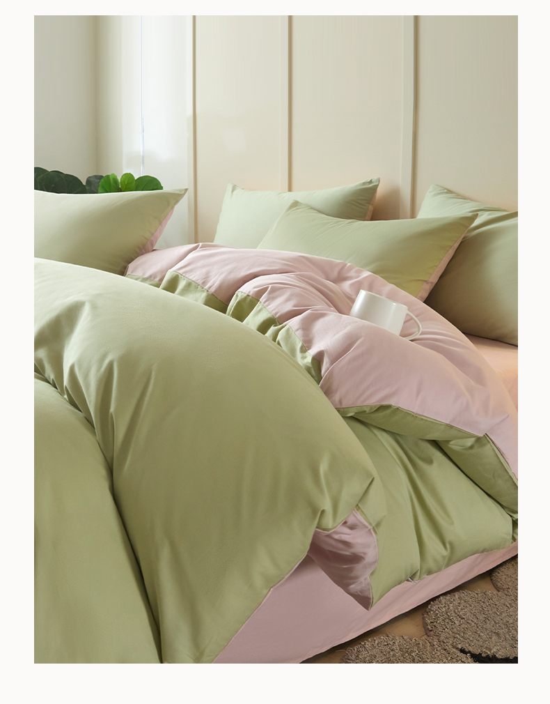 当前位置: 91家纺网 > 商品网购 > 床品套件 > 四件套 > 全棉普通四件套 > 乐美家纺 2025新款全棉纯棉纯色双拼多规格四件套 豆绿+西梅粉