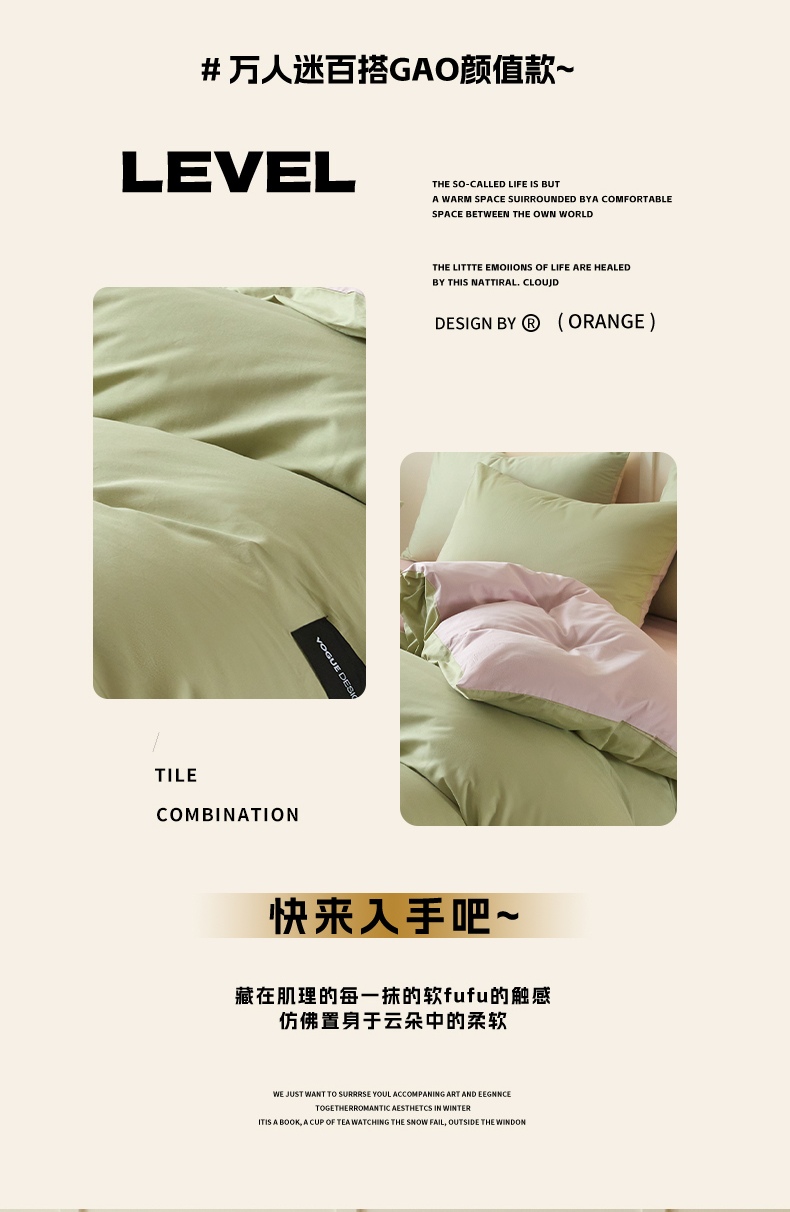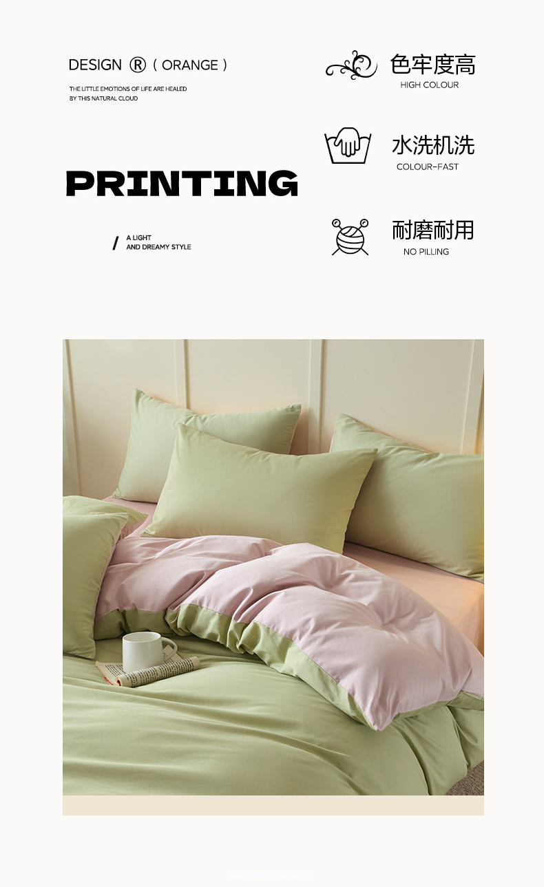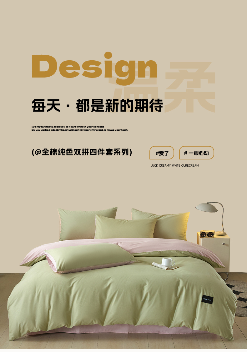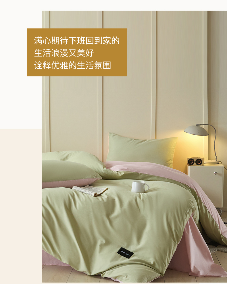 当前位置: 91家纺网 > 商品网购 > 床品套件 > 四件套 > 全棉普通四件套 > 乐美家纺 2025新款全棉纯棉纯色双拼多规格四件套 豆绿+西梅粉