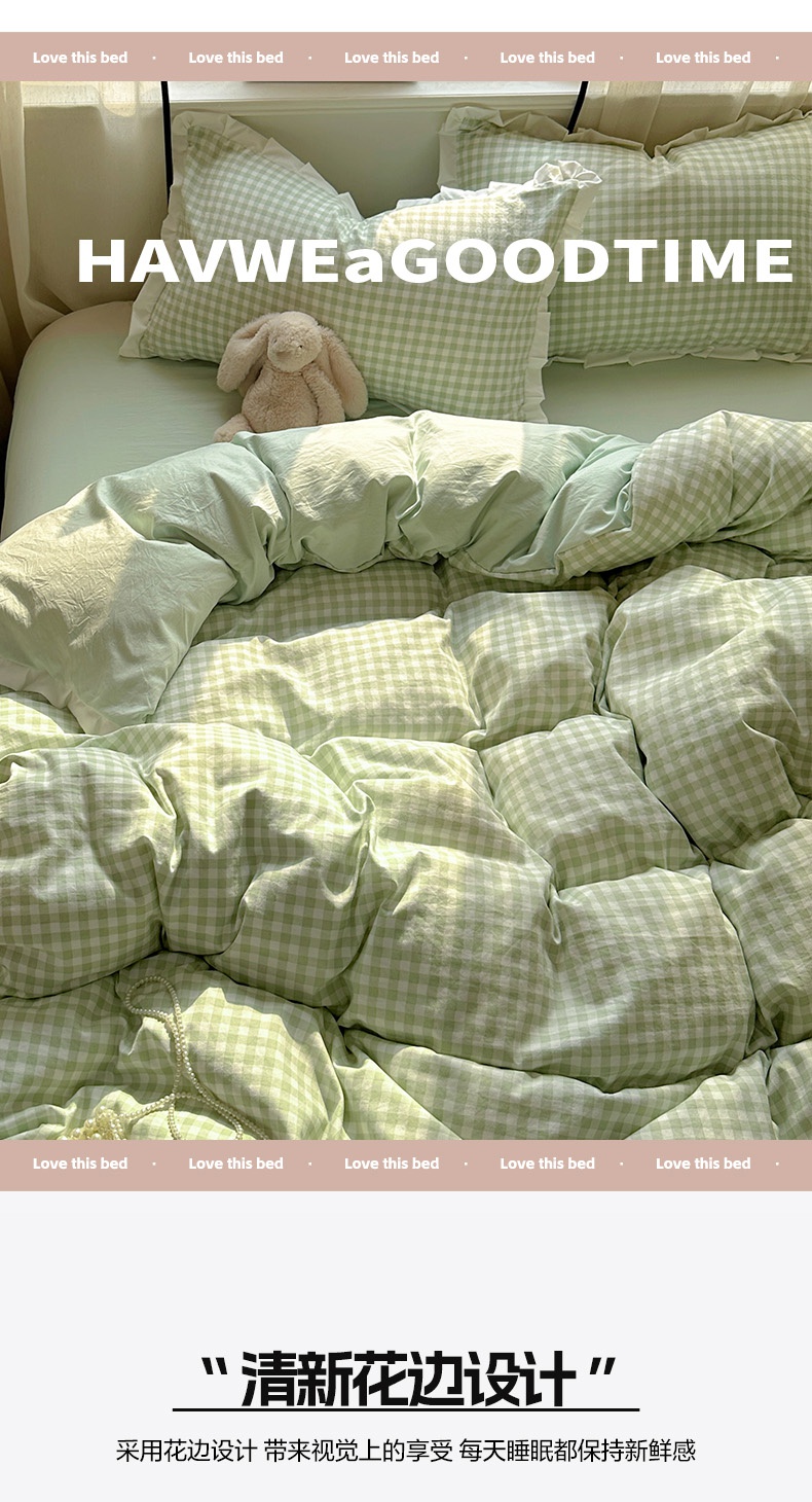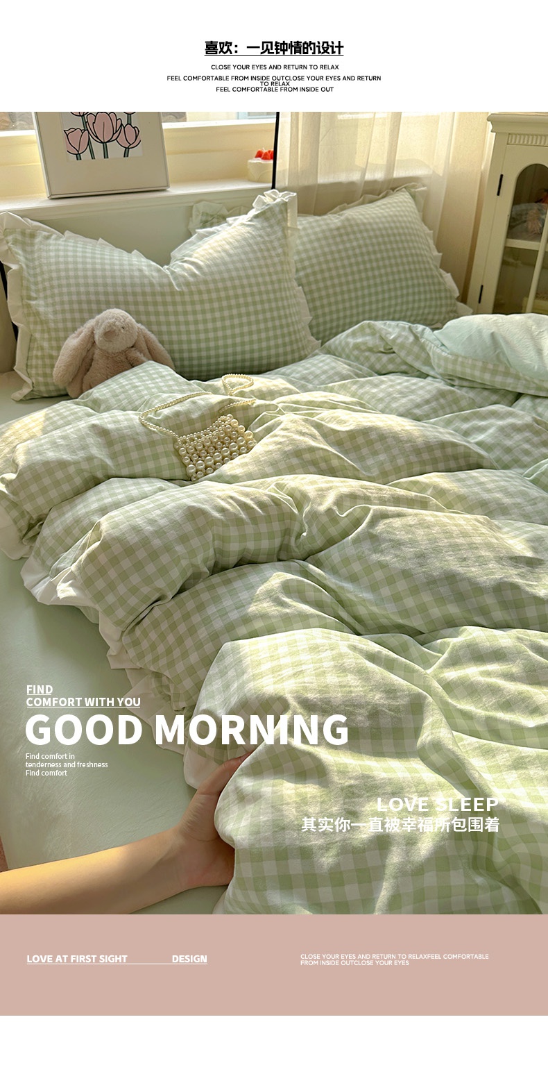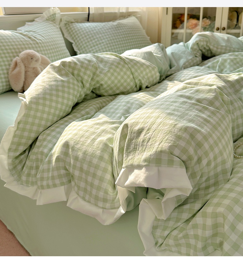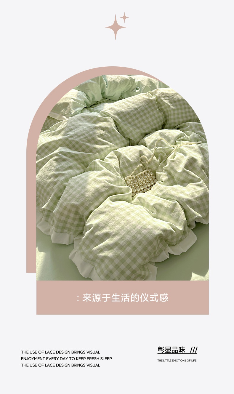 当前位置: 91家纺网 > 商品网购 > 床品套件 > 四件套 > 水洗棉四件套 > 冕悠家纺 2025新款少女心加厚超柔皱皱小花边水洗棉四件套(加微信提供买家秀 ) 公主-绿格