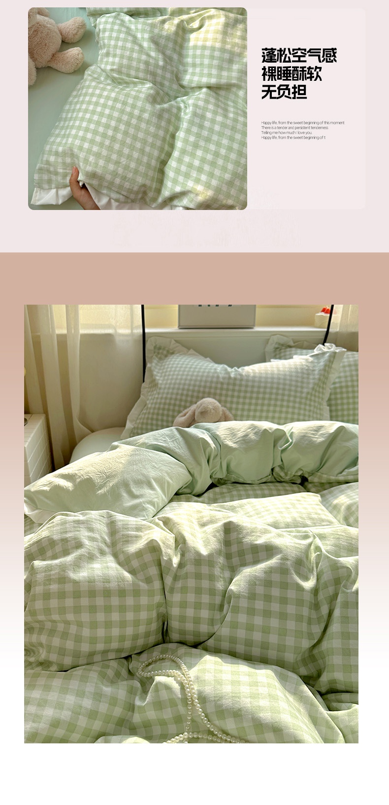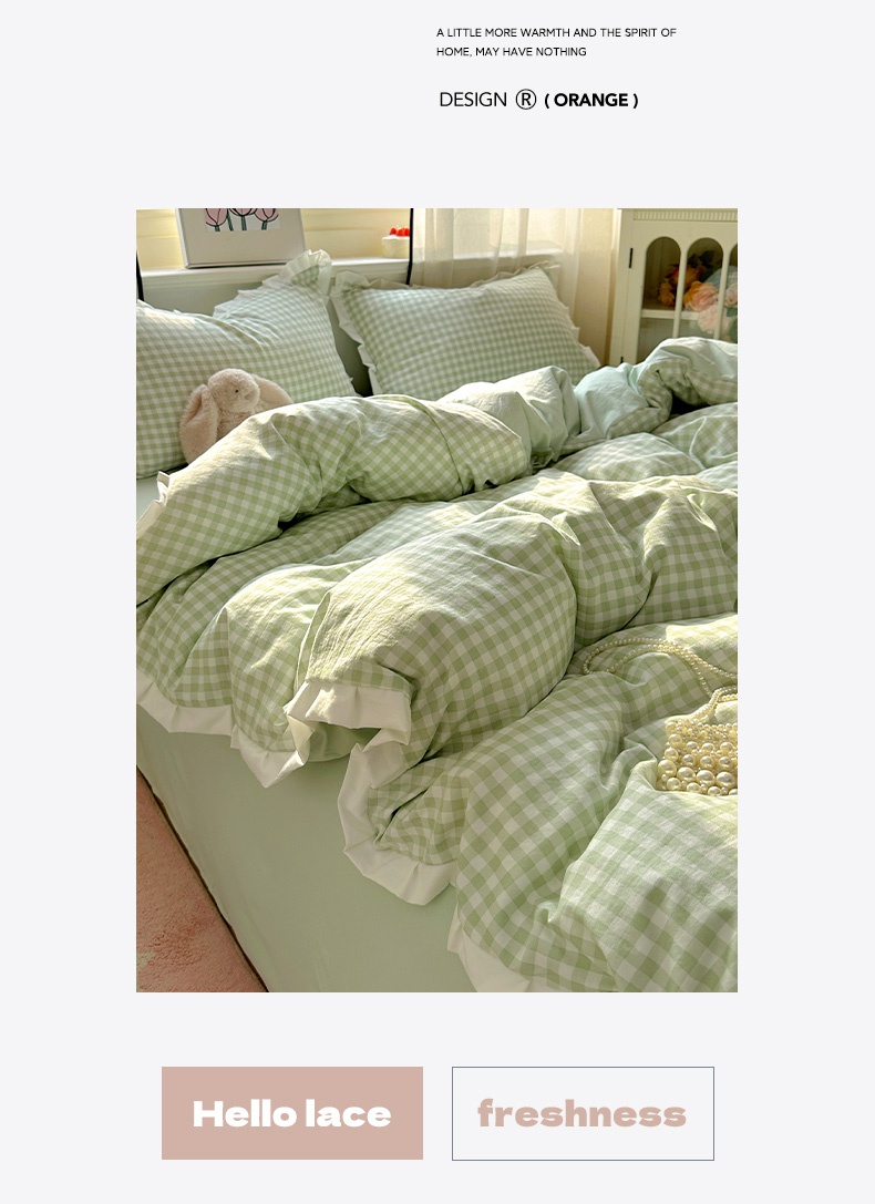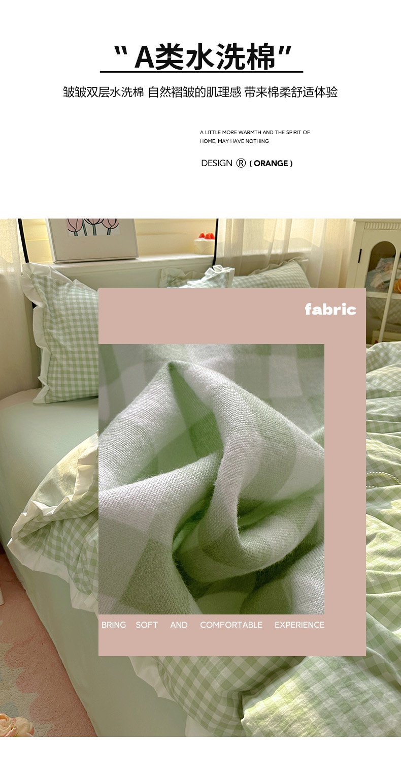 当前位置: 91家纺网 > 商品网购 > 床品套件 > 四件套 > 水洗棉四件套 > 冕悠家纺 2025新款少女心加厚超柔皱皱小花边水洗棉四件套(加微信提供买家秀 ) 公主-绿格