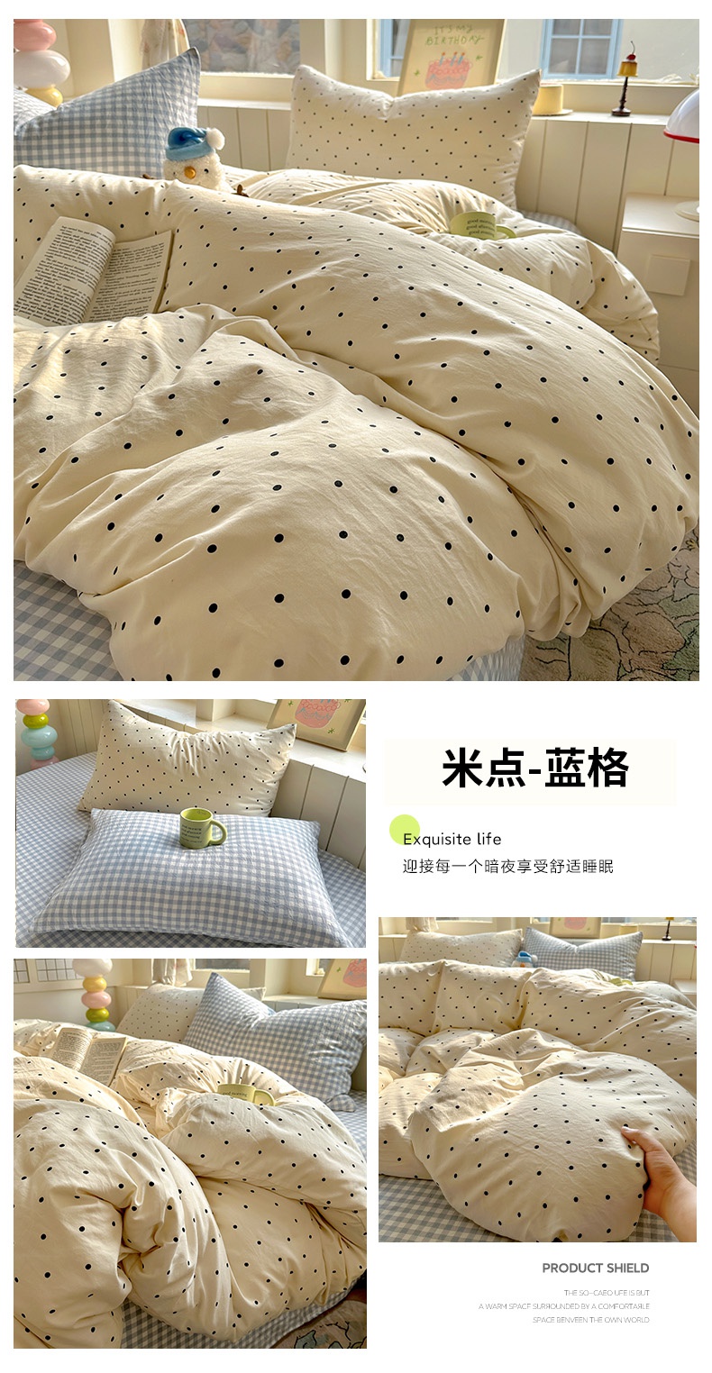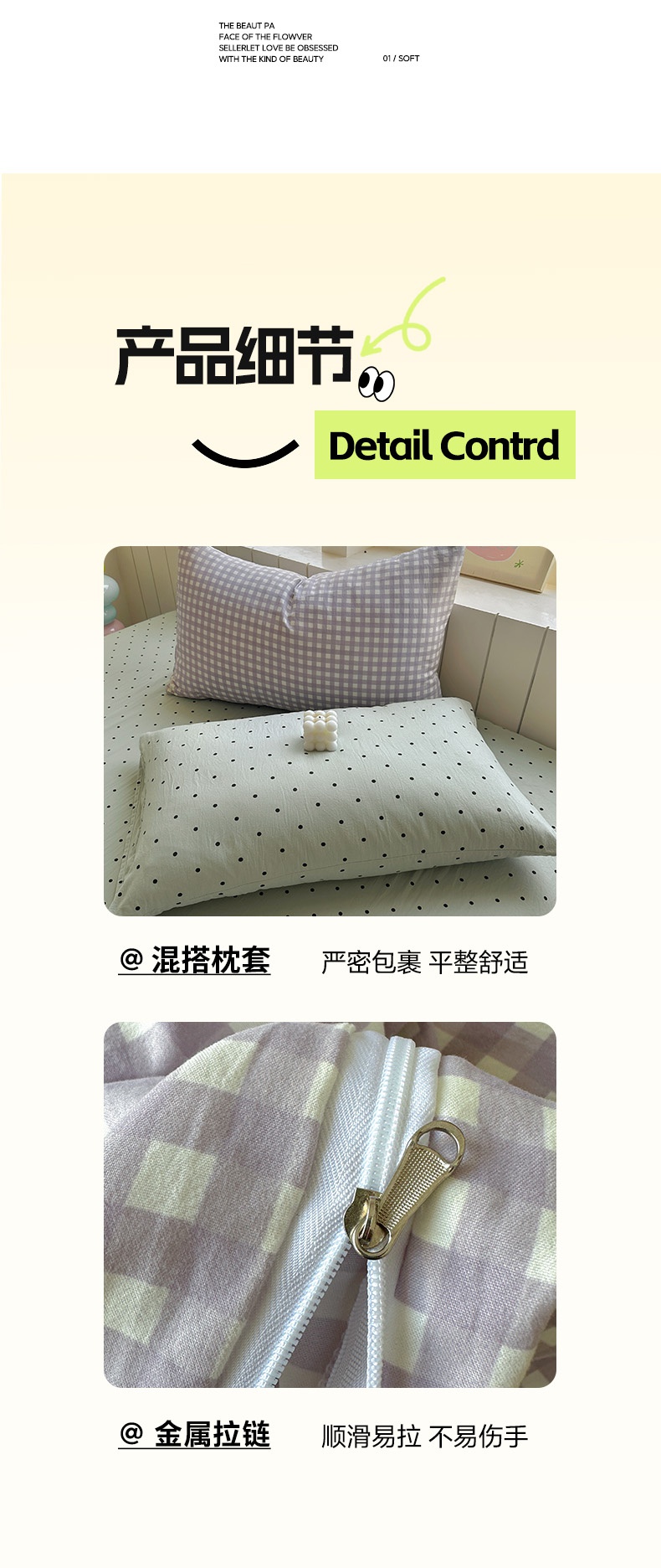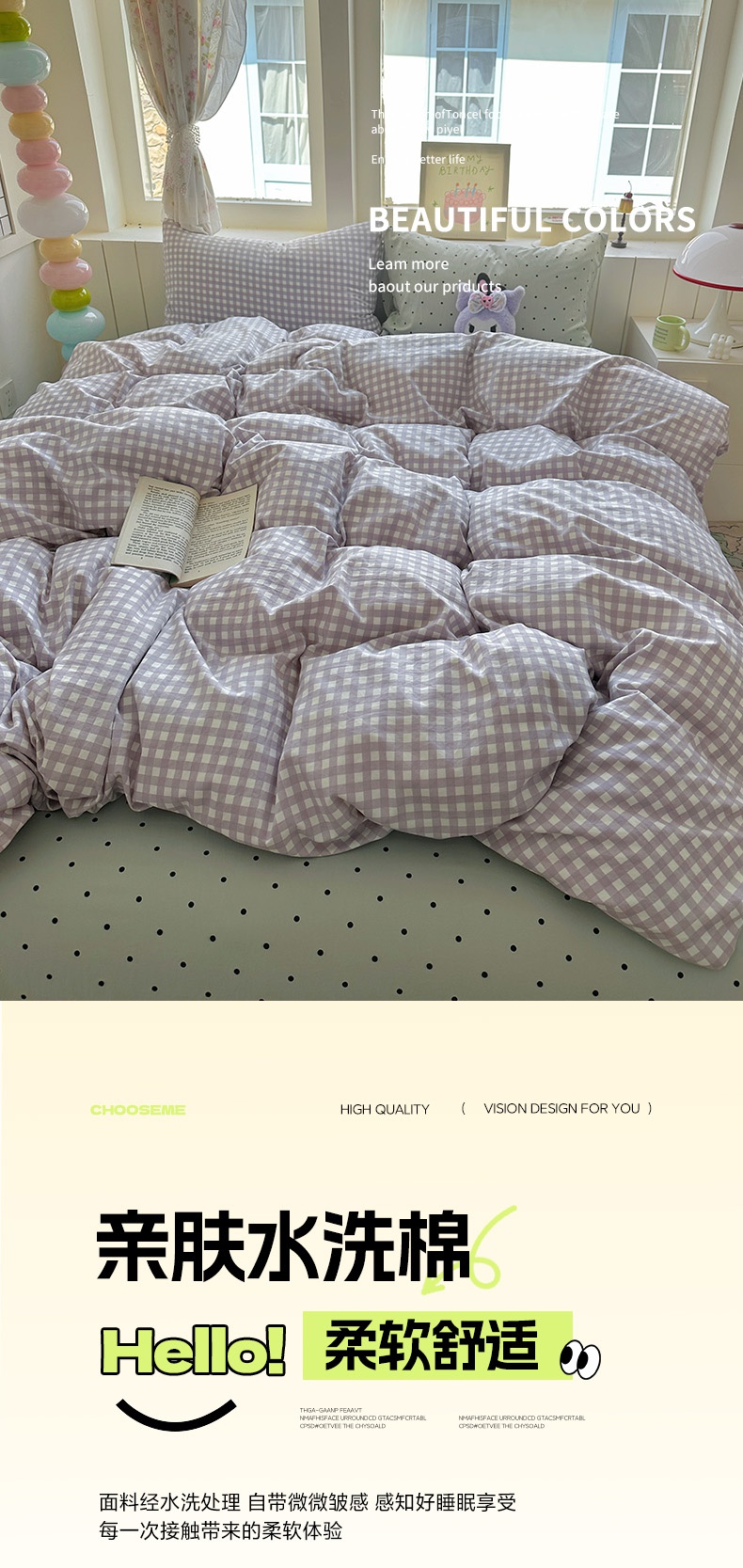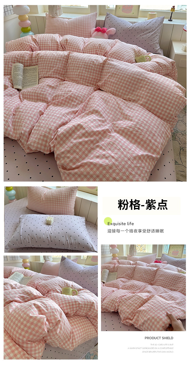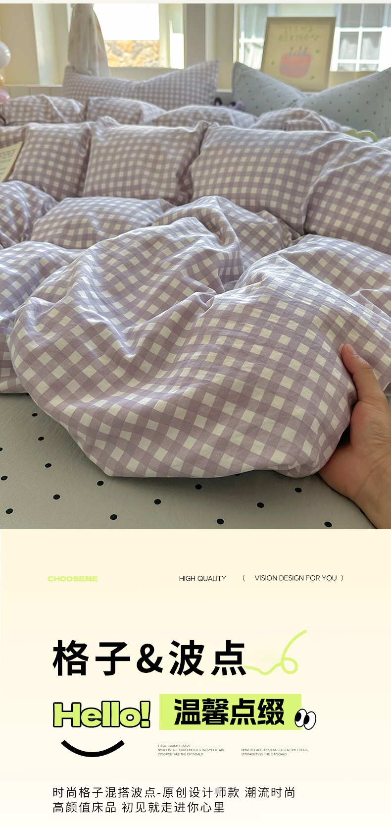 当前位置: 91家纺网 > 商品网购 > 床品套件 > 四件套 > 水洗棉四件套 > 冕悠家纺 2025新款少女心超柔加厚混搭格子水洗棉四件套(加微信提供买家秀 ) 紫格+蓝点