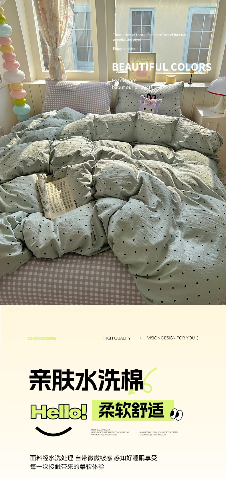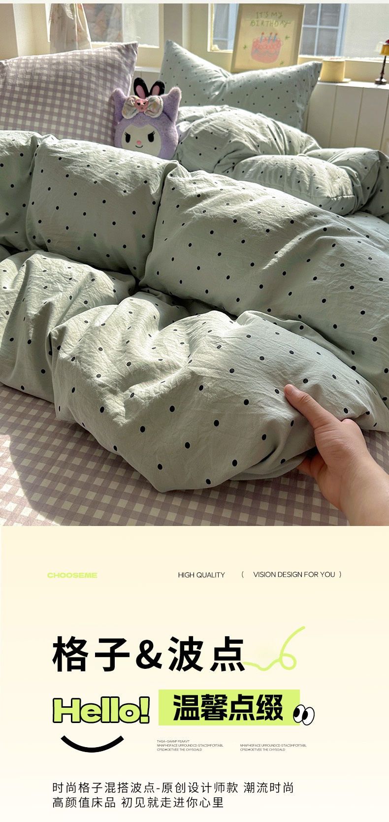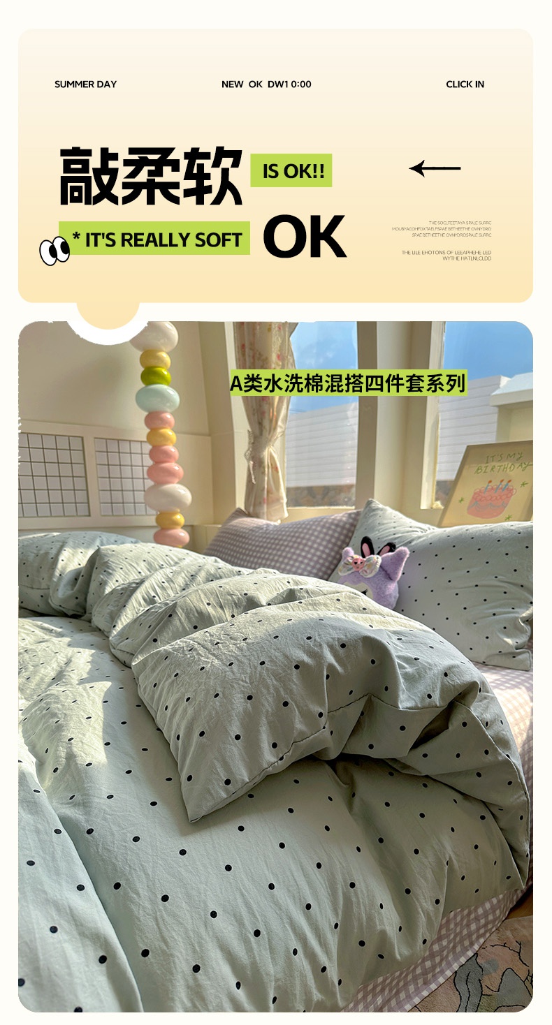 (总)冕悠家纺 2025新款A类加厚水洗棉格子点点印花超柔单品床单枕套,组合图,粉格,蓝点,蓝格,绿格,米点,紫点,紫格