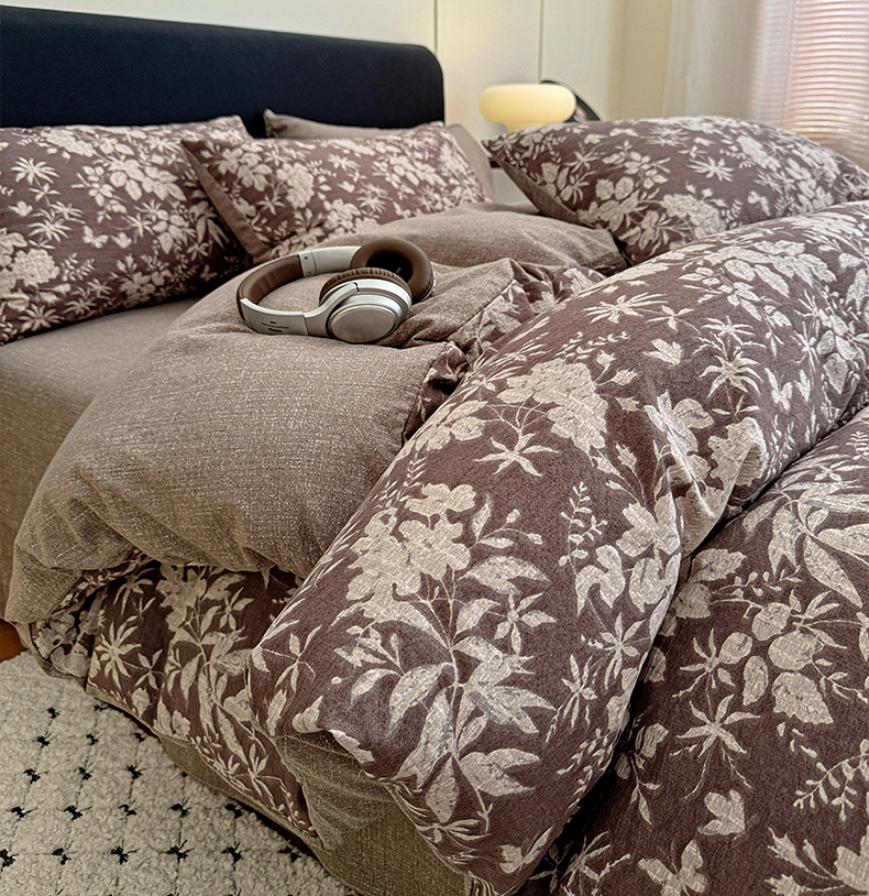 商品名称:金梦拉家纺 2025秋冬爆款新品高克重加厚原麻亚麻皱皱纱印花四件套 组合图仅做展示