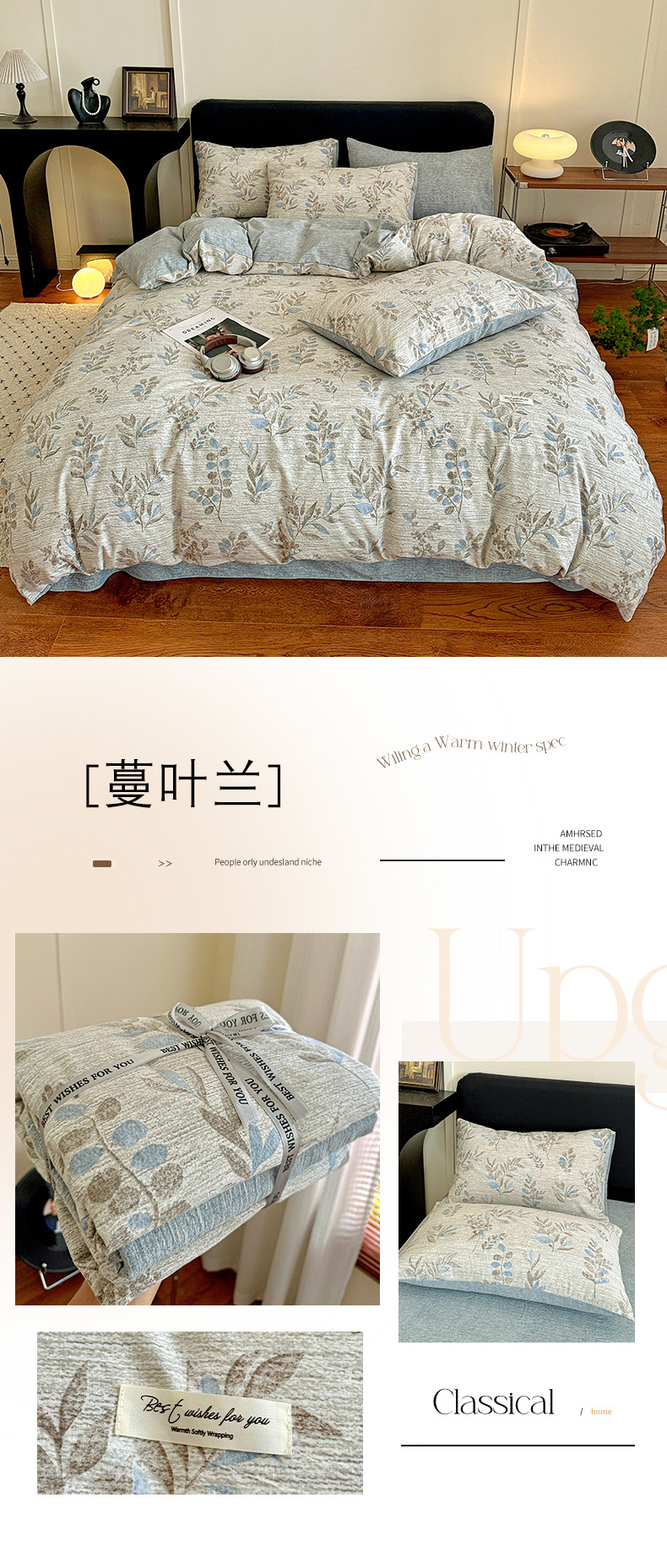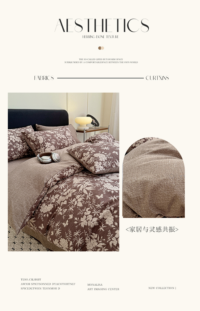 金梦拉家纺 2025秋冬爆款新品高克重加厚原麻亚麻皱皱纱印花四件套 组合图仅做展示