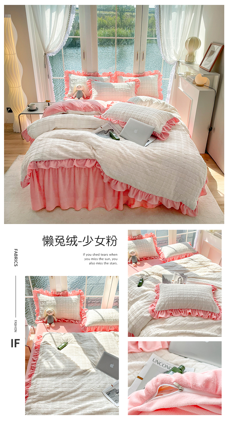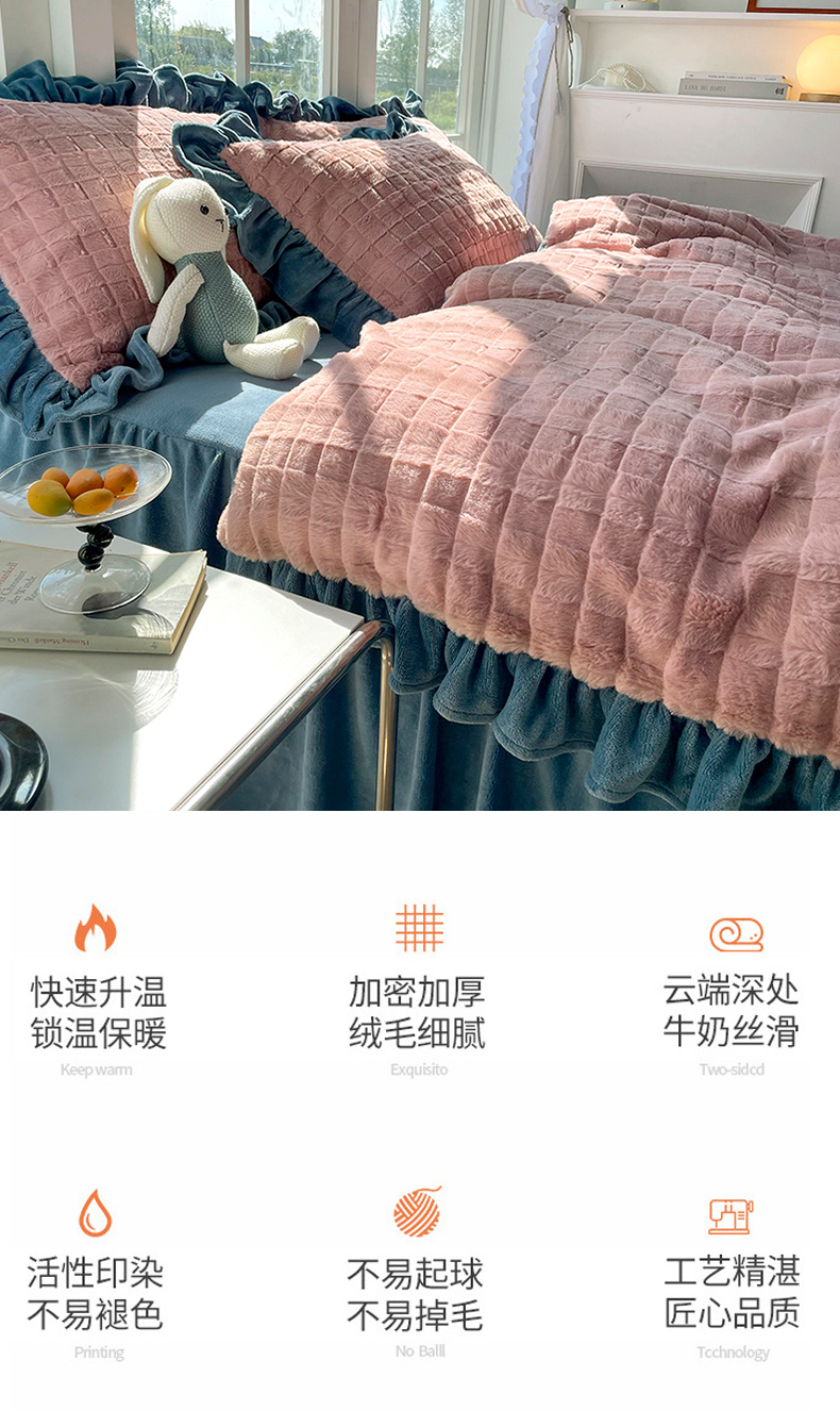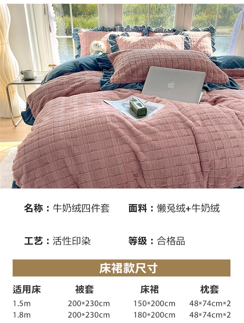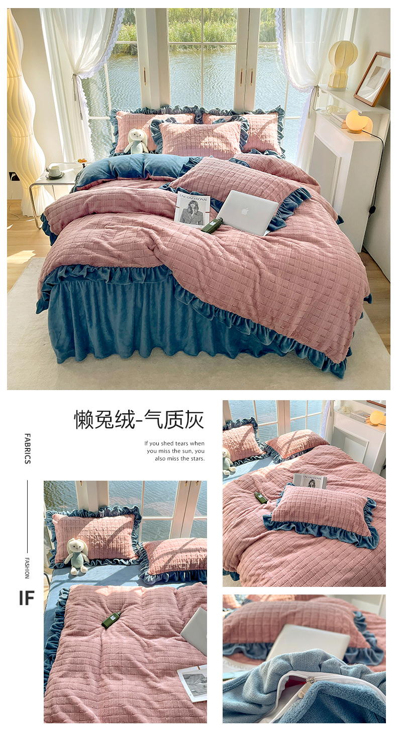商品名称:睡美人 2025新款韩版方块兔绒牛奶绒床裙公主款四件套 方块兔绒-气质灰