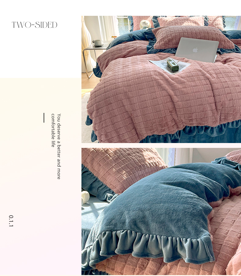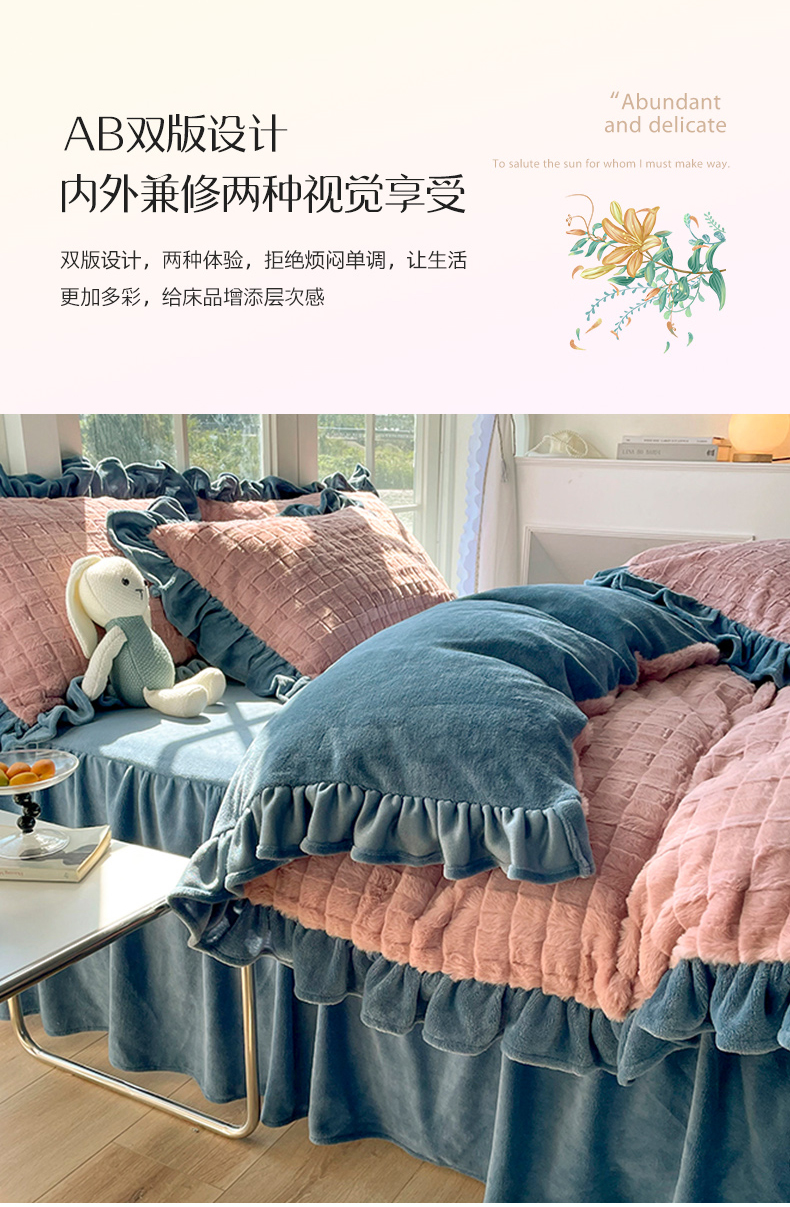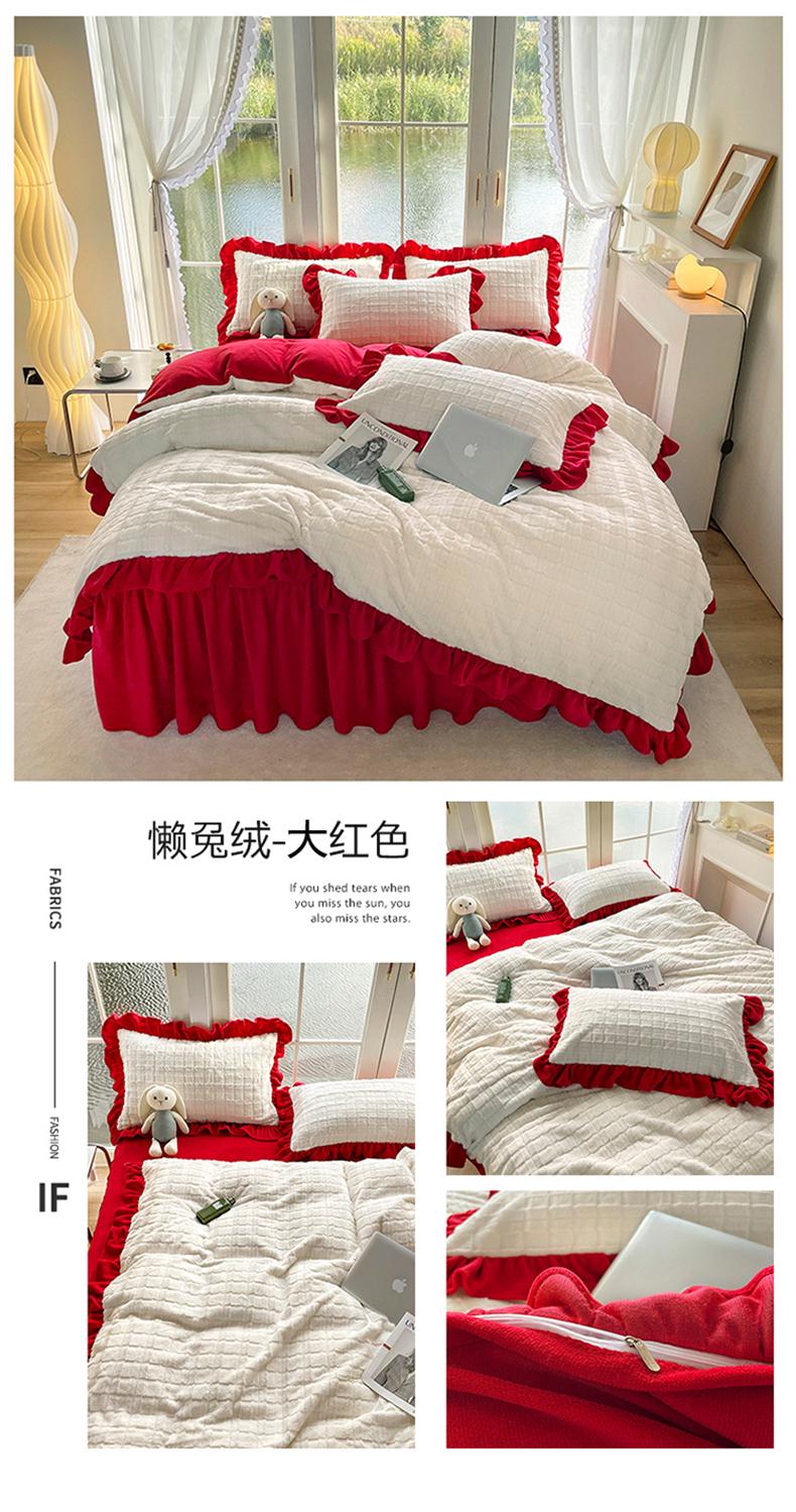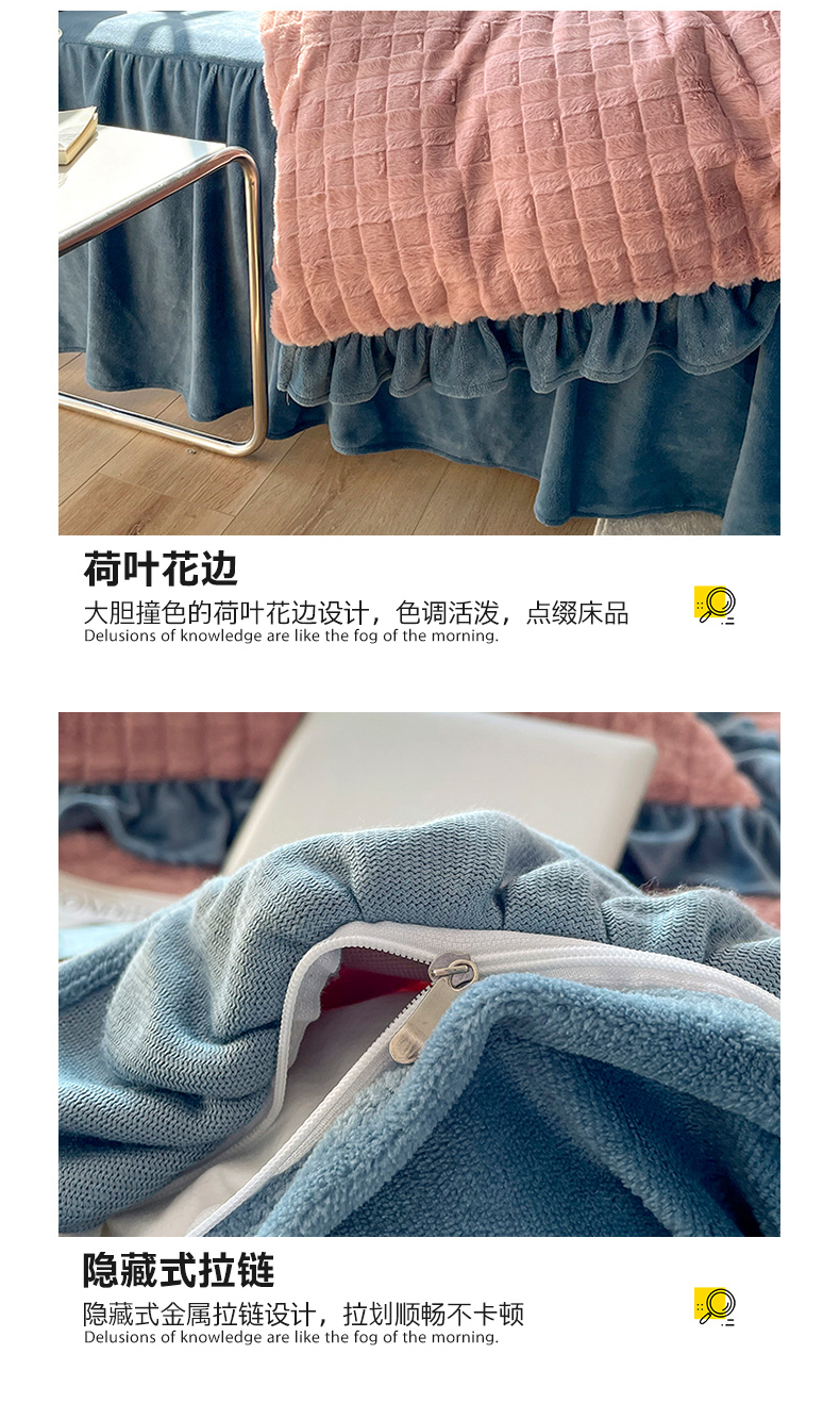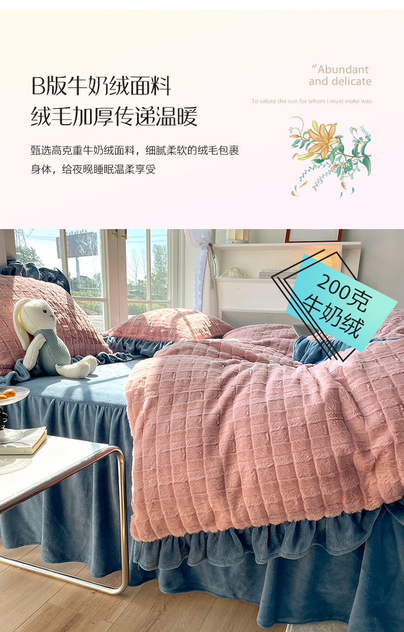 商品名称:睡美人 2025新款韩版方块兔绒牛奶绒床裙公主款四件套 方块兔绒-气质灰