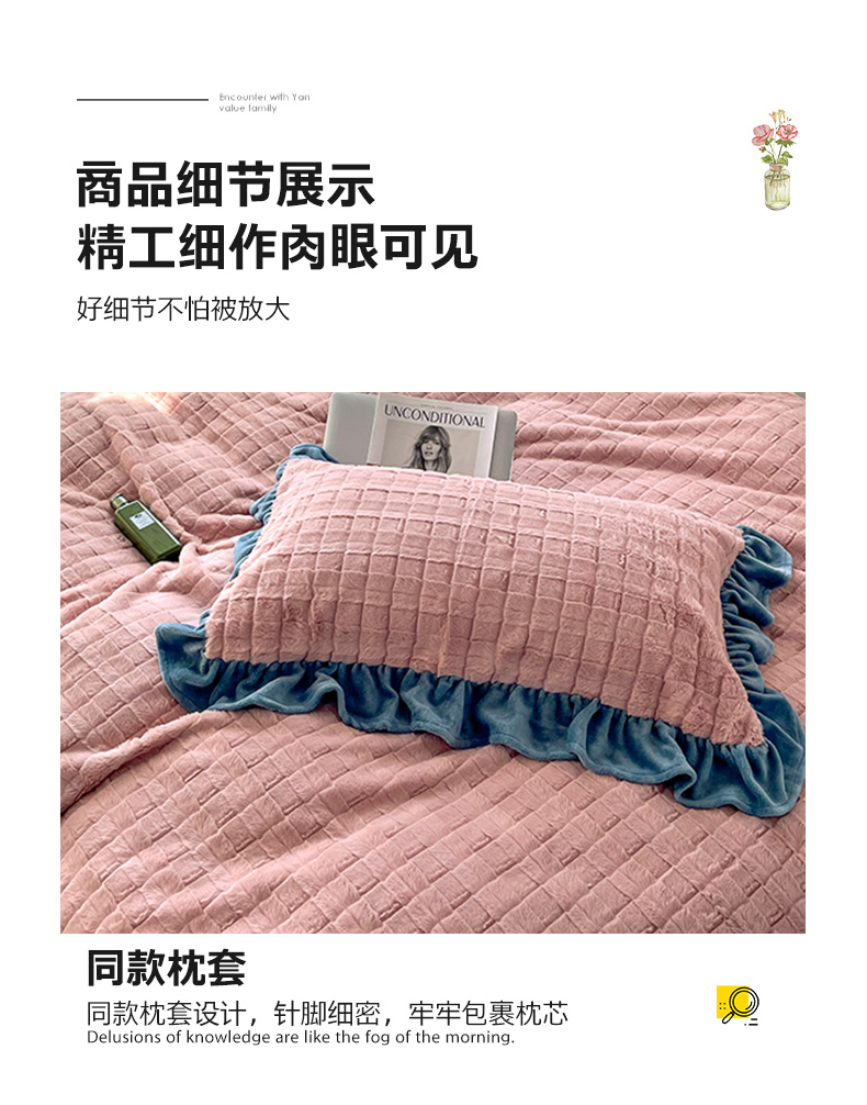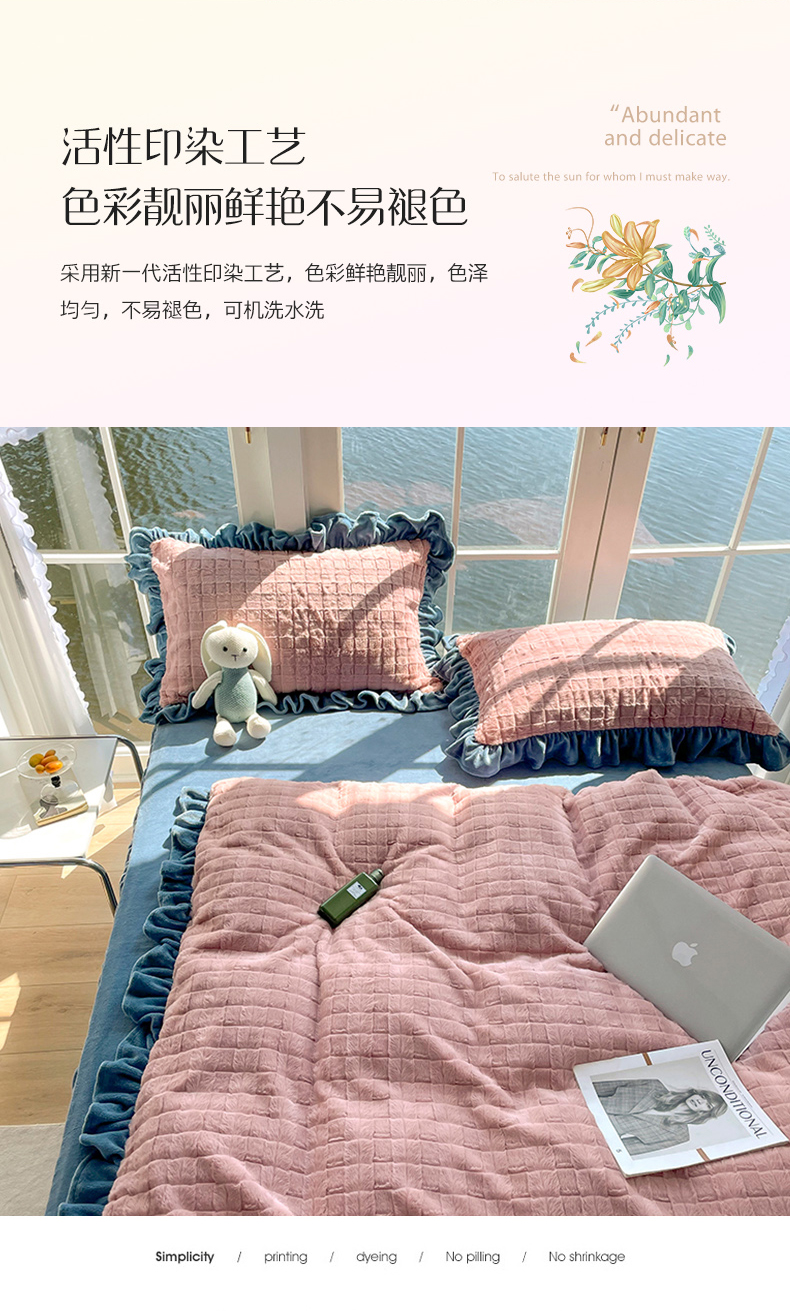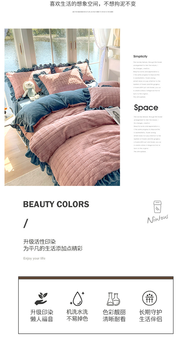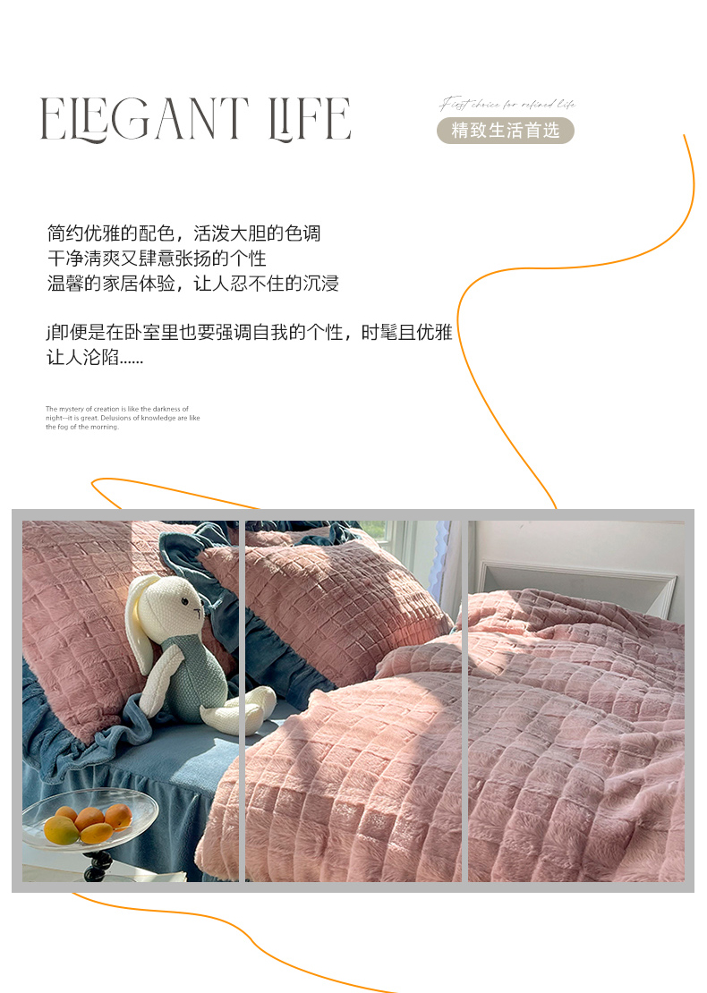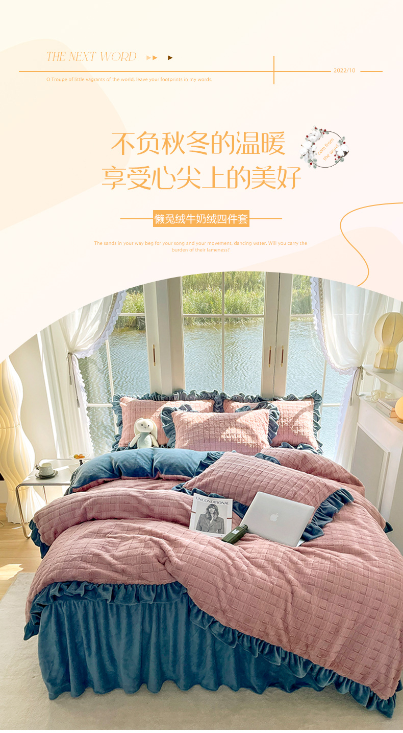商品名称:睡美人 2025新款韩版方块兔绒牛奶绒床裙公主款四件套 方块兔绒-气质灰
