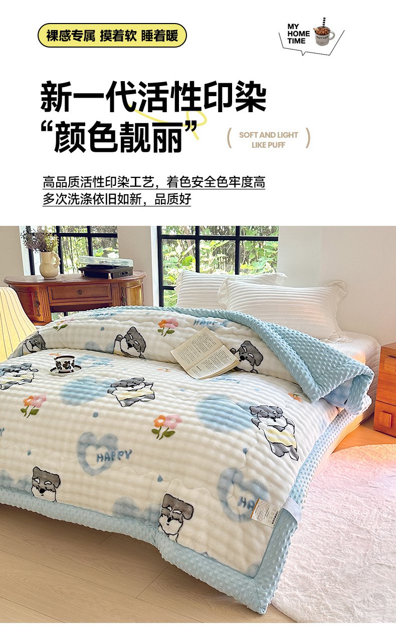 • 91家纺网 家纺一手货源 找家纺 宜家坊 2025新款直播热款A+兔兔绒豆豆被三层夹棉加厚毛毯毯子牛奶绒冬被泡泡兔毛绒保暖被子被芯 福蝶将至 绿