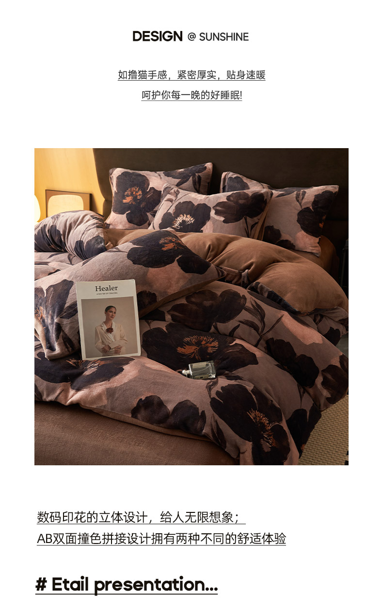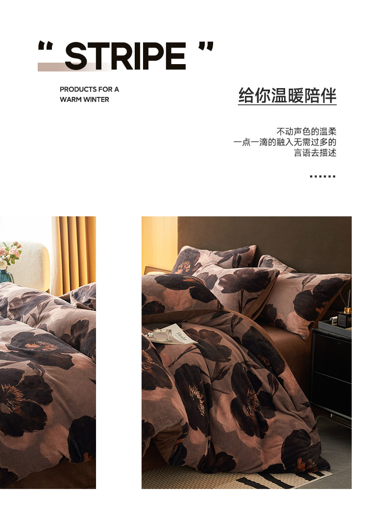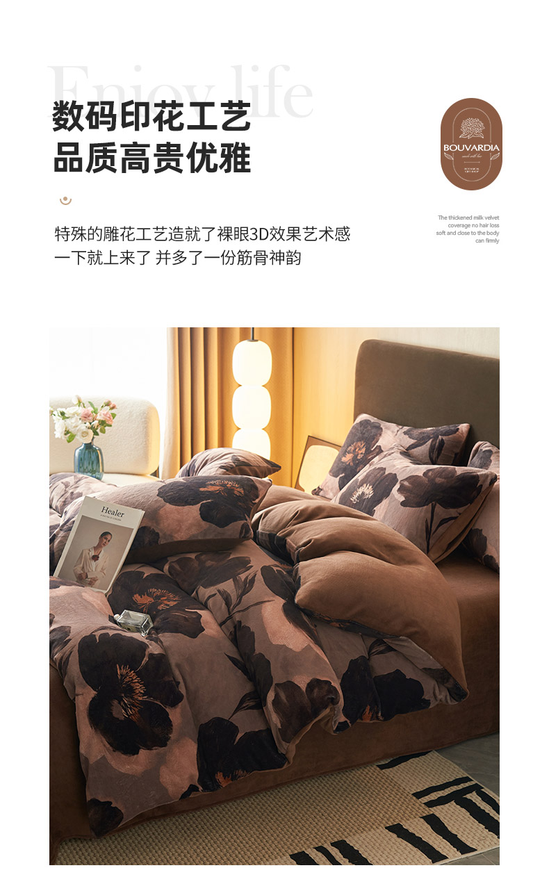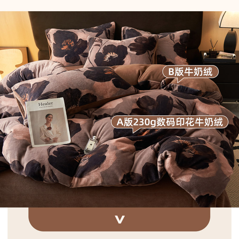 (总)吾秀家居 绒城 230克美拉德数码绒四件套 牛奶绒四件套 - 暖秋系列,花韵,暗香,冬日恋歌-咖,冬日恋歌-棕,冬日森林,花意浓,境玉森林,罗曼庄园,拿铁玫瑰,深紫罗兰,丝绒玫瑰,幽香花语