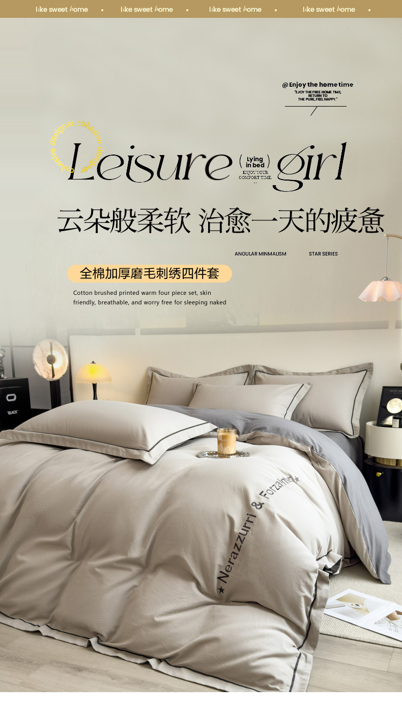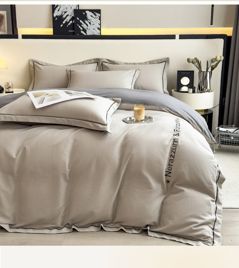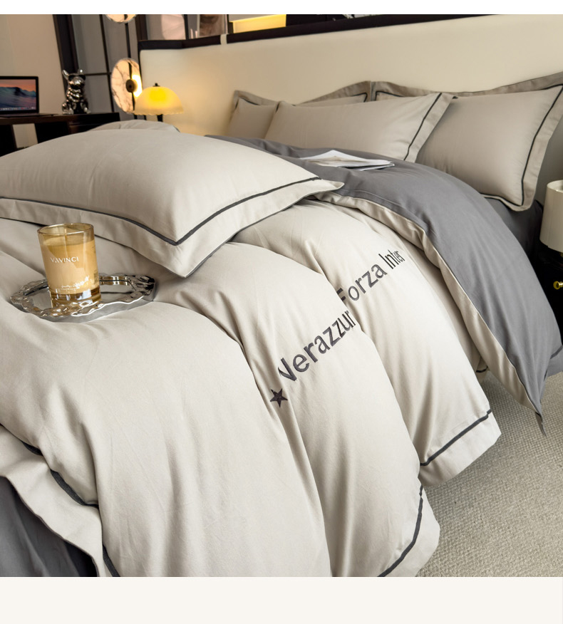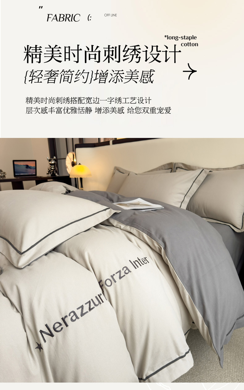 当前位置: 91家纺网 > 商品网购 > 床品套件 > 四件套 > 全棉普通四件套 > 印季家纺 2025新款绣花一字绣全棉纯棉加厚磨毛四件套 星空银-深灰