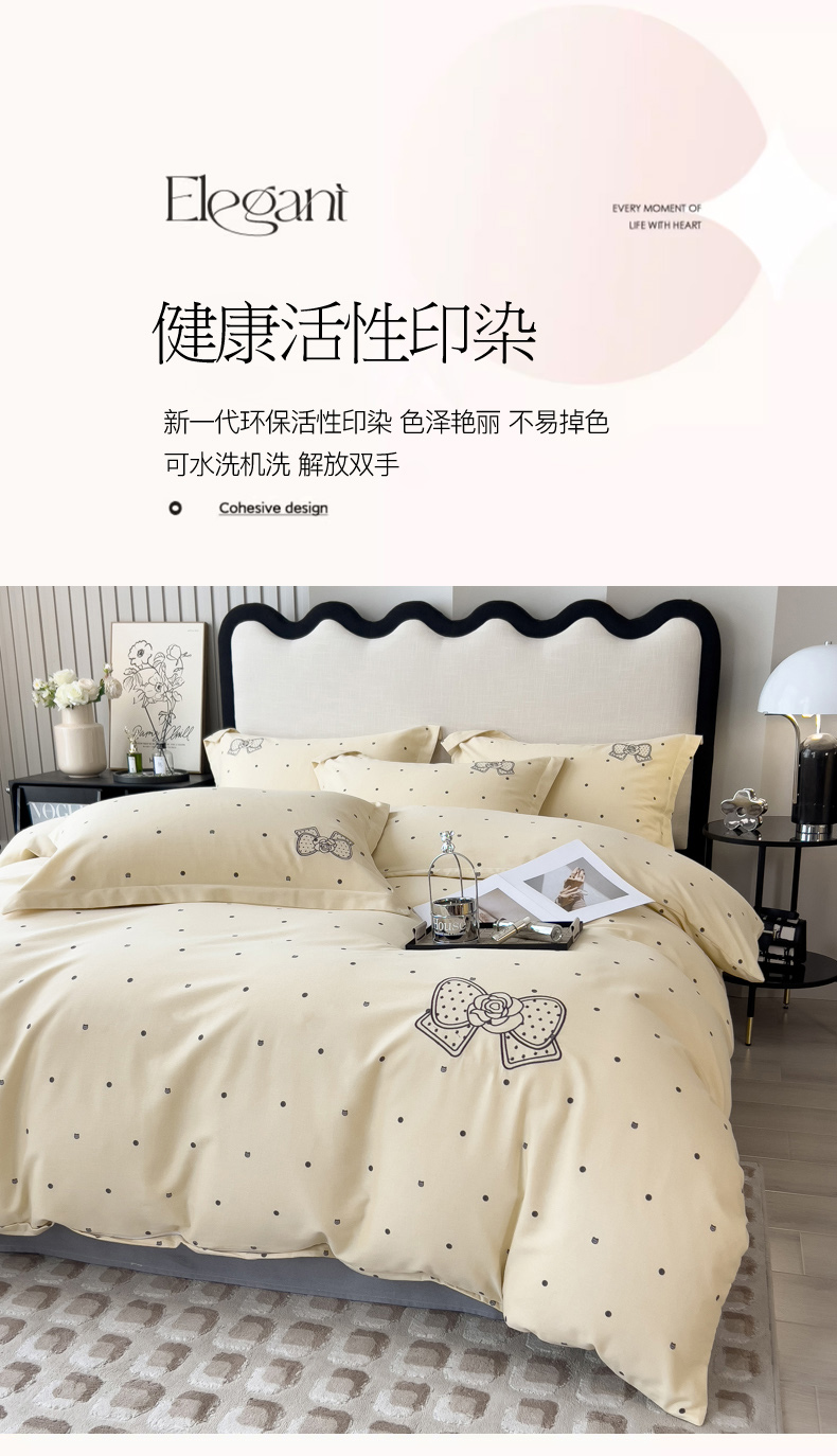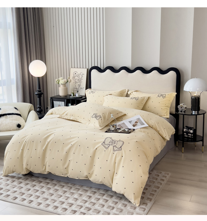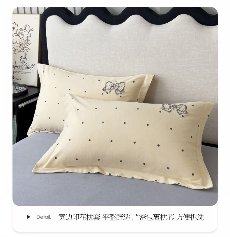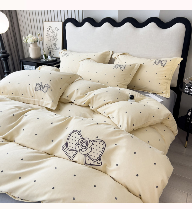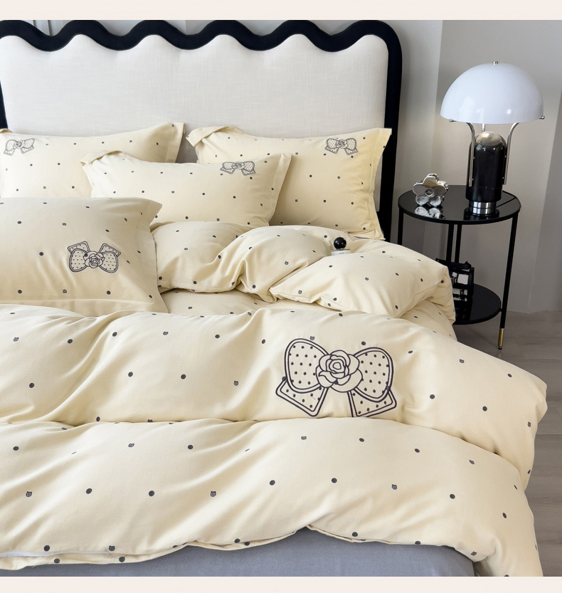 当前位置: 91家纺网 > 商品网购 > 床品套件 > 四件套 > 全棉普通四件套 > 印季家纺 2025新款全棉纯棉波点蝴蝶结绣花混纺磨毛四件套 奶昔白-灰