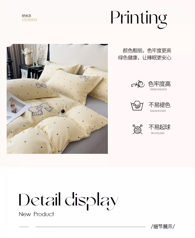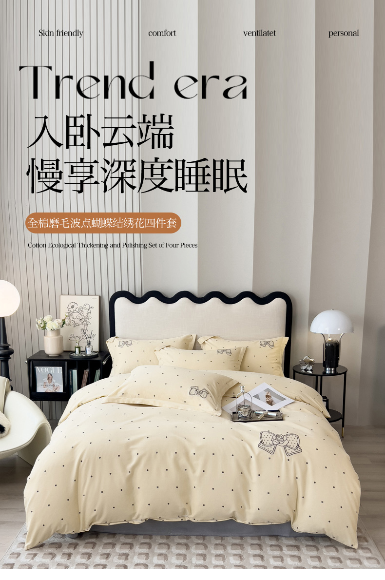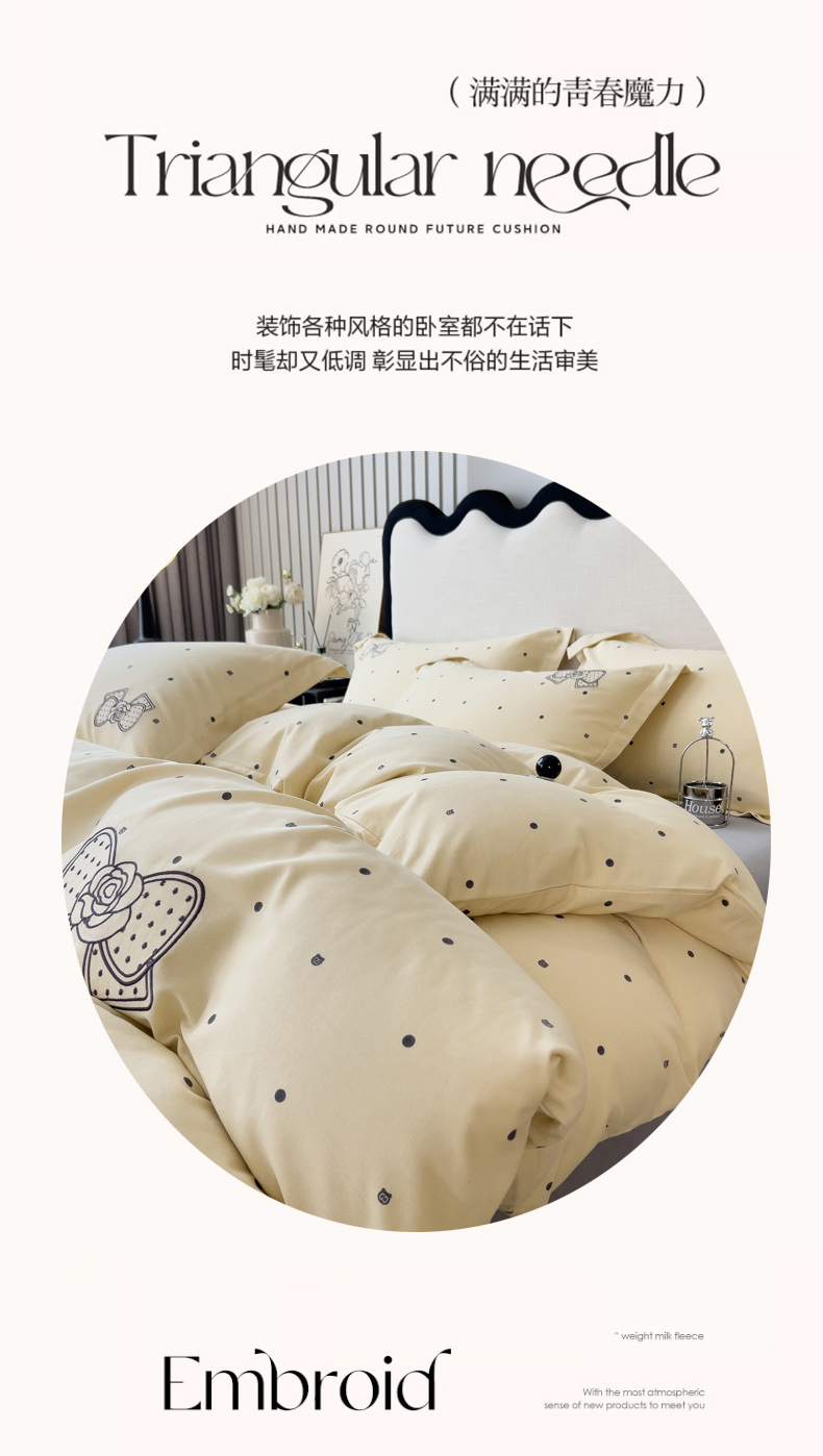 当前位置: 91家纺网 > 商品网购 > 床品套件 > 四件套 > 全棉普通四件套 > 印季家纺 2025新款全棉纯棉波点蝴蝶结绣花混纺磨毛四件套 奶昔白-灰