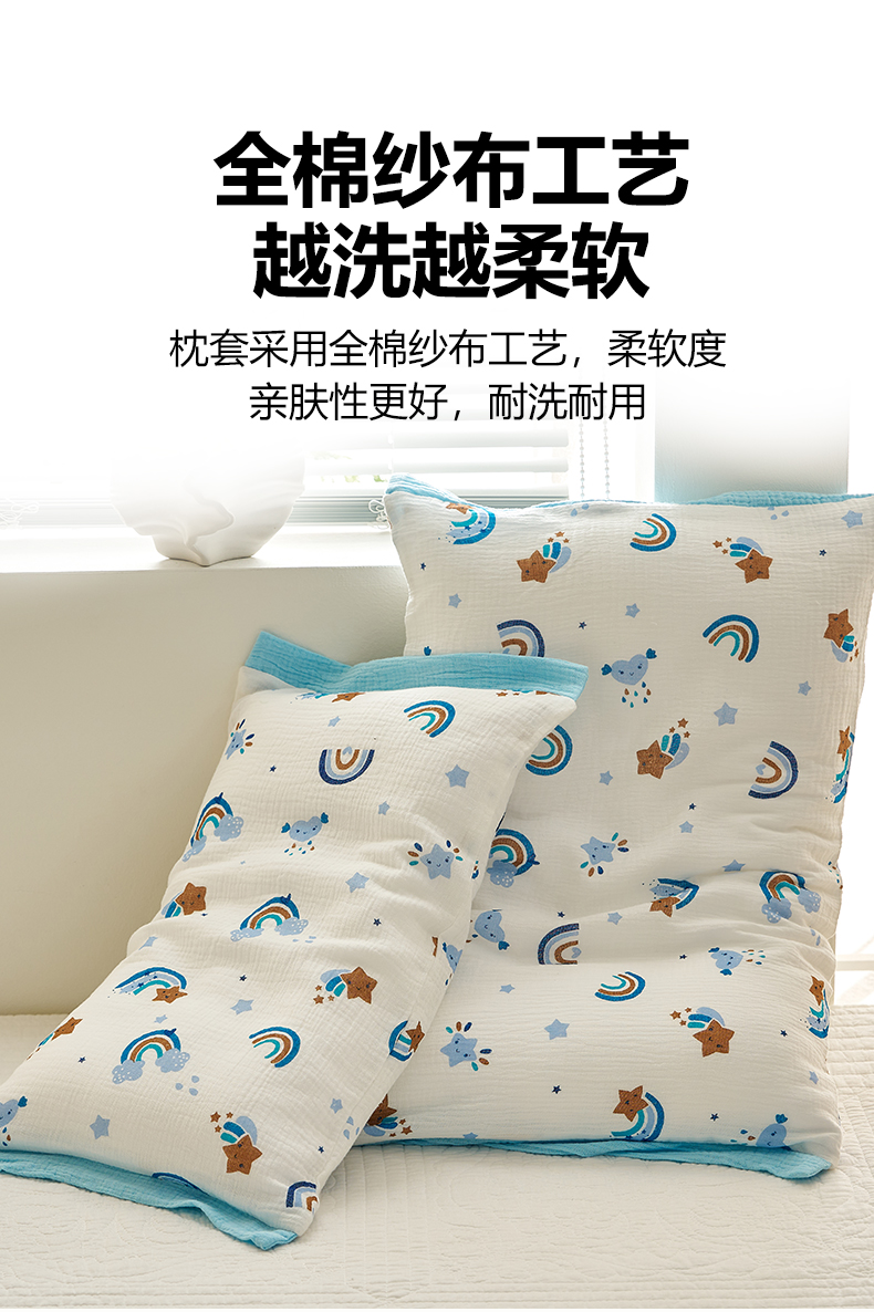 商品名称:乐可 2025新款全棉纯棉纱布儿童拼色枕套单枕套 TP3星星彩虹蓝