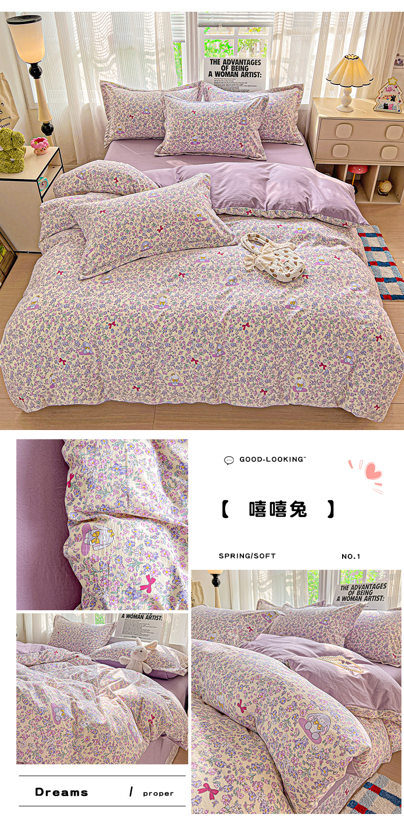 当前位置: 91家纺网 > 商品网购 > 床品套件 > 四件套 > 全棉普通四件套 > 欢博莱 2025新款仿纯棉四件套学生宿舍三件套单被套 花间兔