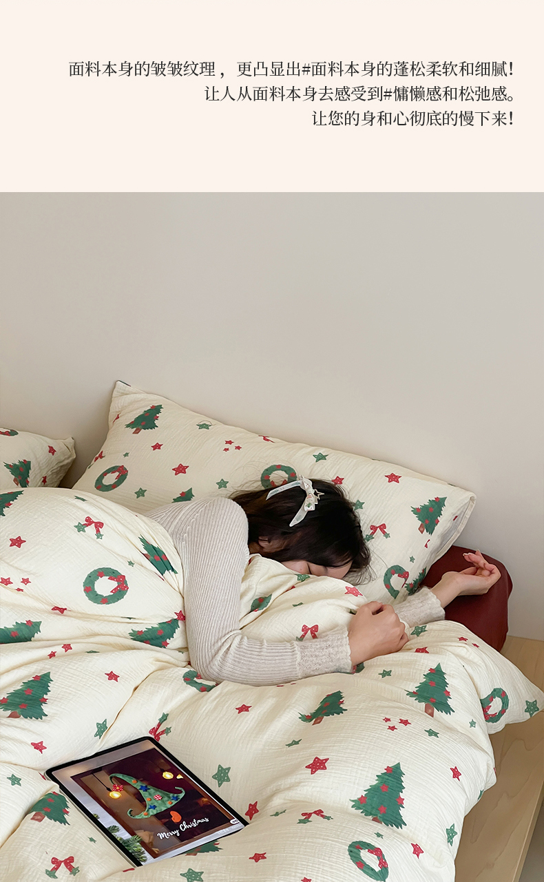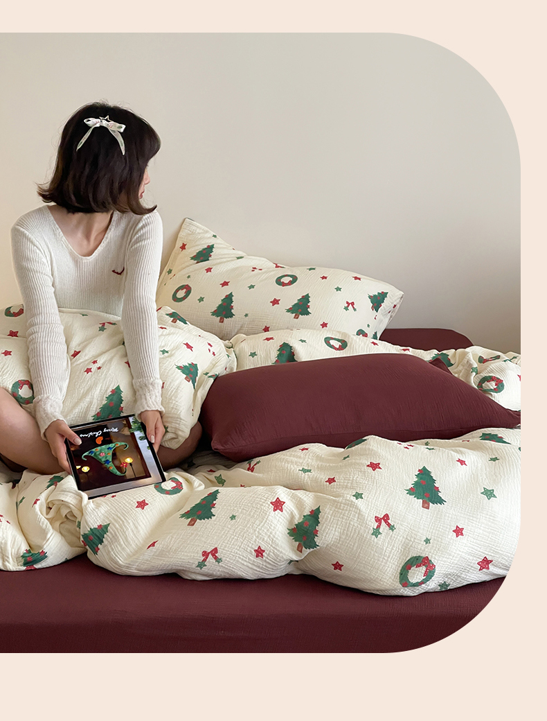 当前位置: 91家纺网 > 商品网购 > 床品套件 > 四件套 > 双层纱四件套 > (总)山舍家居 2025新款全棉双层皱皱纱圣诞特款四件套-圣诞系列