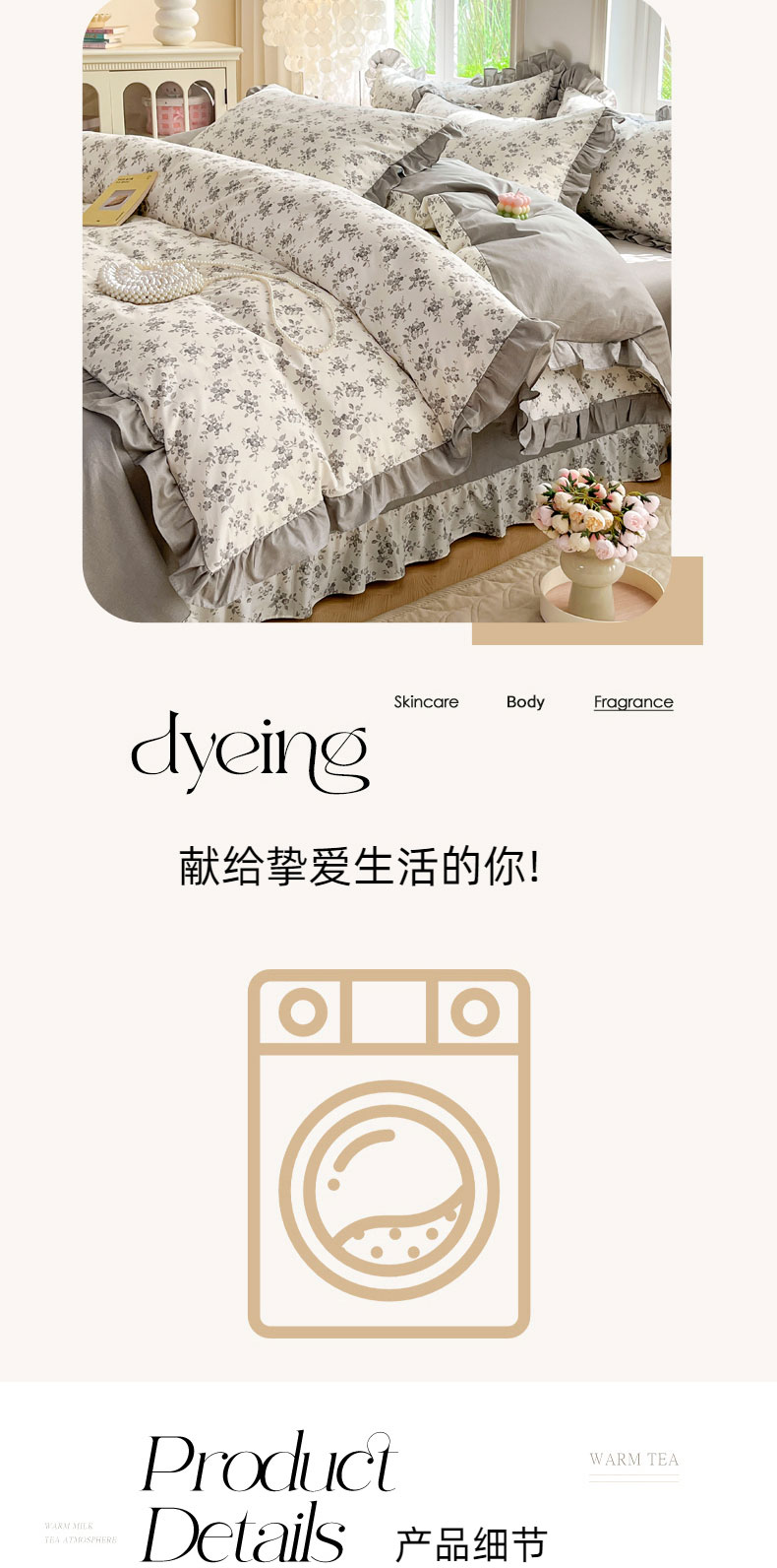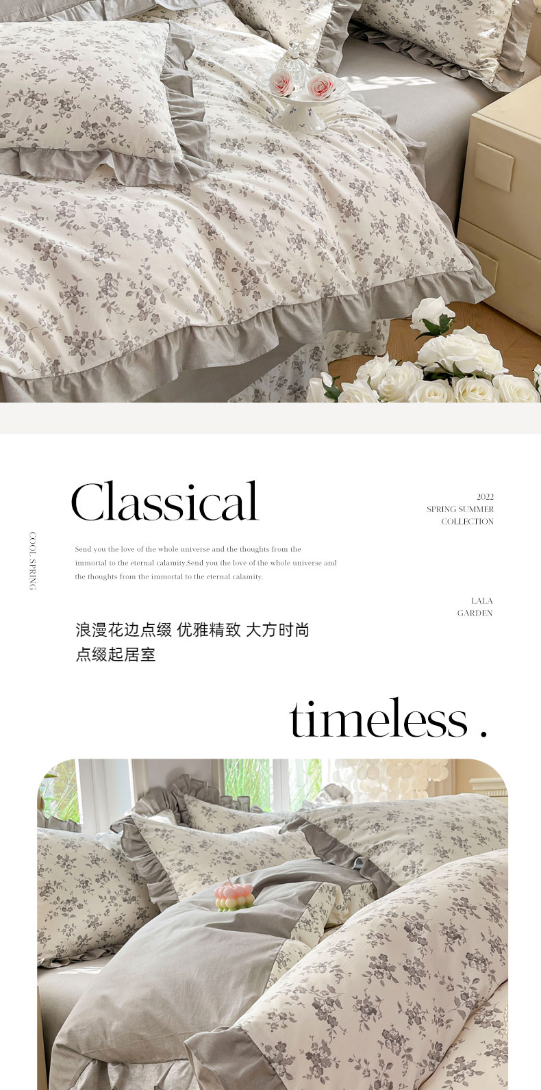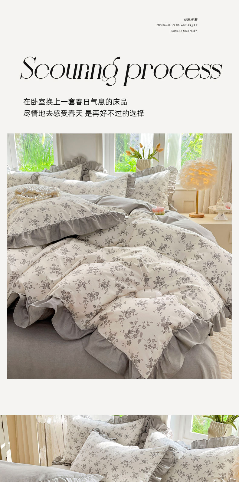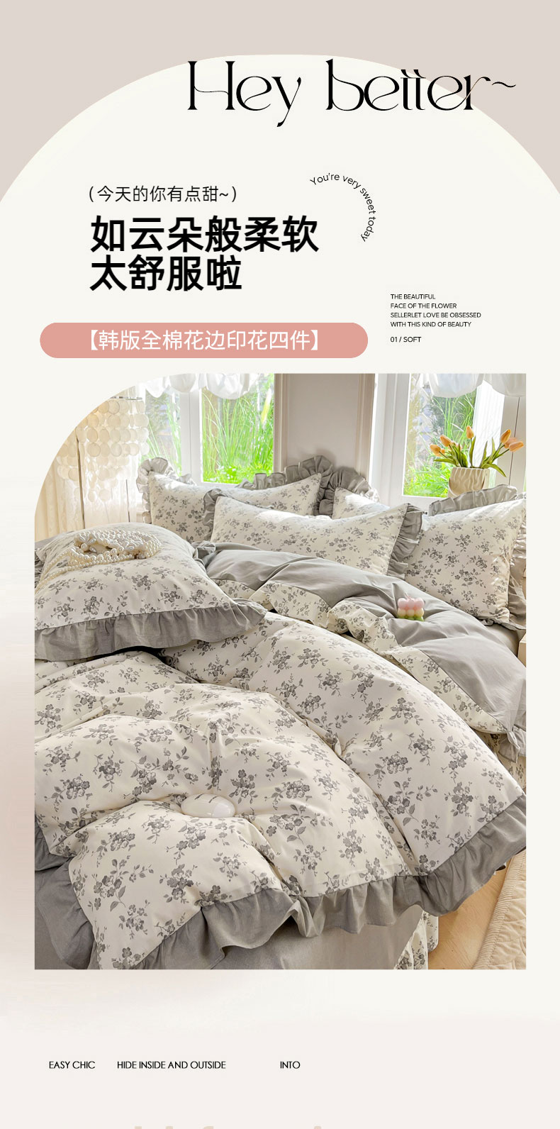 当前位置: 91家纺网 > 商品网购 > 床品套件 > 四件套 > 全棉普通四件套 > 兴美佳家纺 2026新款全棉印花韩版花边床裙款四件套 花开半夏-灰