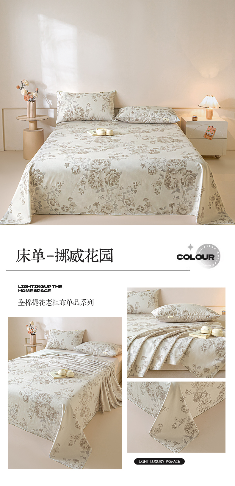 商品名称:(总)涵宸家纺 2026新款全棉提花老粗布-单床单