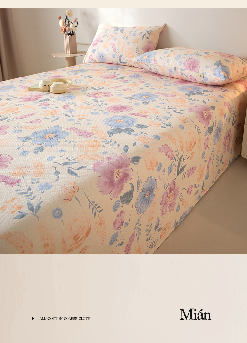 涵宸家纺 2026新款全棉提花老粗布-单床单 床单-紫晴空