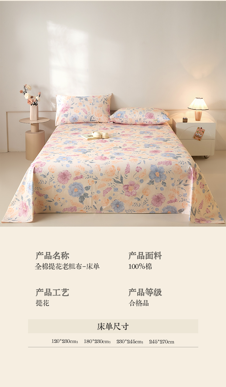 当前位置: 91家纺网 > 商品网购 > 床上用品 > 床单 > 涵宸家纺 2026新款全棉提花老粗布-单床单 床单-紫晴空