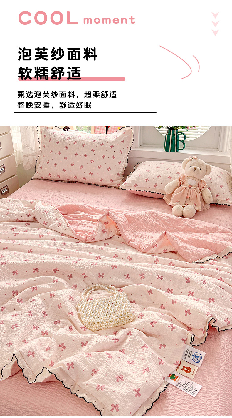 (总)金梦拉家纺 2026春夏新款云感双层纱皱皱纱系列四件套,爱心小兔,芭宠假日蓝,白桃乌龙,宝莉粉,波点熊,春日铃兰,丛林兔,花畔里,凯特蓝,可爱熊熊,蓝格蛋糕熊,萌萌小象,蜜桃草莓,茉莉清风,铅笔熊,清浅,森澜,碎花萌宠,夏日木槿,小福马,小马咖,栀夏,紫色风信,紫韵花茶
