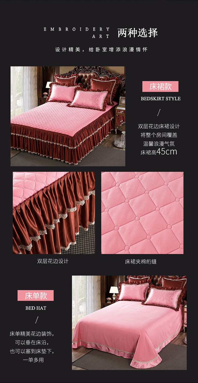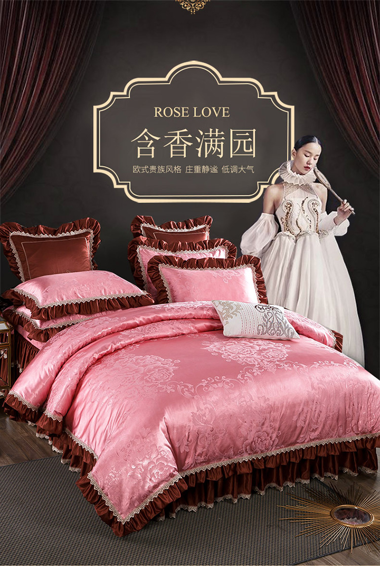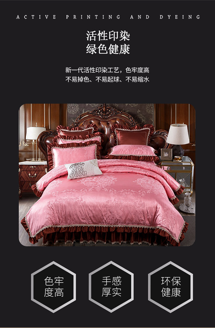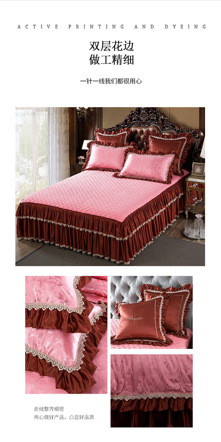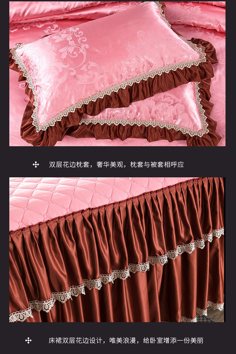 兴美佳欧式提花贡缎双层花边夹棉床单床裙四件套含香满园
