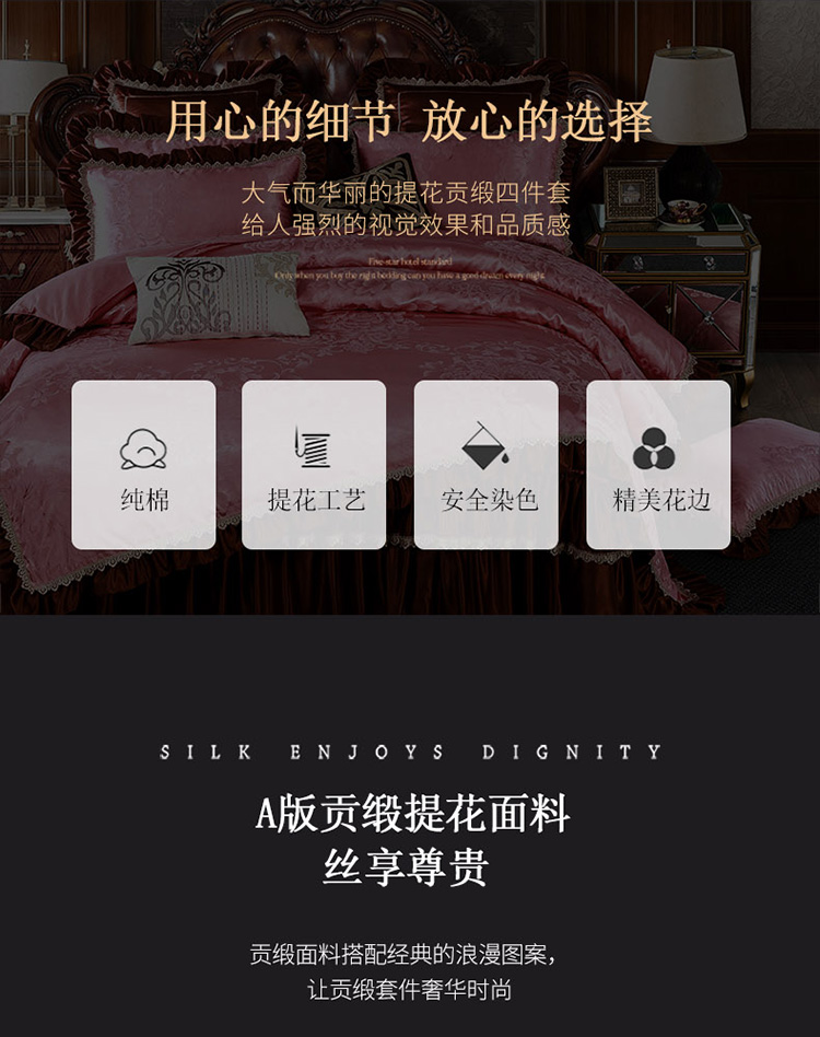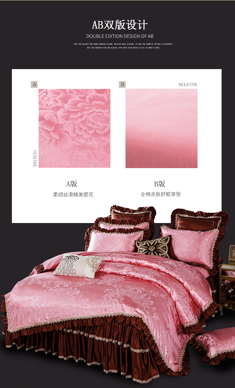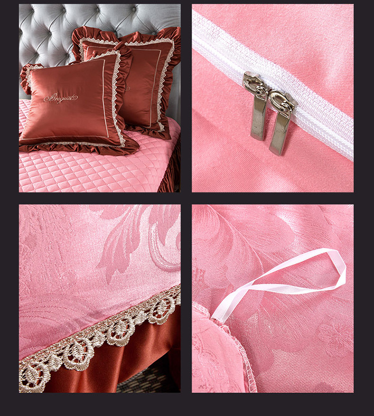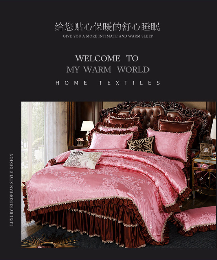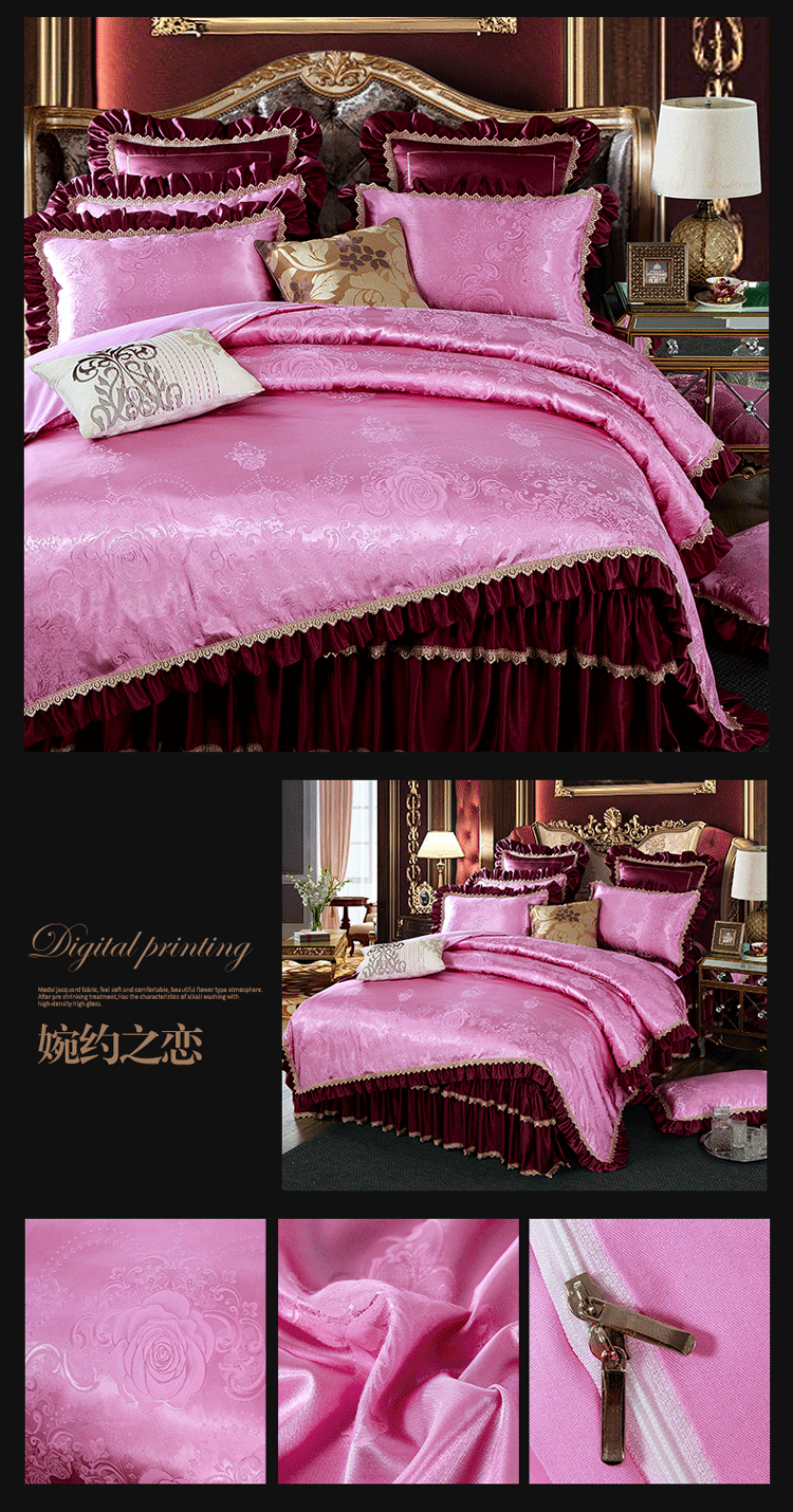 兴美佳欧式提花贡缎双层花边夹棉床单床裙四件套含香满园