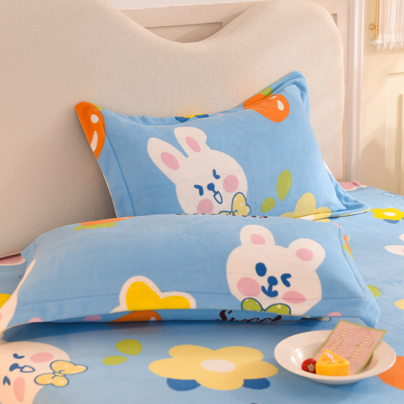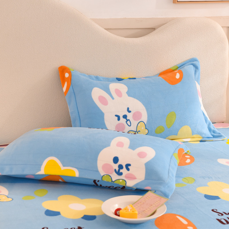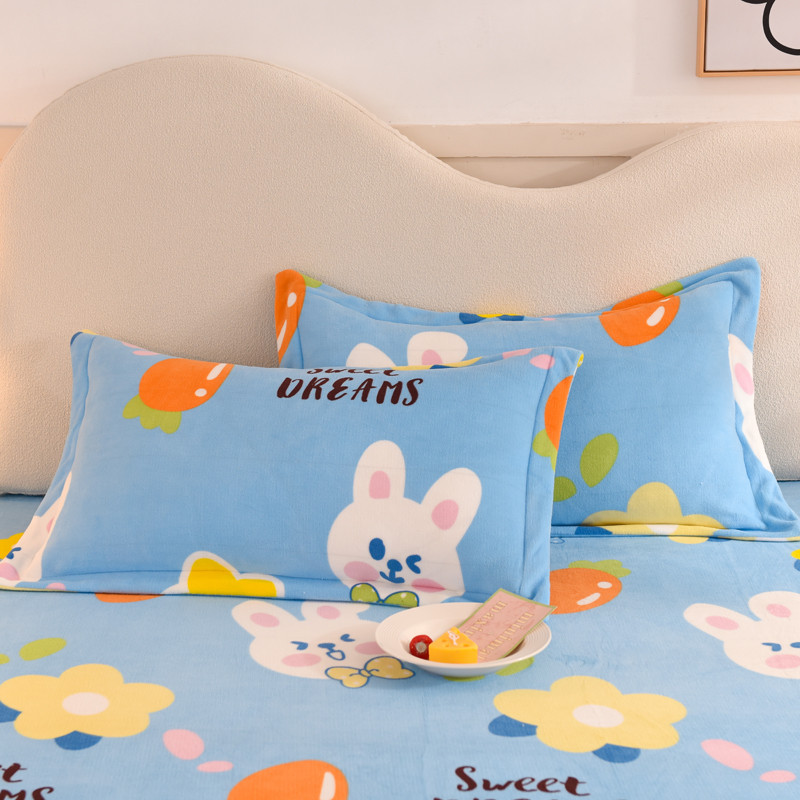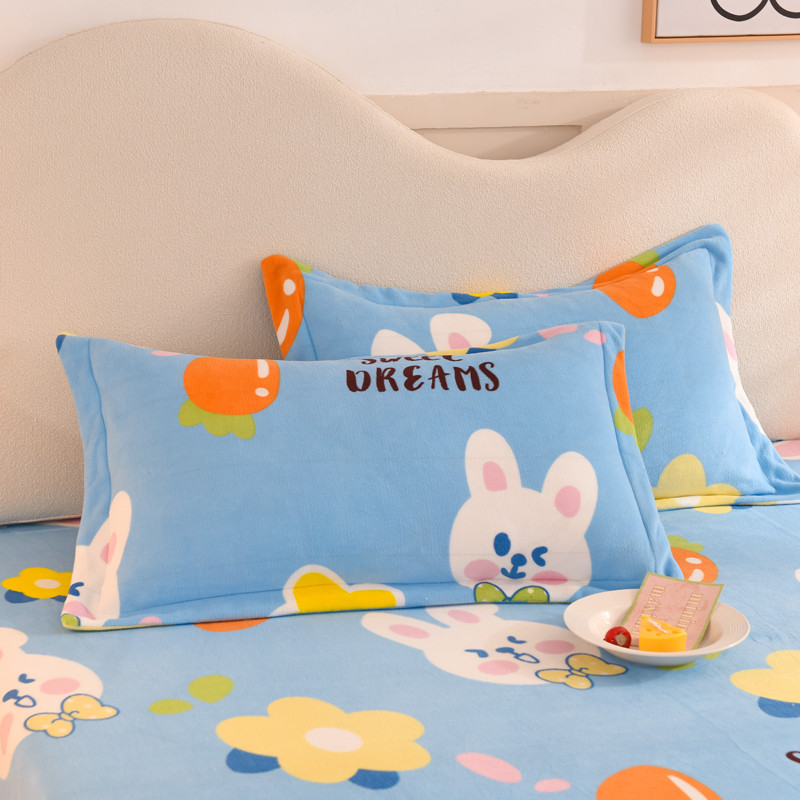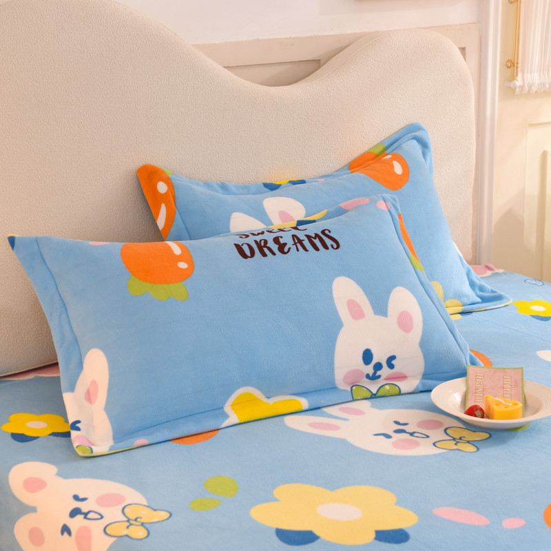 甜之梦家纺 2025新款印花牛奶绒单品枕套 爱心萌兔