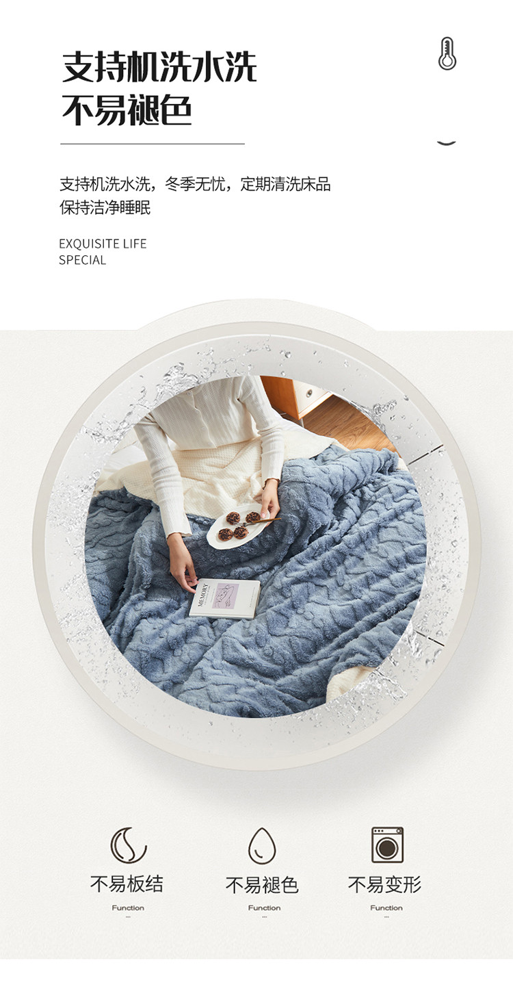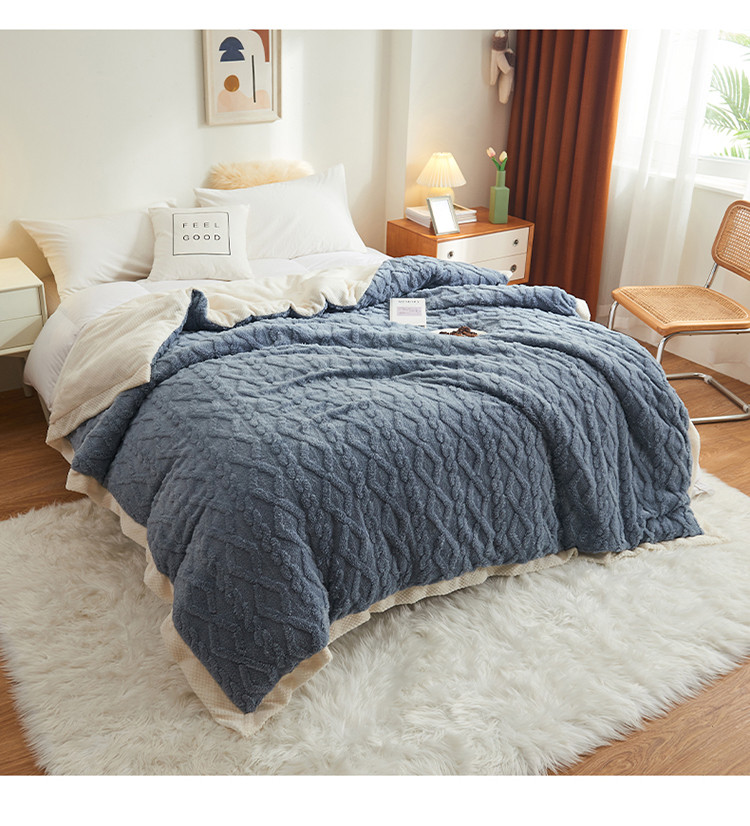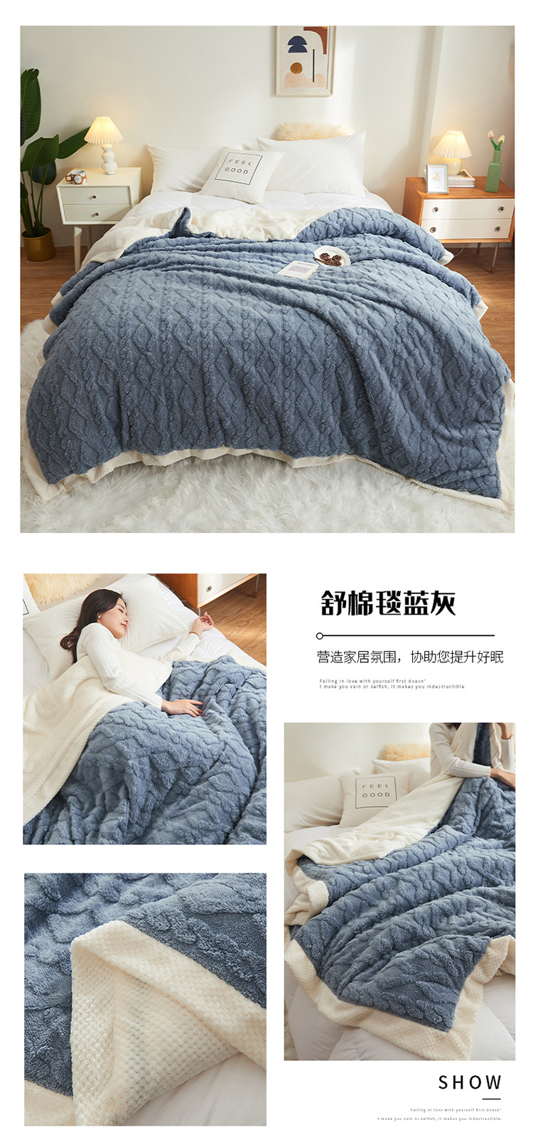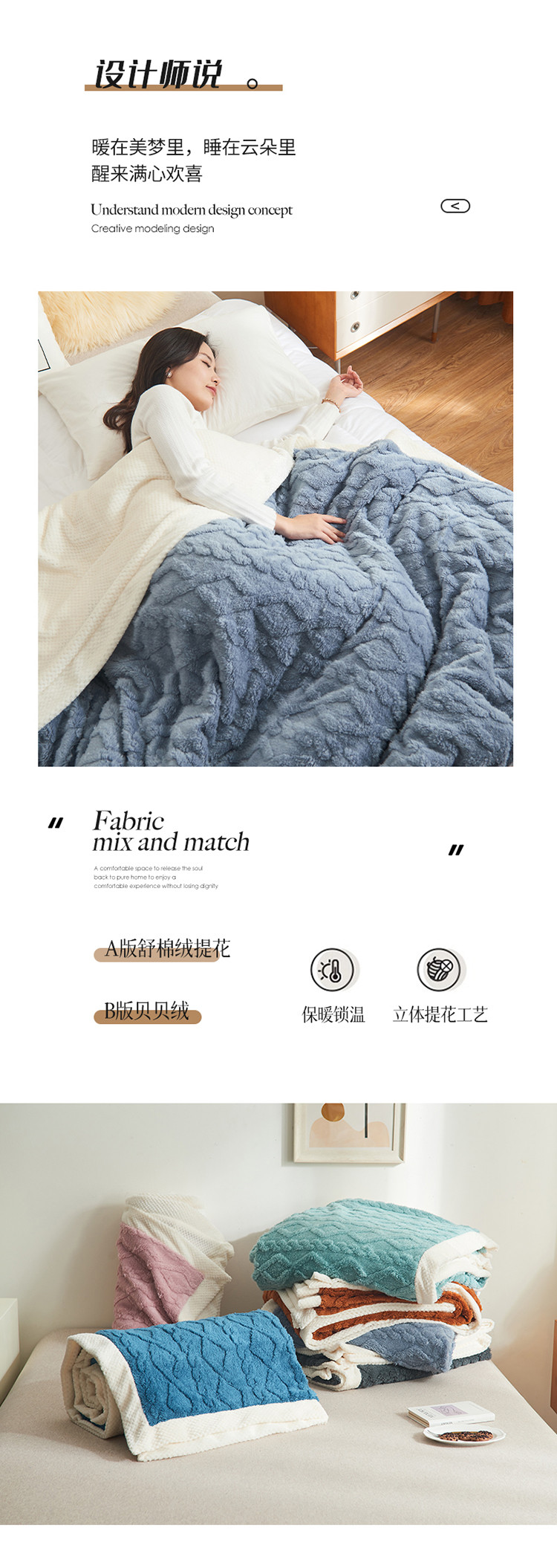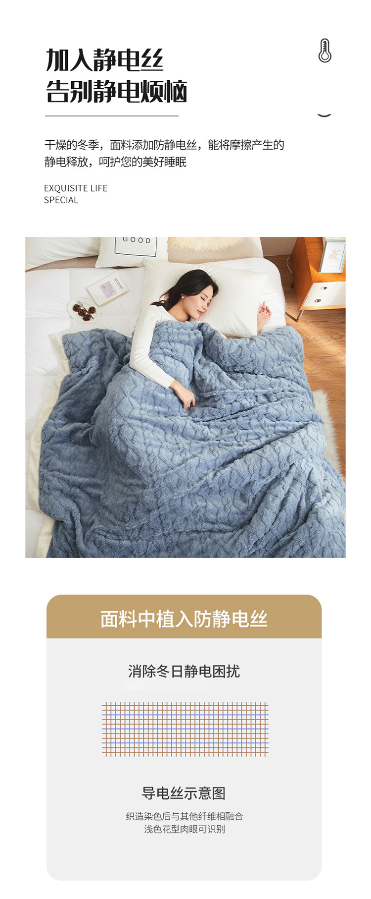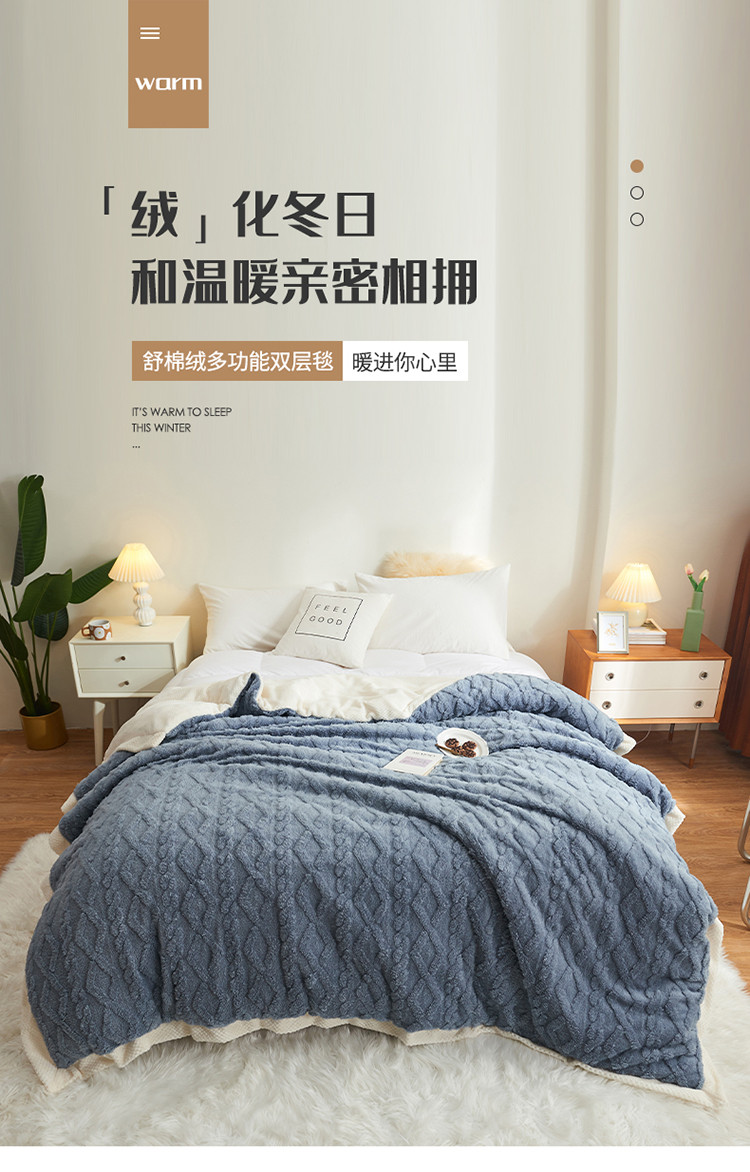 吾秀家居 2022新款贝贝绒双层舒棉毯 舒棉毯蓝灰